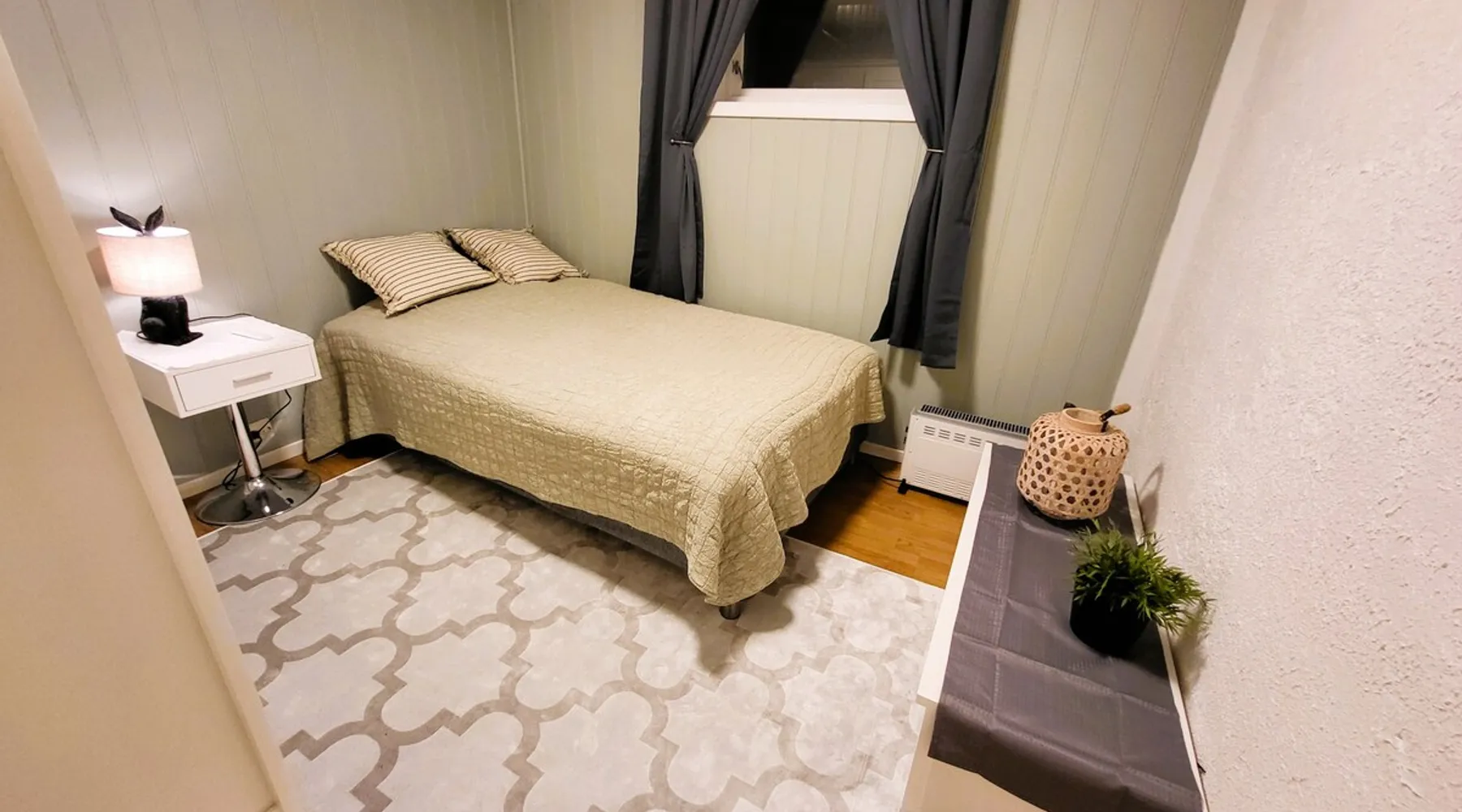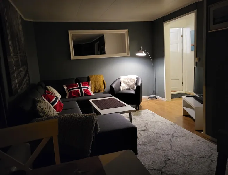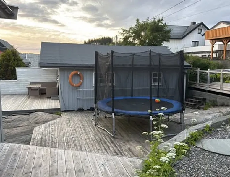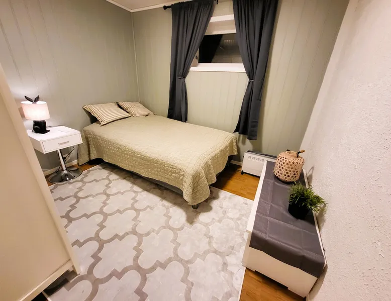 Simple and peaceful accommodation in a central location. 1 bed 120b, sofa bed in the living room. Quiet, clean and safe space 1 min distance from Sunboat. For lengre perioder ta contact direct. The space 1 living room, 1 bedroom, kitchen, kitchen, bathroom, bathroom, entrance and laundry. Washer and dryer available. Patio with BBQ area, trampoline and outdoor furniture. Guest access The apartment, parking, storage room, laundry, patio and sunny terrace all around the house. Other things to note Badeland, Atlantenhavsveien, Trollkyrkja, Kvalvik Fort and much more to do here!