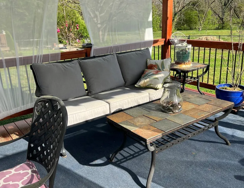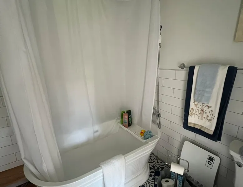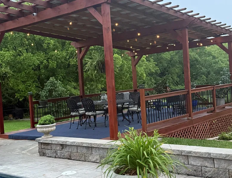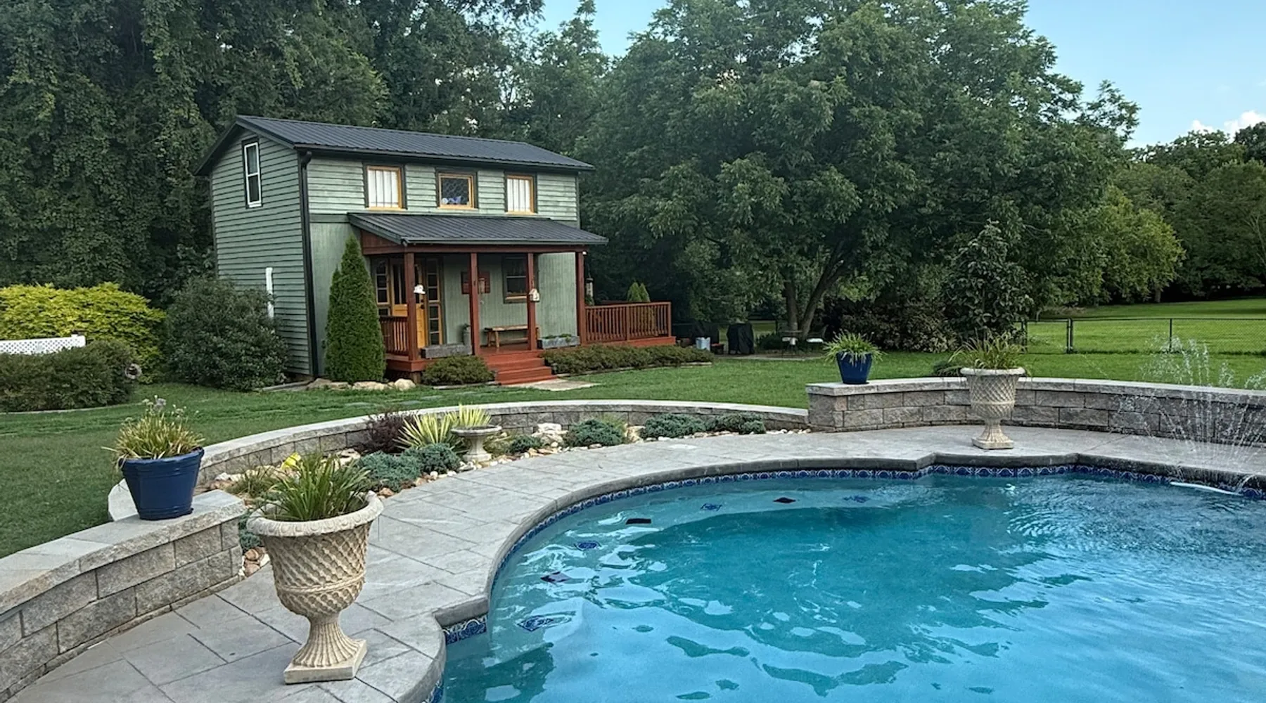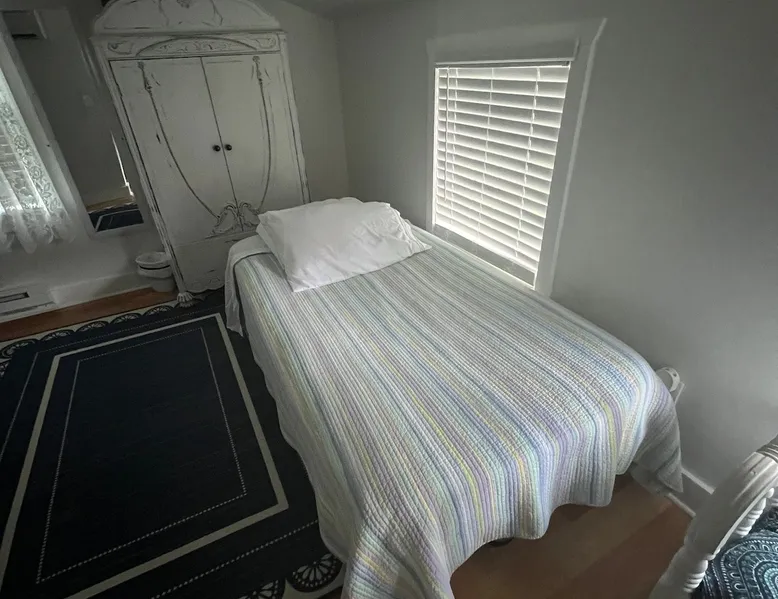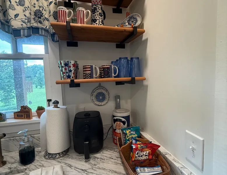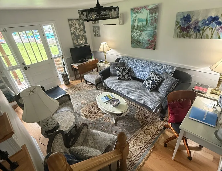 Beautiful guest house, located steps from the main house, hidden from public. The cabin is tucked away in our manicure backyard. Spacious fenced in yard where your fur babies can run free. Enjoy the large pergola with comfy seating for nighttime relaxation or dining. The house offers a living room, kitchenette (NO STOVE) and spacious bathroom. The second floor is a large LOFT with a dividing wall separating the two sleeping areas. There are 13 steps to the second floor. ABSOLUTELY NO PARTY! The space House is new, beautiful, clean and quiet. Located in a private backyard setting. Kitchenette offers a full fridge, microwave, toaster, keurig coffee maker, coffee, creamer, sugar, hot pot (for tea), tea bags, air fryer, plates, glass cups, paper plates, silverware, plastic cups, flatware, napkins, paper towels, and snacks. Smoking is permitted “outside” only. Guest access NO DIVING PLEASE. Guest have access to 20x40 concrete salt water swimming pool (with pool lights for night time swimming) and loungers. Pool ranges from 3 to 6 feet deep in the middle of the pool, and then 5 to 3 feet deep on both outer edges. Large pergola offers patio dining table seating for 6, with addition patio sofa and extra seating. Pool is only open from May - September (it is not a heated pool). The pool is steps away from the cabin and there is no fence around the pool, little ones must be attended at all time. Other things to note Cabin offers wifi. Nice cozy living room with TV that offers Netflix connection. Second floor is a large “loft” with a wall that separates the two rooms (there are no doors). Master bedroom offers a queen bed and a rollaway cot (if needed). The second bedroom has two twin beds. Again, this is a large “loft” sleeping area with a wall that divides the master from the kids room. Pack and Play is available. Sleeps five comfortably. There’s a $30.00 fee for extra guest. A $10.00 fee per pets with a limit of two and under 50 pounds. Pets must “NOT” be left unattended for more than 4 hours. Any property damages will be accessed. There are 13 steps to second floor, may not be suitable for the elderly. The bathroom tub is a deep step in tub and may not be suitable for the elderly. Iron and Ironing board are available. ABSOLUTELY NO PARTY! Early check in allowed, but only if the house is cleaned and available. There’s a late checkout fee of $50.00 per half an hour.