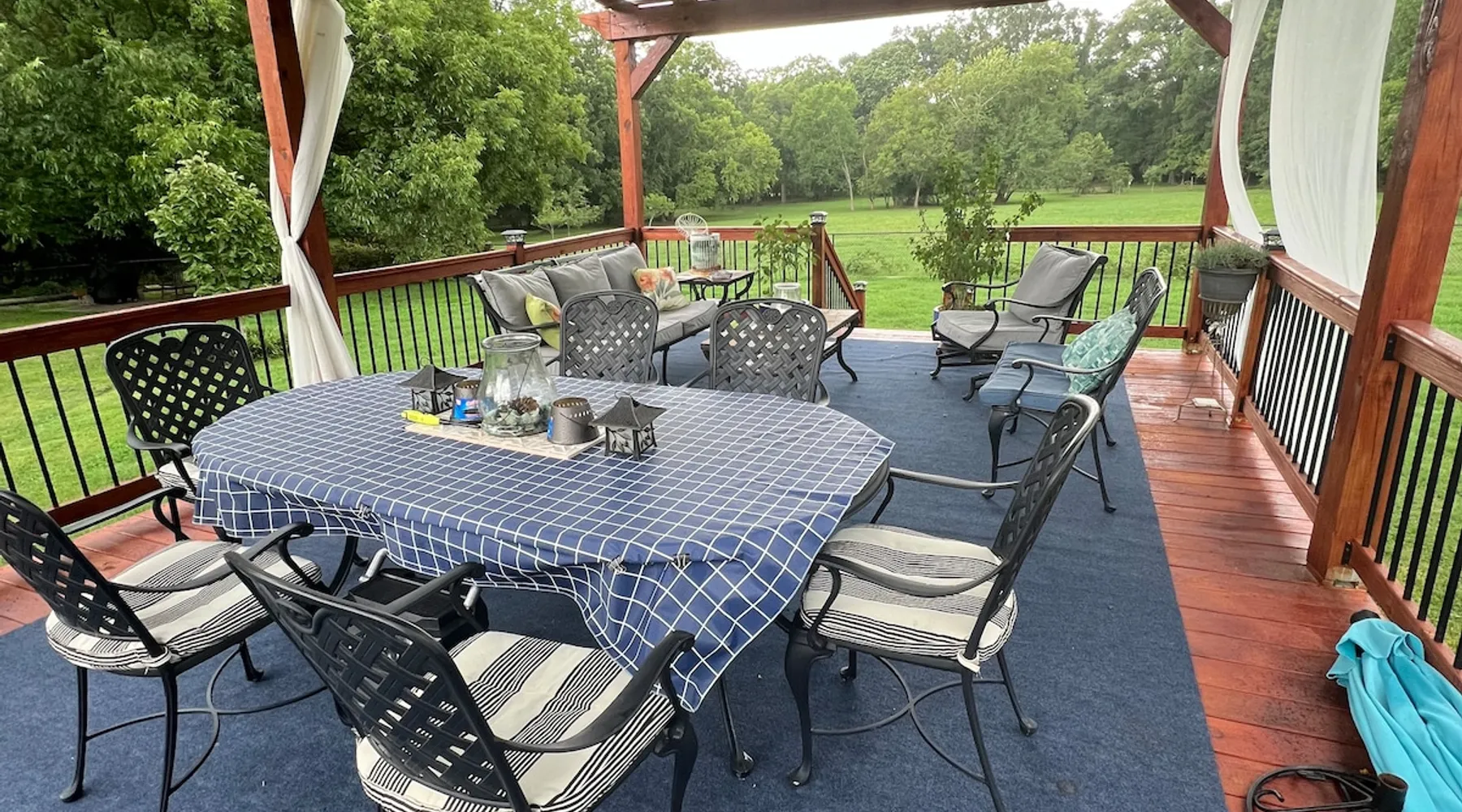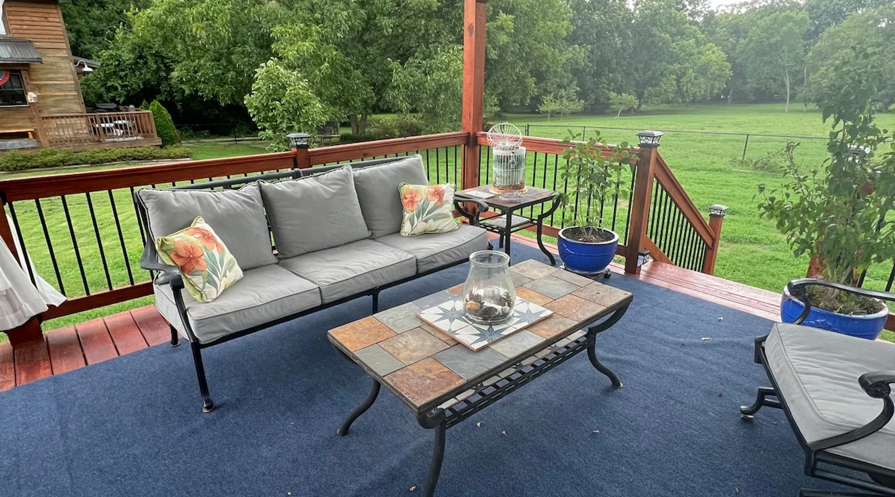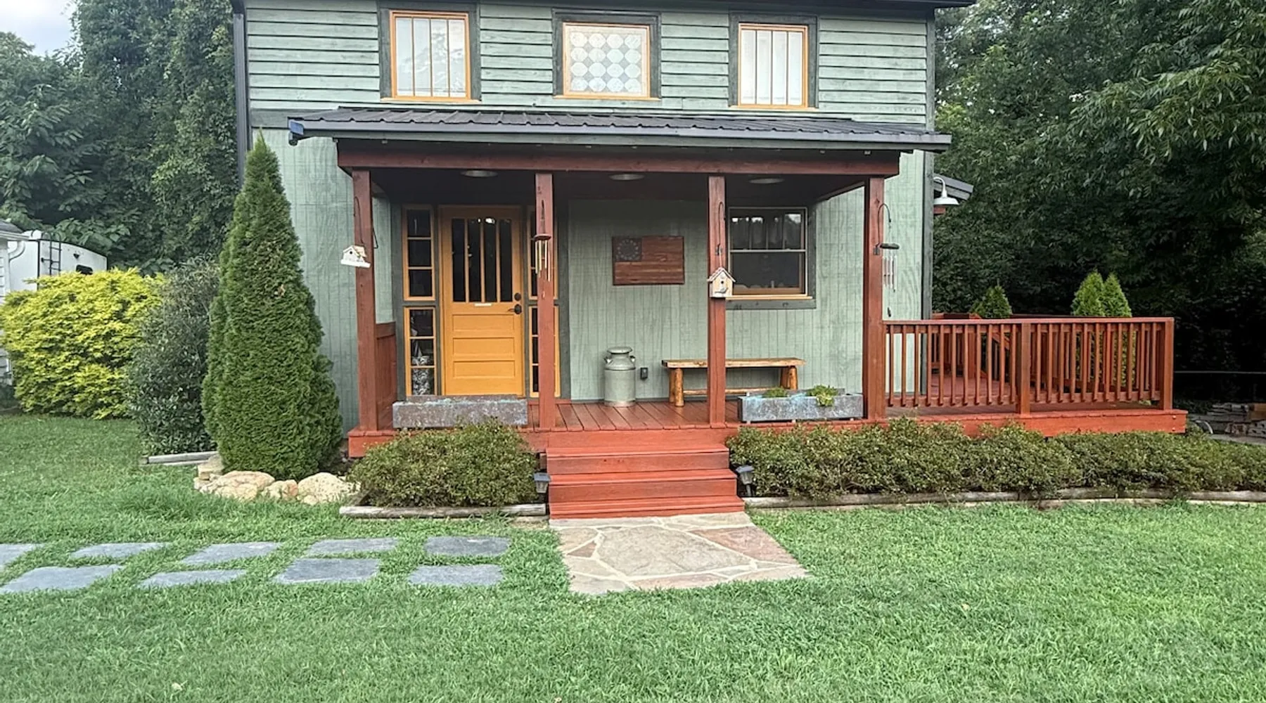 Beautiful guest house, located steps from the main house, hidden from public. The cabin is tucked away in our manicure backyard. Spacious fenced in yard where your fur babies can run free. Enjoy the large pergola with comfy seating for nighttime relaxation or dining. The house offers a living room, kitchenette (NO STOVE) and spacious bathroom. The second floor is a large LOFT with a dividing wall separating the two sleeping areas. There are 13 steps to the second floor. ABSOLUTELY NO PARTY! The space House is new, beautiful, clean and quiet. Located in a private backyard setting. Kitchenette offers a full fridge, microwave, toaster, keurig coffee maker, coffee, creamer, sugar, hot pot (for tea), tea bags, air fryer, plates, glass cups, paper plates, silverware, plastic cups, flatware, napkins, paper towels, and snacks. Smoking is permitted “outside” only. Guest access NO DIVING PLEASE. Guest have access to 20x40 concrete salt water swimming pool (with pool lights for night time swimming) and loungers. Pool ranges from 3 to 6 feet deep in the middle of the pool, and then 5 to 3 feet deep on both outer edges. Large pergola offers patio dining table seating for 6, with addition patio sofa and extra seating. Pool is only open from May - September (it is not a heated pool). The pool is steps away from the cabin and there is no fence around the pool, little ones must be attended at all time. Other things to note Cabin offers wifi. Nice cozy living room with TV that offers Netflix connection. Second floor is a large “loft” with a wall that separates the two rooms (there are no doors). Master bedroom offers a queen bed and a rollaway cot (if needed). The second bedroom has two twin beds. Again, this is a large “loft” sleeping area with a wall that divides the master from the kids room. Pack and Play is available. Sleeps five comfortably. There’s a $30.00 fee for extra guest. A $10.00 fee per pets with a limit of two and under 50 pounds. Pets must “NOT” be left unattended for more than 4 hours. Any property damages will be accessed. There are 13 steps to second floor, may not be suitable for the elderly. The bathroom tub is a deep step in tub and may not be suitable for the elderly. Iron and Ironing board are available. ABSOLUTELY NO PARTY! Early check in allowed, but only if the house is cleaned and available. There’s a late checkout fee of $50.00 per half an hour.