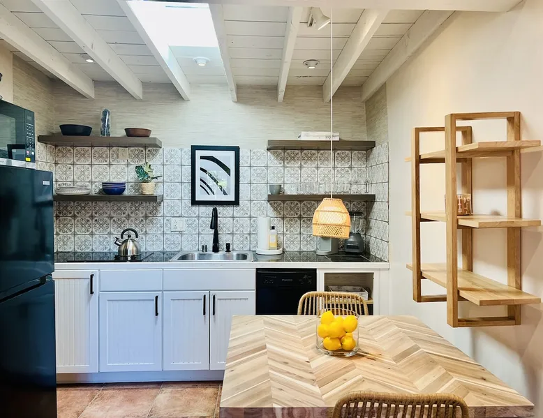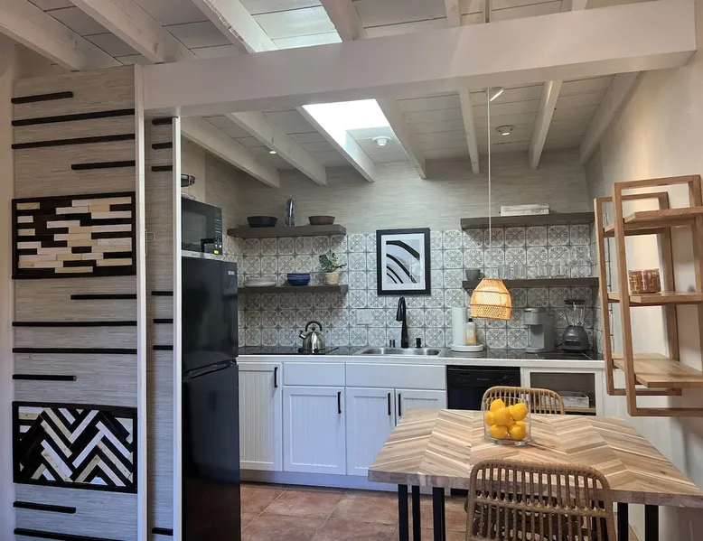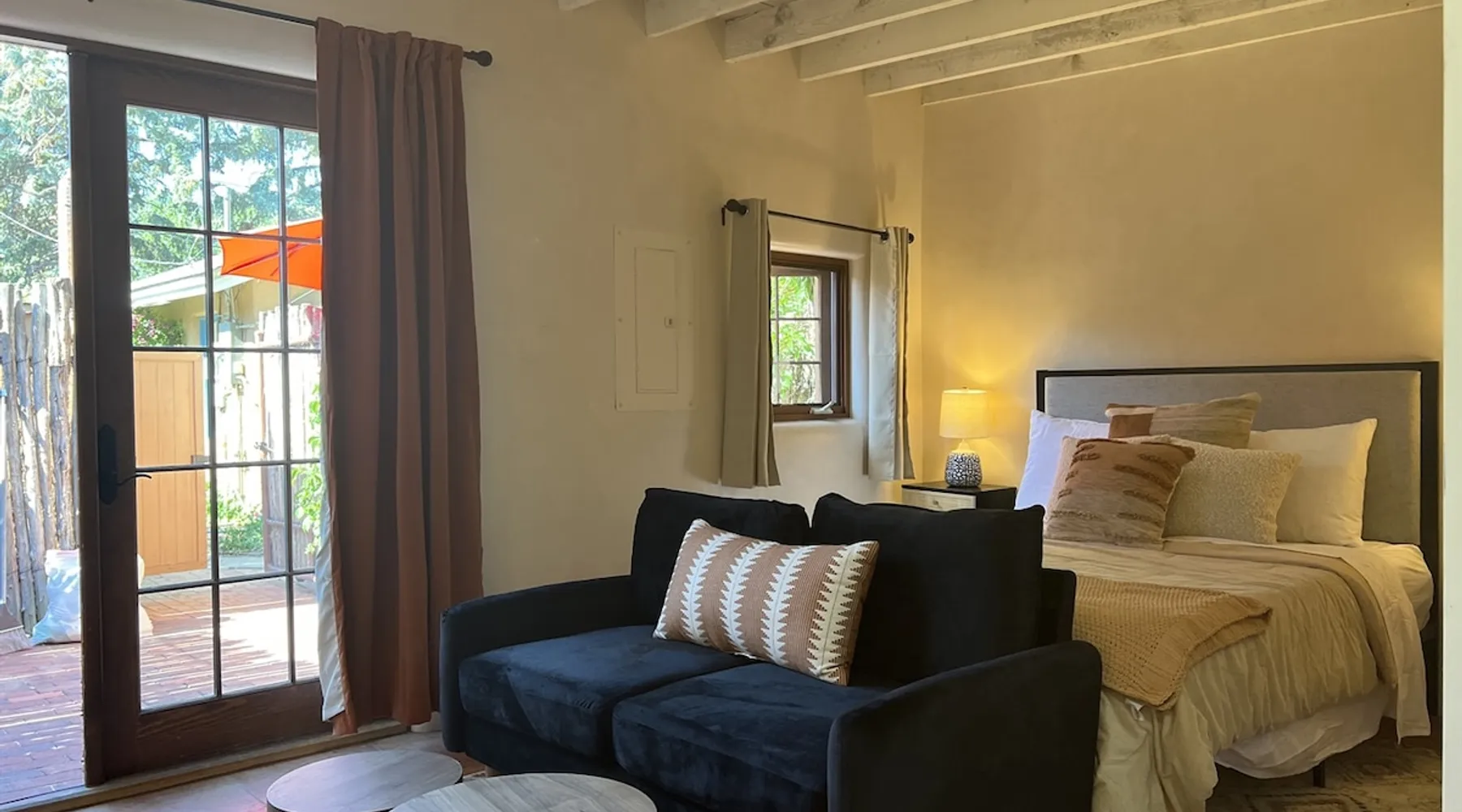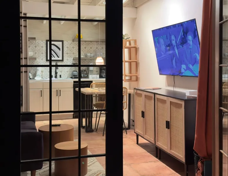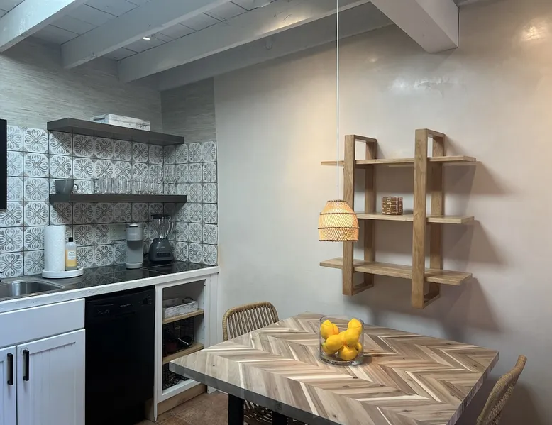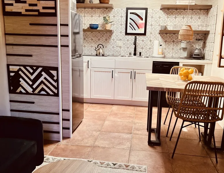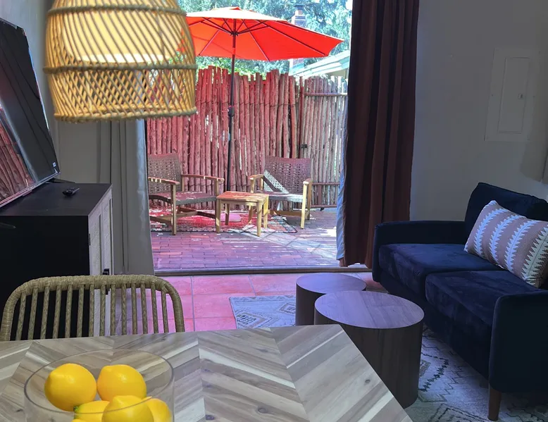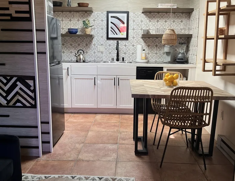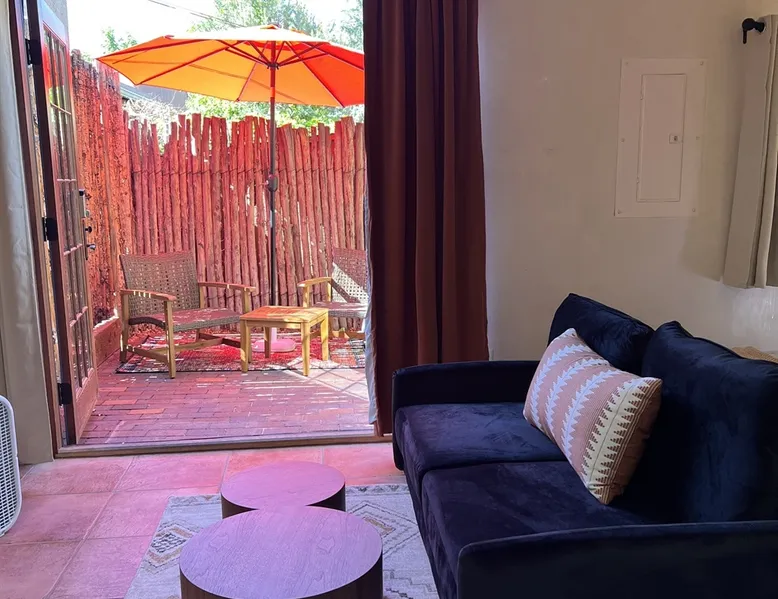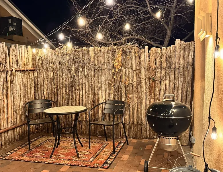 Experience Serenity in Santa Fe — a peaceful adobe retreat just a short walk from the Plaza, restaurants, and galleries. This stylish, redesigned home features a cozy living space, well-equipped kitchenette, and private patio with chiminea, grill, and dining area. Ideal for couples or solo travelers seeking a relaxing, walkable Santa Fe getaway. Complimentary parking pass included. The space This Cozy Studio, features a queen bed, kitchenette with full fridge, cooktop, and convection microwave oven. Private patio offers a dining table, charcoal grill, chiminea, and lounge chairs. Walk-in shower and in-unit washer/dryer. Included is a starter supply of basic amenities including paper towels, toilet paper, coffee, tea, and spices. You may need to supplement this supply based on individual preferences and usage. There is plenty of street parking available and for your convenience we provide a complimentary parking pass for use during your stay. Special attention rules * 40% Discount off nightly rate for stays of at least 28 days * 5% Discount off nightly rate for stays of at least 7 nights * Primary Renter Must Upload Government ID * Up to one dog is allowed for extra $100 per stay. Dog waiver must be signed. No other types of pets are allowed. * No smoking * No parties or events * Must be 25 to book * No college Spring breakers * A credit card security deposit HOLD is required * You must sign our rental agreement * In addition to taxes rental platform may collect, all rentals subject to a Santa Fe Lodger's Tax of 8.1875% tax * If you are staying with us on Sunday night, please roll the garbage cans to the street for Monday pick-up, then back in place Monday afternoon. Guest access Guests are provided a unique door code once the home has been cleaned and inspected. Other things to note Private patio features a dining table, charcoal grill, chiminea and lounge chairs. Registration Details STR235486