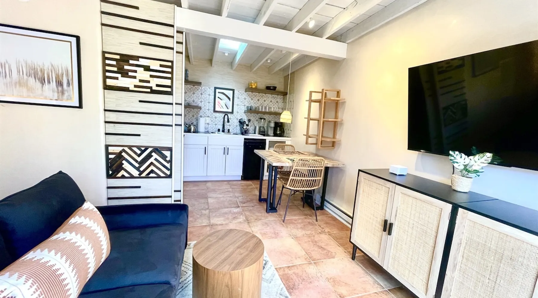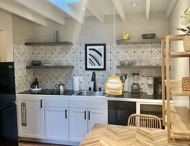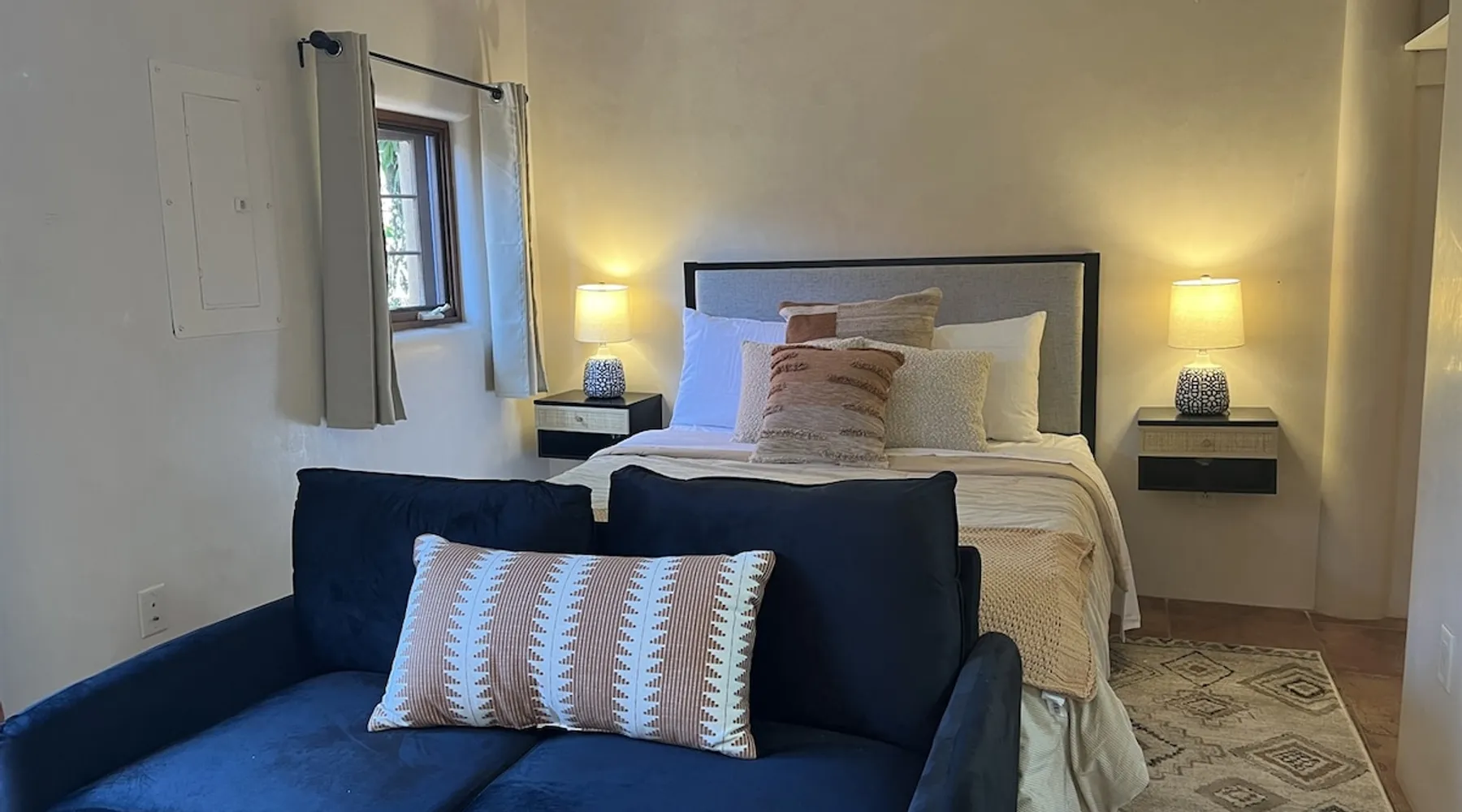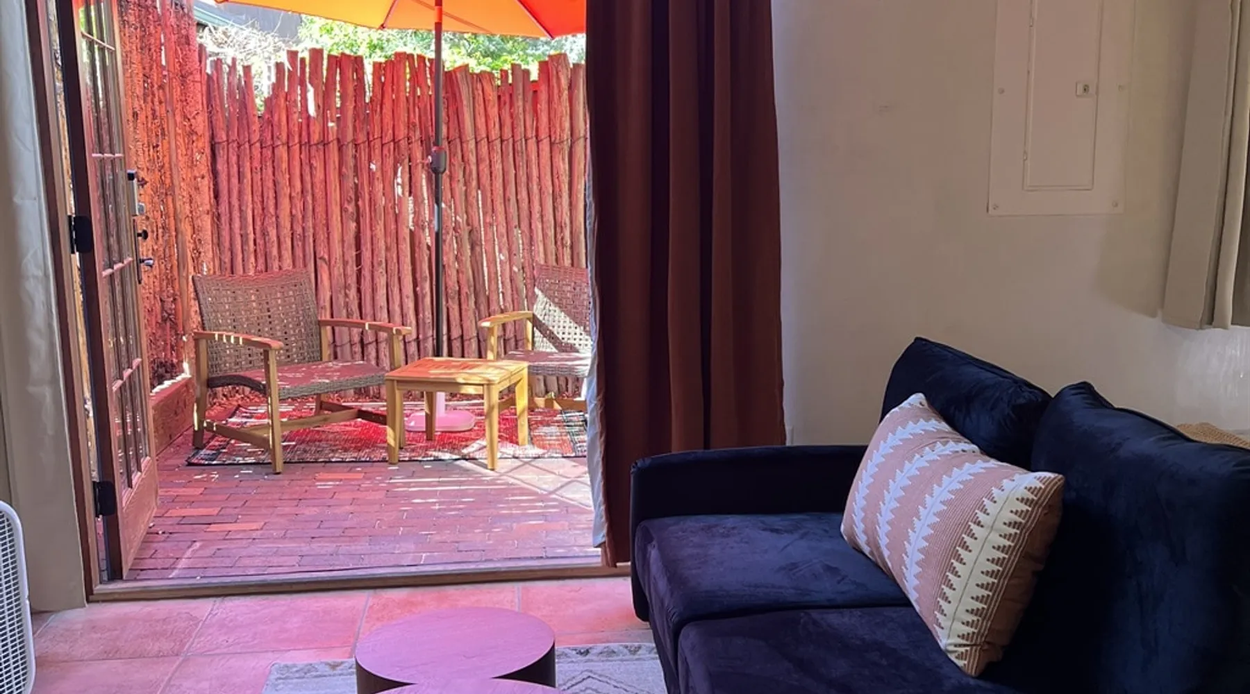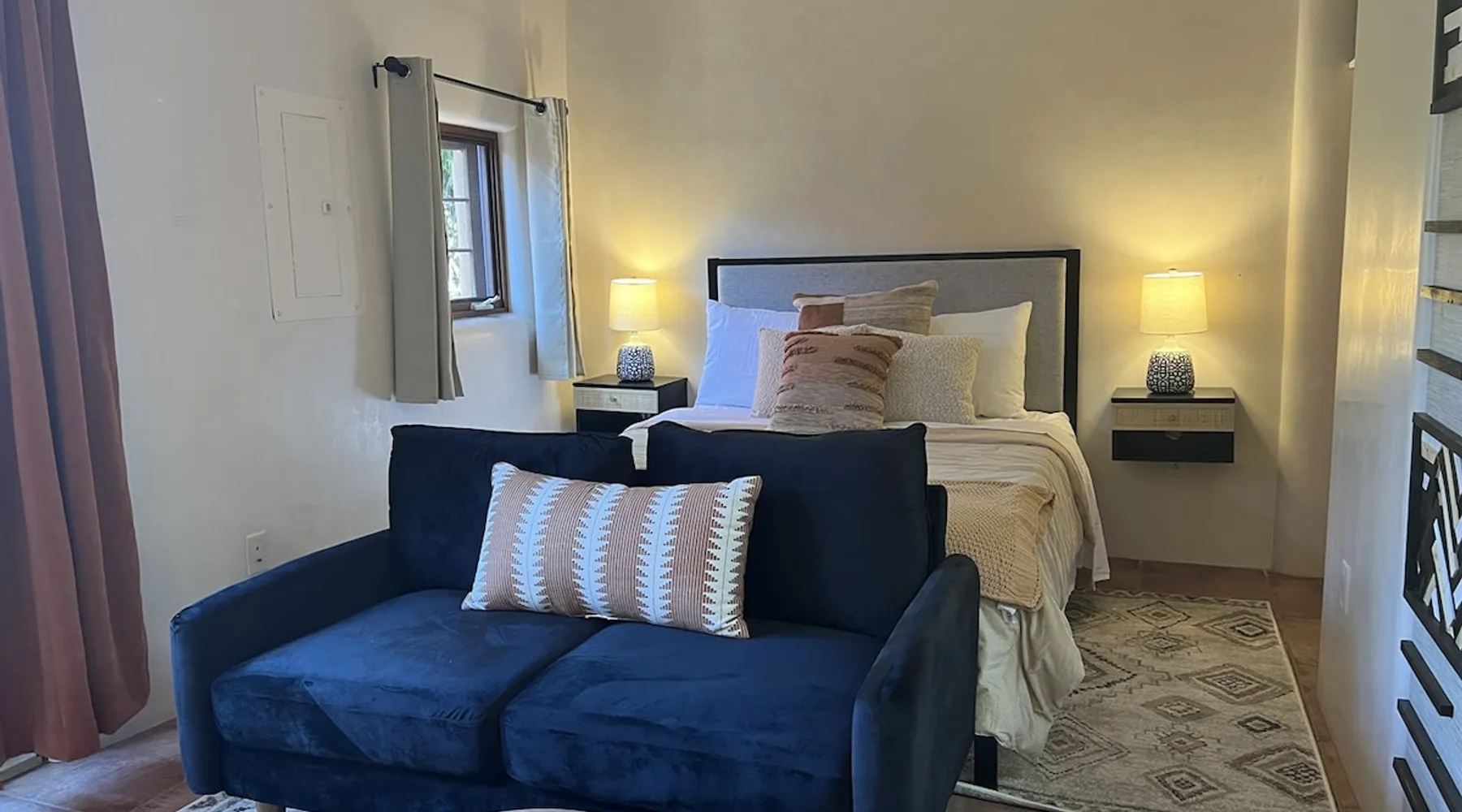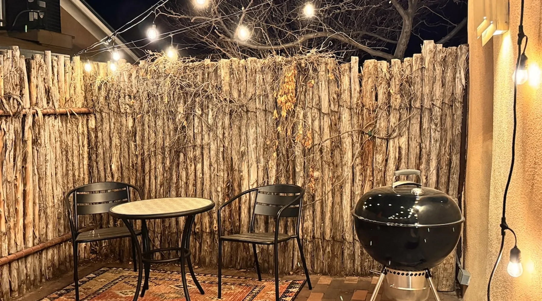 Experience Serenity in Santa Fe — a peaceful adobe retreat just a short walk from the Plaza, restaurants, and galleries. This stylish, redesigned home features a cozy living space, well-equipped kitchenette, and private patio with chiminea, grill, and dining area. Ideal for couples or solo travelers seeking a relaxing, walkable Santa Fe getaway. Complimentary parking pass included. The space This Cozy Studio, features a queen bed, kitchenette with full fridge, cooktop, and convection microwave oven. Private patio offers a dining table, charcoal grill, chiminea, and lounge chairs. Walk-in shower and in-unit washer/dryer. Included is a starter supply of basic amenities including paper towels, toilet paper, coffee, tea, and spices. You may need to supplement this supply based on individual preferences and usage. There is plenty of street parking available and for your convenience we provide a complimentary parking pass for use during your stay. Special attention rules * 40% Discount off nightly rate for stays of at least 28 days * 5% Discount off nightly rate for stays of at least 7 nights * Primary Renter Must Upload Government ID * Up to one dog is allowed for extra $100 per stay. Dog waiver must be signed. No other types of pets are allowed. * No smoking * No parties or events * Must be 25 to book * No college Spring breakers * A credit card security deposit HOLD is required * You must sign our rental agreement * In addition to taxes rental platform may collect, all rentals subject to a Santa Fe Lodger's Tax of 8.1875% tax * If you are staying with us on Sunday night, please roll the garbage cans to the street for Monday pick-up, then back in place Monday afternoon. Guest access Guests are provided a unique door code once the home has been cleaned and inspected. Other things to note Private patio features a dining table, charcoal grill, chiminea and lounge chairs. Registration Details STR235486