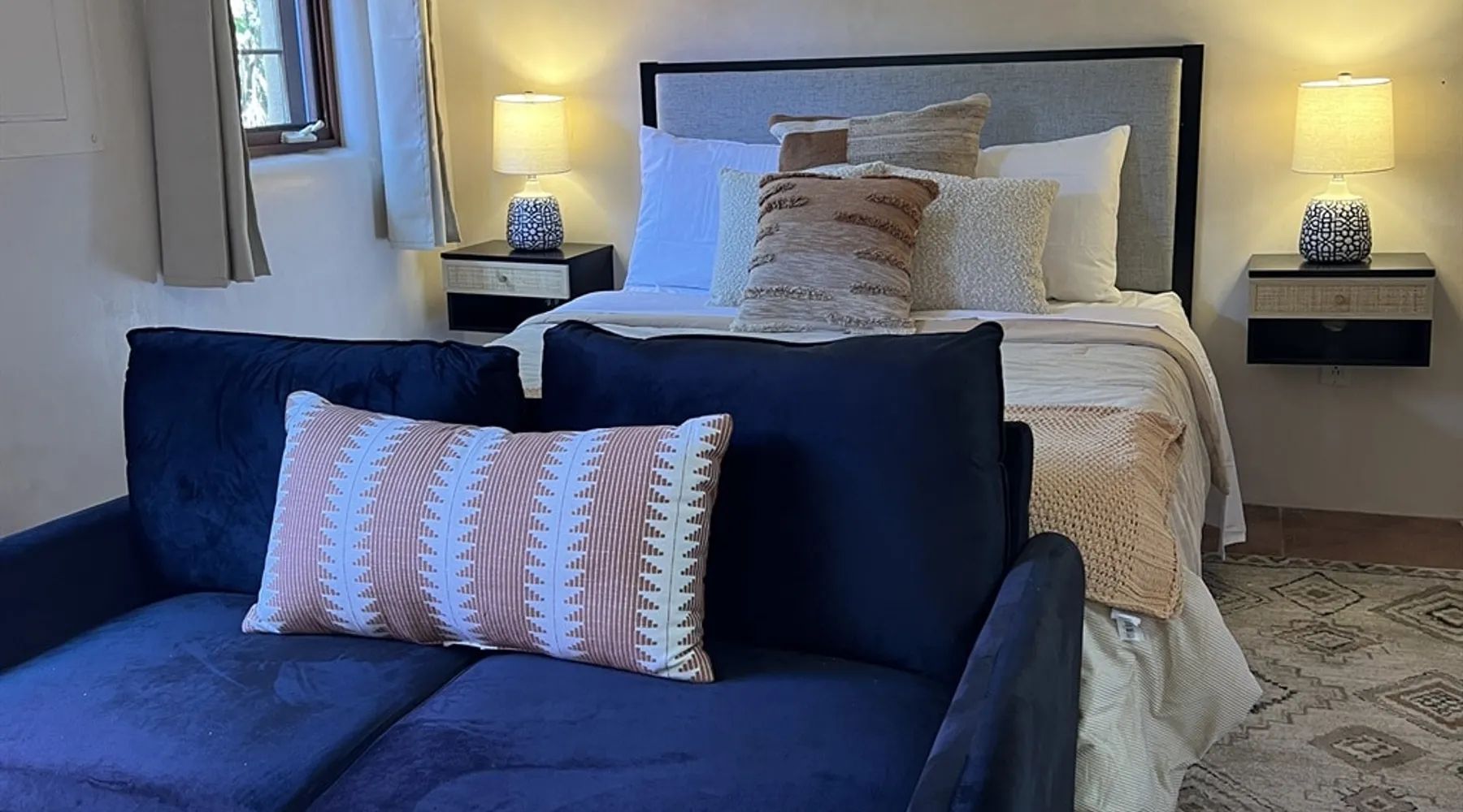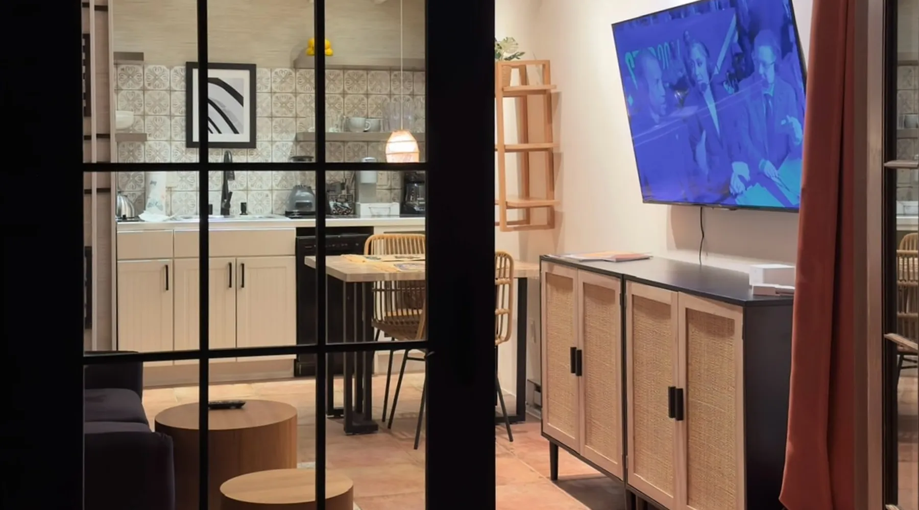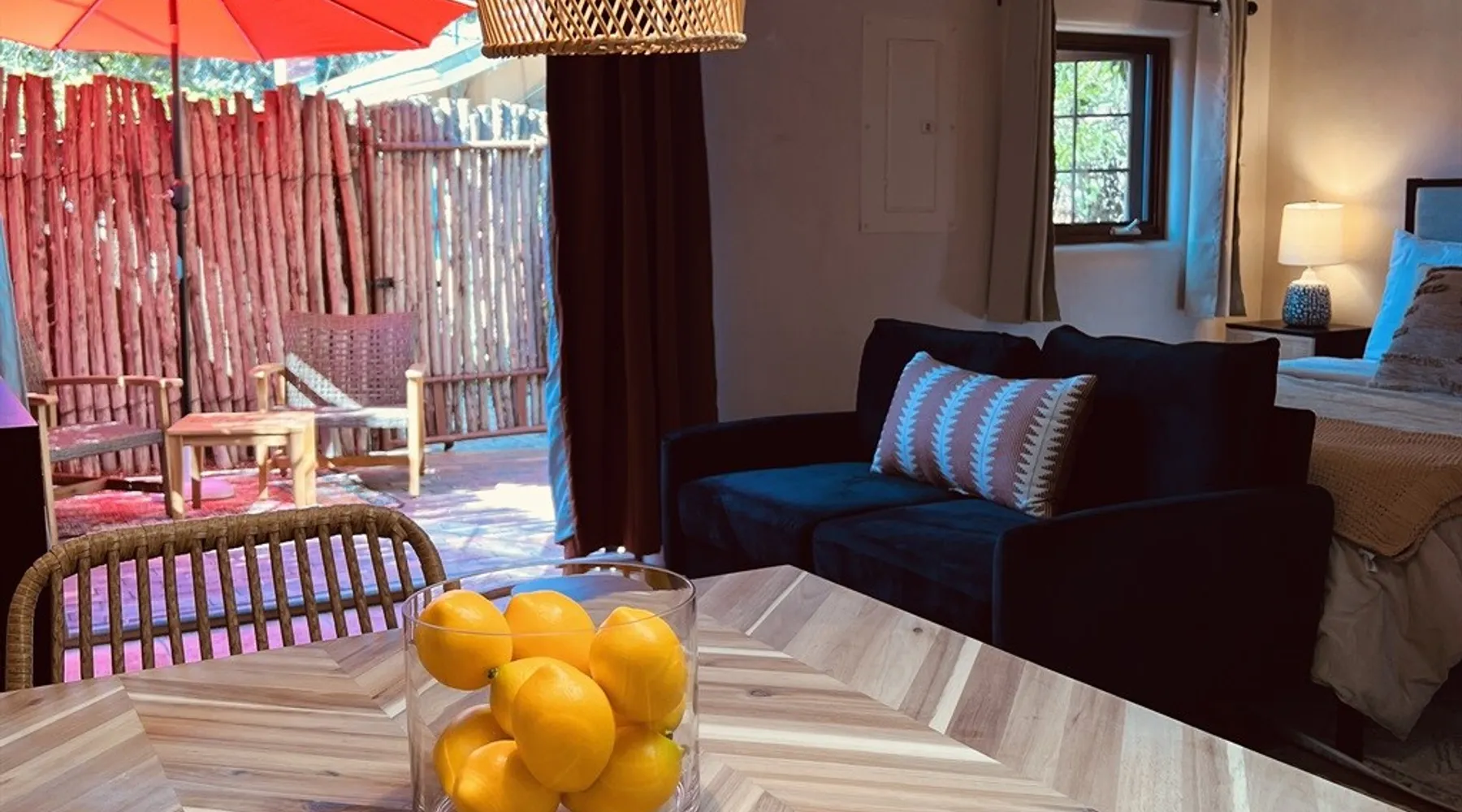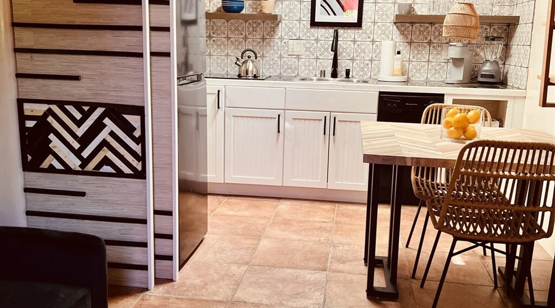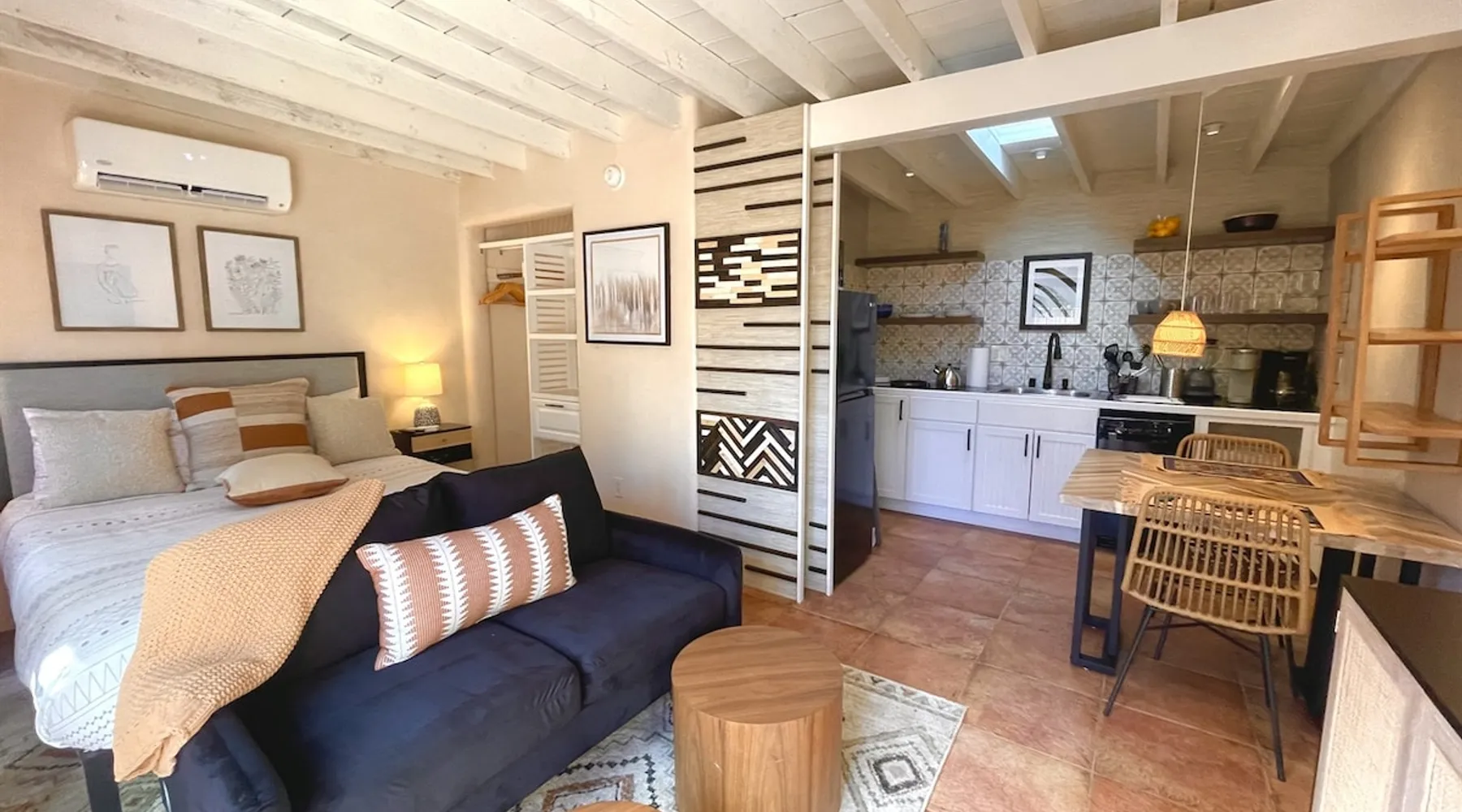 Experience Serenity in Santa Fe — a peaceful adobe retreat just a short walk from the Plaza, restaurants, and galleries. This stylish, redesigned home features a cozy living space, well-equipped kitchenette, and private patio with chiminea, grill, and dining area. Ideal for couples or solo travelers seeking a relaxing, walkable Santa Fe getaway. Complimentary parking pass included. The space This Cozy Studio, features a queen bed, kitchenette with full fridge, cooktop, and convection microwave oven. Private patio offers a dining table, charcoal grill, chiminea, and lounge chairs. Walk-in shower and in-unit washer/dryer. Included is a starter supply of basic amenities including paper towels, toilet paper, coffee, tea, and spices. You may need to supplement this supply based on individual preferences and usage. There is plenty of street parking available and for your convenience we provide a complimentary parking pass for use during your stay. Special attention rules * 40% Discount off nightly rate for stays of at least 28 days * 5% Discount off nightly rate for stays of at least 7 nights * Primary Renter Must Upload Government ID * Up to one dog is allowed for extra $100 per stay. Dog waiver must be signed. No other types of pets are allowed. * No smoking * No parties or events * Must be 25 to book * No college Spring breakers * A credit card security deposit HOLD is required * You must sign our rental agreement * In addition to taxes rental platform may collect, all rentals subject to a Santa Fe Lodger's Tax of 8.1875% tax * If you are staying with us on Sunday night, please roll the garbage cans to the street for Monday pick-up, then back in place Monday afternoon. Guest access Guests are provided a unique door code once the home has been cleaned and inspected. Other things to note Private patio features a dining table, charcoal grill, chiminea and lounge chairs. Registration Details STR235486