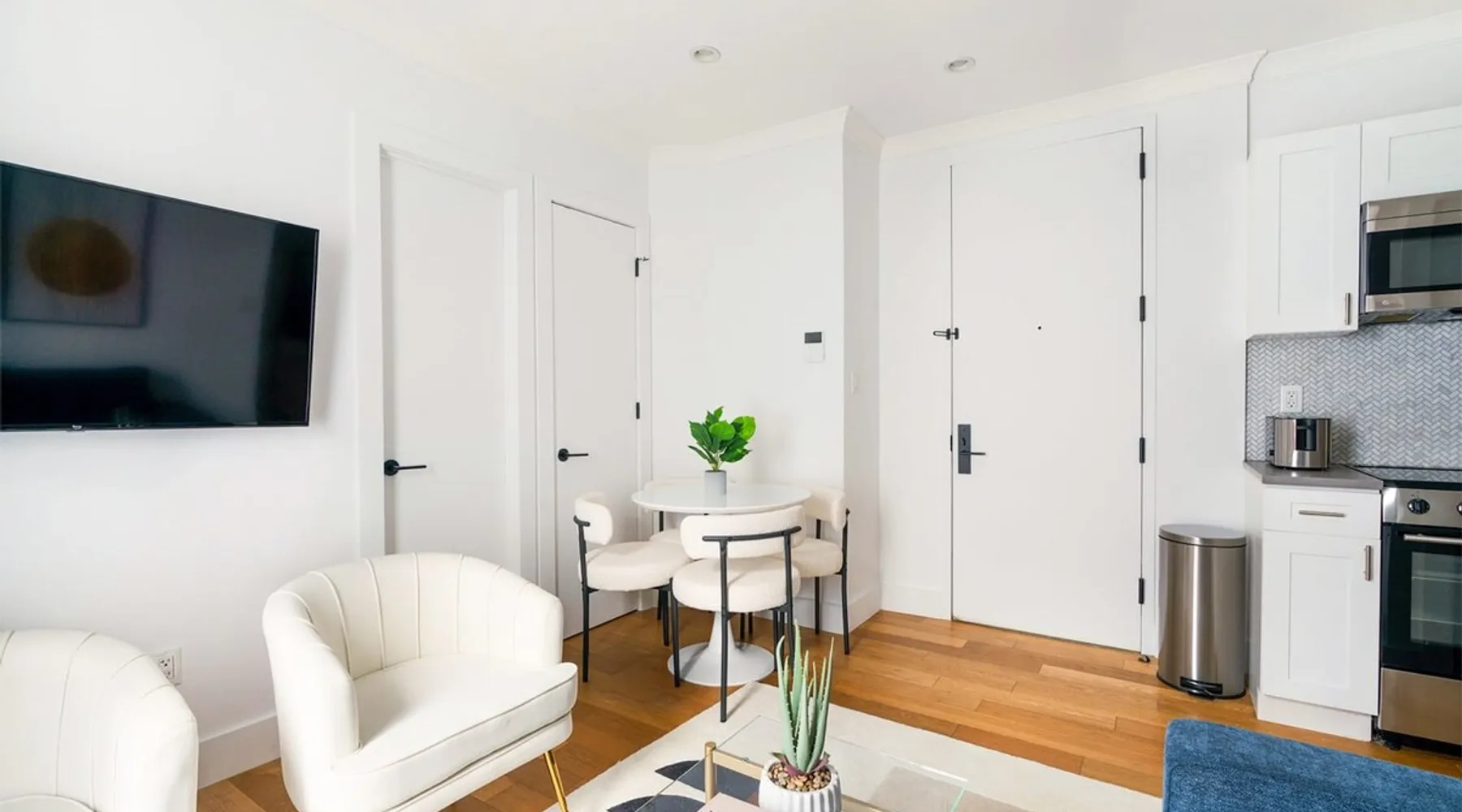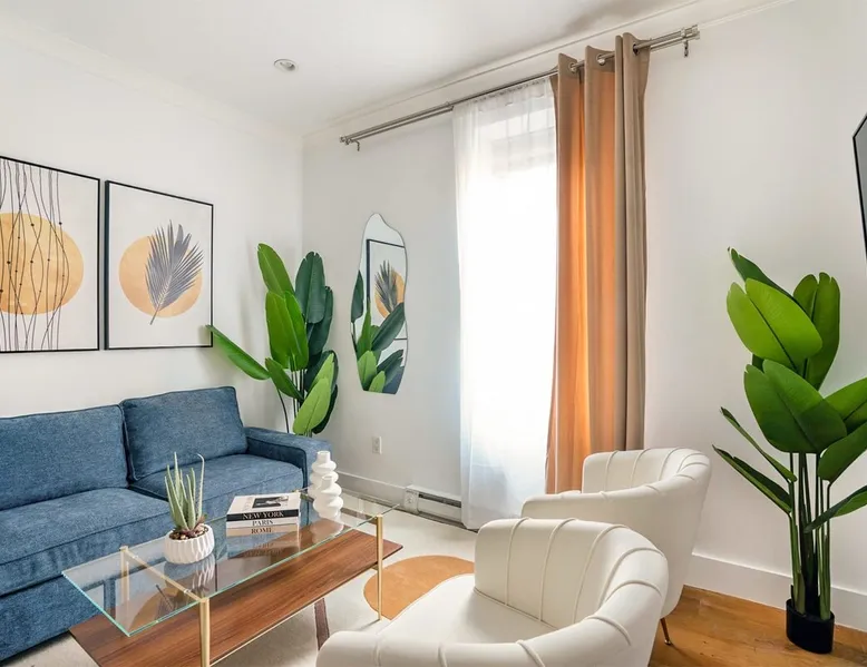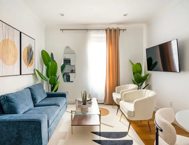 This beautifully renovated 3-bedroom/2 baths apartment, located in the coveted Upper East Side, boasts ample living space and is just a short stroll from the subway. The apartment is fully furnished, with a charming and spacious fully stocked kitchen featuring a dining area. The building is impeccably maintained, providing a clean and secure walk-up environment. The space Inside the apartment, guests will be greeted by beautiful hardwood floors throughout. Each of the three bedrooms is furnished with a comfortable queen-size bed, ensuring a restful night's sleep for everyone. The apartment boasts a generously sized living room, featuring a cozy sofa where can relax comfortably. For entertainment, a 50" Smart TV is available, and Wi-Fi is provided for guests' convenience. Linens and kitchen supplies are included to enhance your stay in this inviting three-bedroom apartment. Please note that New York City's heating season is until the end of May. Beginning around mid-April, we will install window Air Conditioning in the apartment. Please let us know if you would like to request an earlier installation! Guest access Lock Box