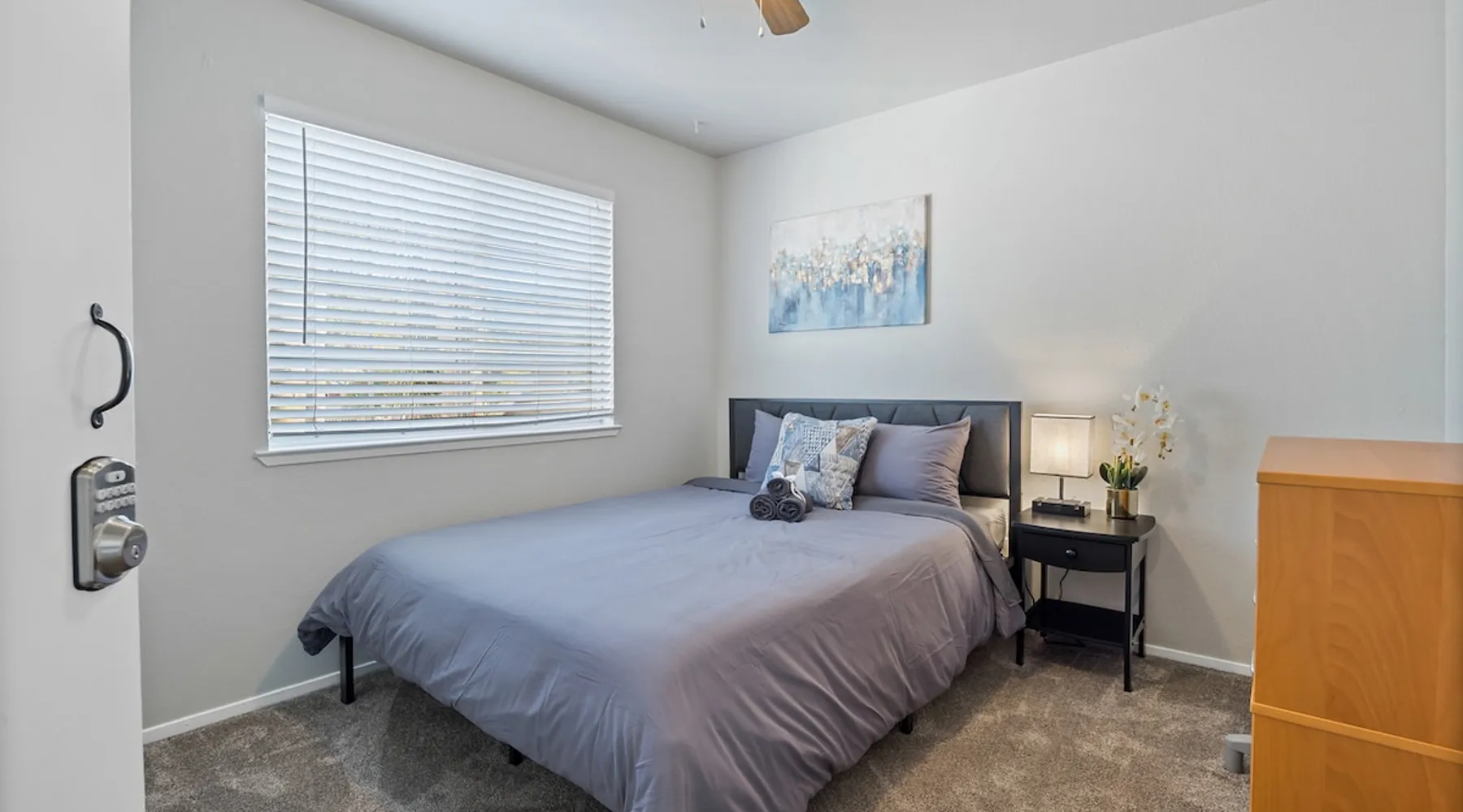 Experience comfort and relaxation in our South Natomas home. Private room offers a cozy space, complemented by easy access to shared amenities including a common bathroom, half bathroom, and a spacious living room and kitchen. Take advantage of the serene shared backyard, ideal for unwinding and enjoying the outdoors. Enjoy hassle-free street parking, and nearby attractions, shopping centers. Note: This is a private room in a home, so some areas are shared. NOT SUITABLE FOR COUPLES WITH INFANT. The space Welcome to our cozy private room in the heart of South Natomas, Sacramento! Relax and unwind in your comfortable space, equipped with all the amenities you need for a peaceful stay. Enjoy access to shared areas, including the common bathroom and a convenient half bathroom, a spacious living room for relaxation, a fully equipped kitchen, and in-unit laundry facilities for your convenience. Entertainment is at your fingertips with our pool table, Netflix, and Disney, ensuring you're always entertained during your downtime. Take a breather in our spacious backyard, complete with comfortable outdoor furniture, providing the perfect setting for a morning coffee or an evening of stargazing. Rest assured, parking is hassle-free with multiple street parking options available right at your doorstep, making your stay as stress-free as possible. Our location is unbeatable, with easy access to both the airport and downtown, ensuring you never miss a beat of the vibrant city life. Explore the abundance of shopping and dining options in Natomas, allowing you to savor the local flavors and experience the diverse culinary scene. Nature enthusiasts will appreciate the nearby parks, offering a serene escape from the bustling city life. Look no further for the perfect spot to experience the best of Sacramento. *Important: Though our smart TVs have streaming apps installed (Netflix, Disney+, Amazon Prime), guests would need to log in with their own credentials. Please remember to logout of the apps at checkout. Short Term Rental Permit #02304P Guest access You have access to your private room and shared spaces like the common bathroom, half bathroom, living room, kitchen, in-unit laundry, and backyard. AC usage: To ensure the air conditioning system functions properly during your stay, please avoid setting the temperature below 72 degrees. Setting it too low can cause the coils to freeze, which may lead to a temporary loss of cooling. Keeping the thermostat at a moderate level will help maintain a comfortable environment throughout your visit. HVAC visit due to coil freezing because of setting the temperature too low will be charged to the guest. During your stay We're always here for you! Whether you have questions, concerns, or just need some local recommendations, our team is available 24/7 to assist you. You can reach us via text, Airbnb messenger, or call, and we'll respond promptly to ensure that your stay is as enjoyable and stress-free as possible. Don't hesitate to reach out if you need anything at all. We're here to help! Other things to note Please note that we have installed a security camera at the front door, pointed outside for security purposes, and a NoiseAware device inside the home to monitor noise levels. The NoiseAware device is not intended for recording, and please be assured that we cannot hear any audio from it. We want to ensure that your stay with us is enjoyable and hassle-free. To make sure that we maintain the property's cleanliness and safety, we kindly request that you take note of the following reminders for STRICT IMPLEMENTATION during your stay at our property: • Pets are strictly prohibited on the premises. • Smoking, vaping, or use of marijuana is strictly not allowed anywhere on the property. Please smoke on the street and do not litter cigarette butts or ashes on the property. • Parties, events, birthdays, bachelor or bachelorette stays, get-togethers, and the like are not allowed. • Check-in time is after 4 PM and check-out time is by 11 AM. • Please use the smart lock for self-check-in. • Respect your neighbors by keeping noise levels down and avoiding disturbances. • Do not wash dishes in the bathroom sink. • Burning candles, incense, or any other open flames is strictly prohibited. • Personal mail deliveries are not allowed on the property. We can only allow Amazon package deliveries. • Please ensure that you lock the door AT ALL TIMES to ensure the safety of you and your belongings. • The number of guests staying should not exceed the number stated in your reservation, and unapproved visitors are not allowed. • Loud music or disturbances, especially noise past 10 PM, are not allowed. • Please note that excessive internet data usage will result in a fee of $50 if it exceeds the limits of our plan. • If you open it, close it; if you borrow it, return it; if you turn it on, turn it off; if you break it, fix it; if you use it, look after it; if you make a mess, clean it up; and if you move it, replace it. NOTE: We are not responsible or liable for any accidents, injuries, or illnesses that occur while on the premises. We are not responsible for the loss of personal belongings or valuables during your stay. We cannot be responsible for any items left behind. • FEES: A lost remote control (TV, fan, or air conditioner) will result in a $100 charge. • A deep cleaning fee applies to reservations of 7 nights or more. A holiday cleaning fee also applies to guests who check out during recognized holiday dates. An additional $32.5 fee will be charged for bookings that meet the criteria for both deep cleaning and a holiday stay. This amount will be collected through the Airbnb Resolution Center after the reservation is confirmed. • FEES: A $250 fine will be imposed for any type of smoking. • FEES: Unapproved Late Check-Out fees: Every hour after 11 a.m. is an additional $50. • FEES: Additional guests not listed in your reservation will be c