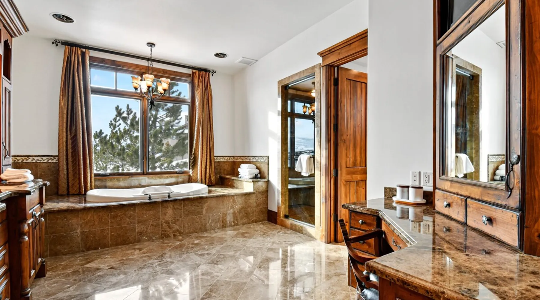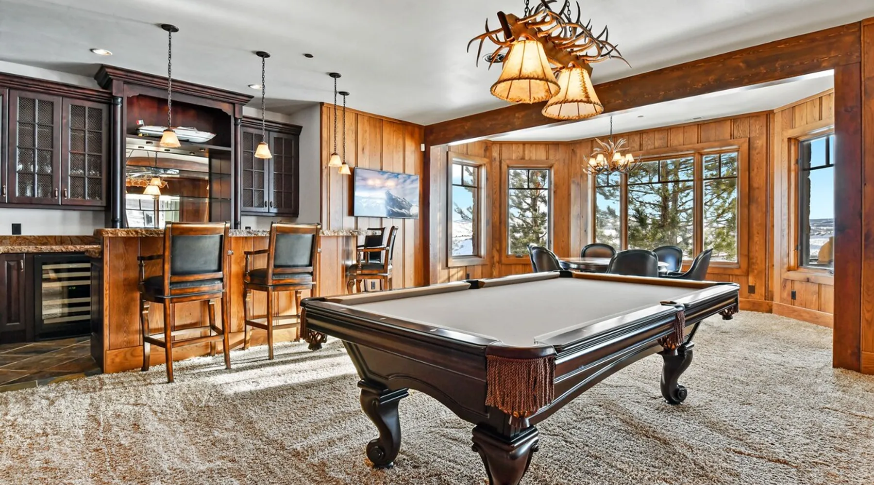 Luxury Home in Tuhaye with Sweeping Views, Hot Tub, Multiple Outdoor Living Spaces Welcome to Northstar Ridge 1, located within the exclusive gated community of Tuhaye, with amenities including Park City's Main Street, Deer Valley, and Park City Mountain all within a 20-minute drive, enjoy mountain, lake, and valley vistas, open space, rolling hills, golf course views, and an expansive trail network for your walking, hiking and biking pleasure. This luxury home, which is located in the Northstar Ridge neighborhood of Tuhaye, offers stunning views of the Mark O'Meara championship golf course and the Uinta National Forest. This home combines luxury details and amenities with a desirable location. The elegant home offers astonishing views, multiple outdoor living areas, a private theatre, and more. Mountain-luxury décor accented with sweeping mountain views makes this home a true paradise among the hills of Tuhaye. In the living room, cozy up on the comfortable furnishings in front of a gas fireplace and flatscreen TV while taking in the astounding views from large windows. The kitchen is a chef's dream with ample counter space, dual sinks, a Wolf range, and a large refrigerator. The kitchen is also stocked with anything you might need to prepare home-cooked meals. A breakfast bar seats up to three, while the gorgeous dining table can seat up to eight. The spacious balcony is furnished with six Adirondack chairs surrounding a firepit, which overlooks the breathtaking mountain view. On the main level, you will find three of the five bedrooms. The master suite features a comfortable king-sized bed, fireplace, flat-screen TV, and ensuite bathroom. This room also has its own entrance to the balcony. The ensuite is outfitted with a large soaking tub, spacious shower, double vanity, and makeup desk. The second and third bedrooms feature king-sized beds, flatscreen TVs, and ensuite baths. Downstairs, you will find an impressive entertainment area. This secondary living space makes entertaining a breeze with a billiards table, a full-sized bar, a theatre room, and a game table. It is also furnished with a large sectional couch surrounding a real wood-burning fireplace and flatscreen TV. The lower-level patio features a BBQ grill and a private hot tub. The remaining two bedrooms can also be found on this level of the home. The fourth bedroom is furnished with a king-sized bed, flat-screen TV, fireplace, and ensuite bath. The fifth bedroom is perfect for the kids, outfitted with two sets of twin bunk beds, a flatscreen, and an ensuite bath. The home is also equipped with a washer and dryer. There is parking for three cars in the garage, with extra space in the driveway if needed. This home combines mountain living with luxury amenities, guaranteeing a stay that you will never forget. This home is pet friendly accepting one dog (up to standard size, no large breed dogs) -- guests with pet must notify [email protected], execute the Rental Agreement Pet Addendum, and pay a cleaning surcharge (total cleaning cost 3x the listed cleaning charge, covers deep cleaning + carpet cleaning). While all may enjoy the beautiful scenery and numerous trails available at Tuhaye, please note that other community amenities are available to Talisker Club members only. Non-member guests renting are not provided access to golf, pool, clubhouse and other Talisker Club amenities. However, guests will enjoy the home's wonderful amenities including hot tub and fire pit, and there are excellent public golf courses and sports clubs with daily and monthly memberships available in close proximity of Tuhaye available. HOA rules allow us to offer this property for 30 night or longer stays only. Rate listed reflects discount for 30+ night rental. > Personel may enter the garage to collect and return trash receptacles.