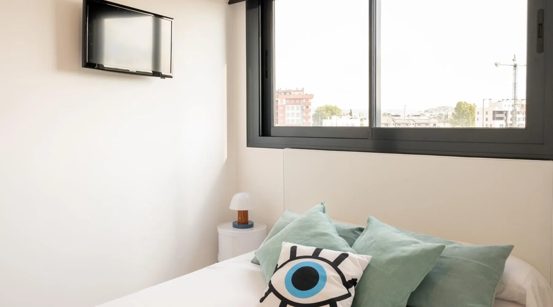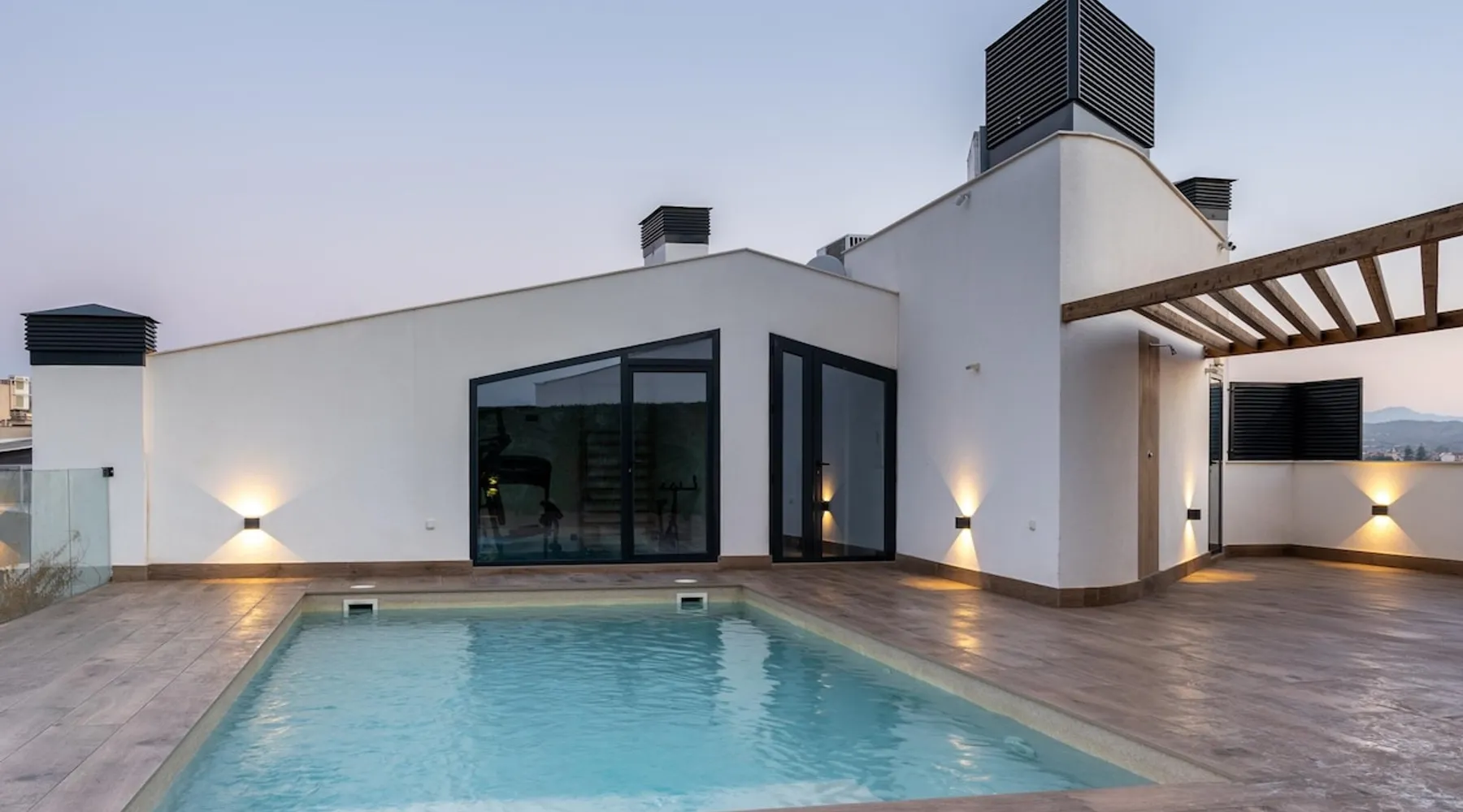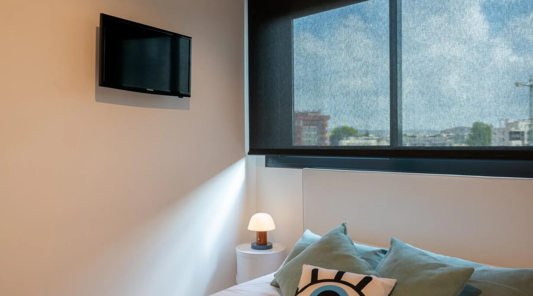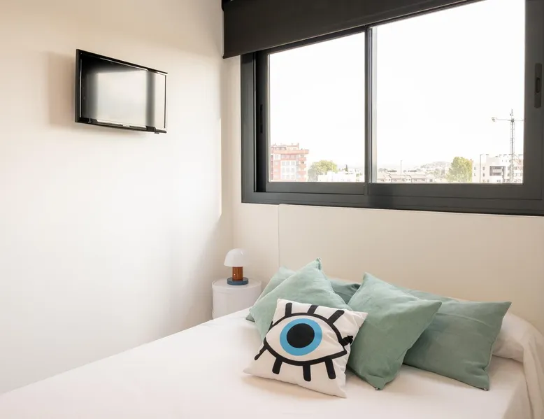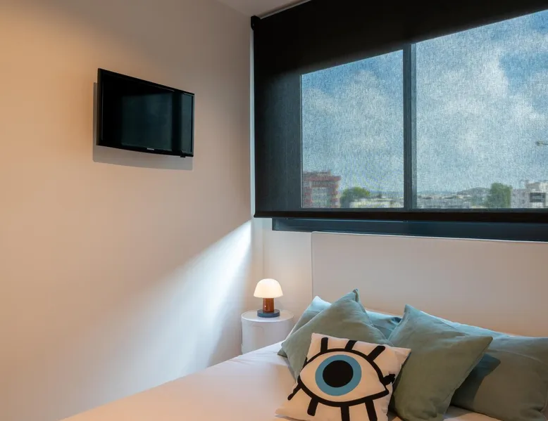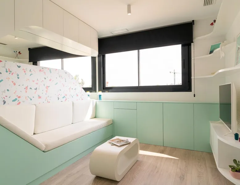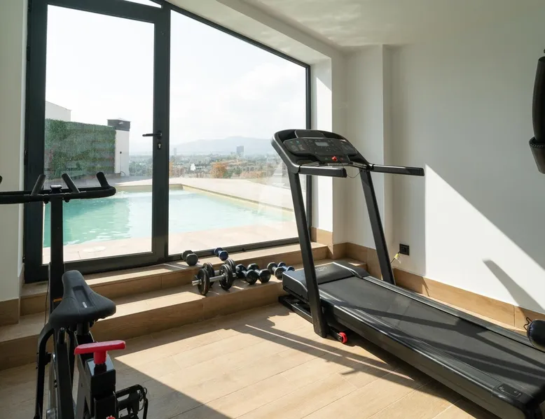 Design flat for 2 people with communal swimming pool and gym.