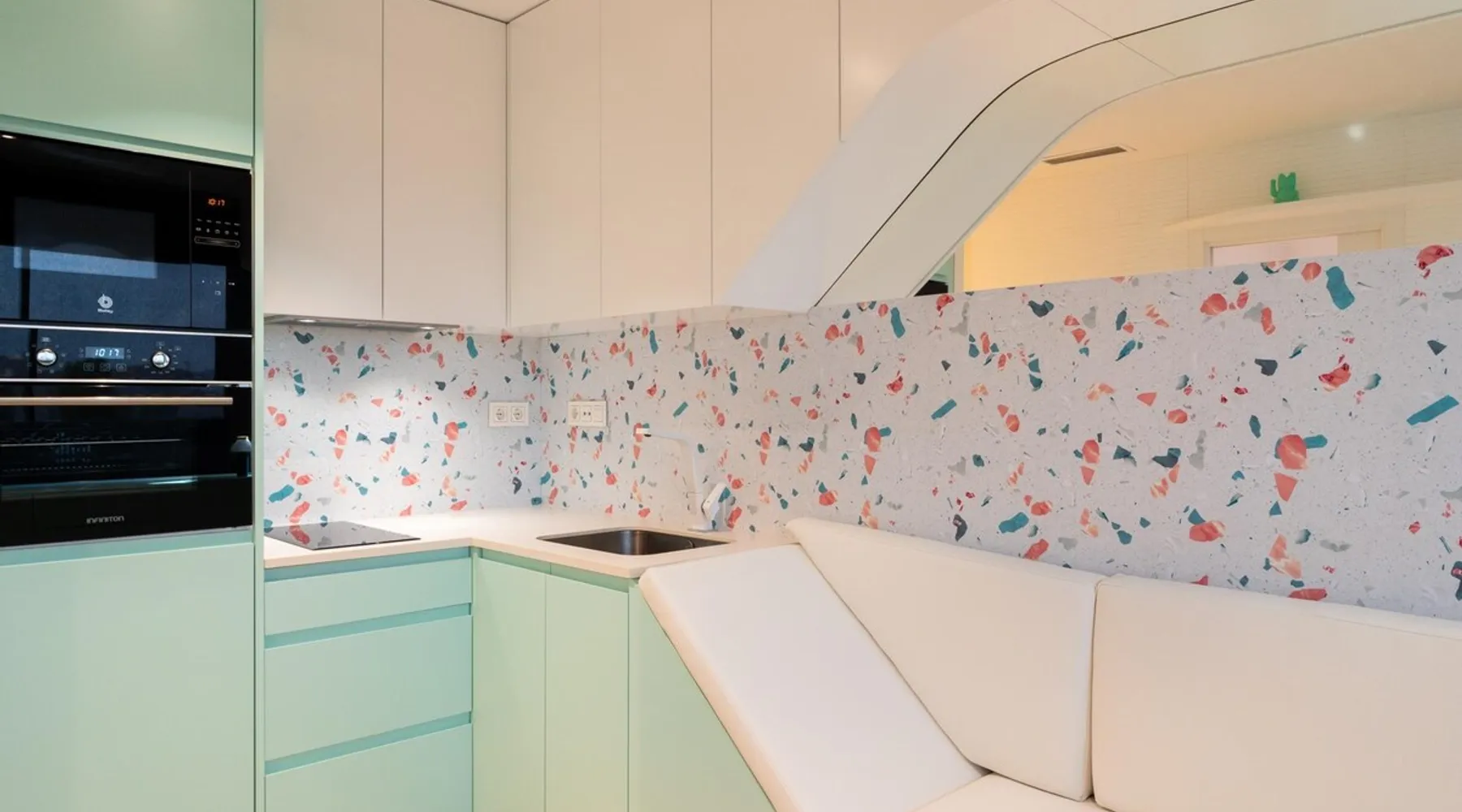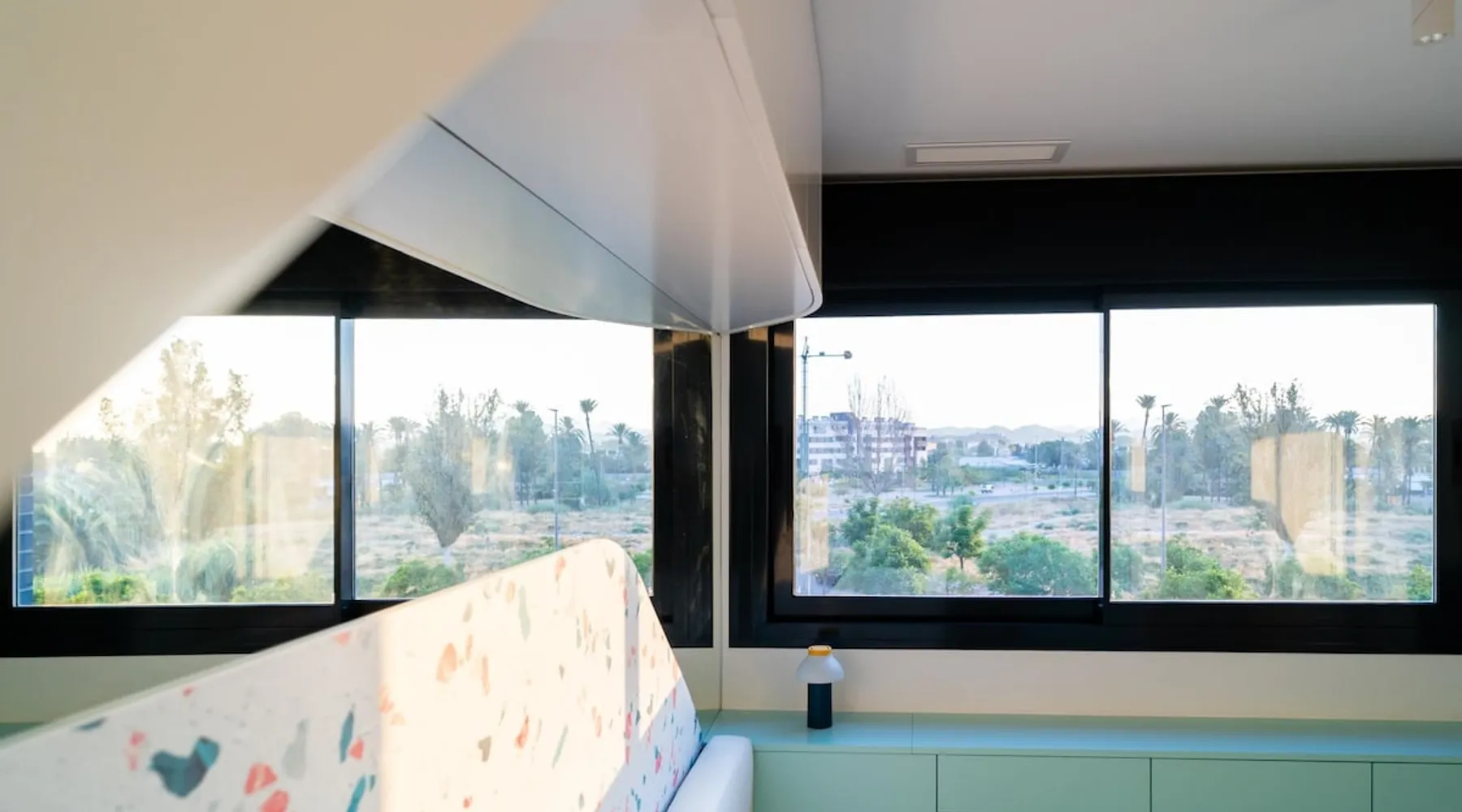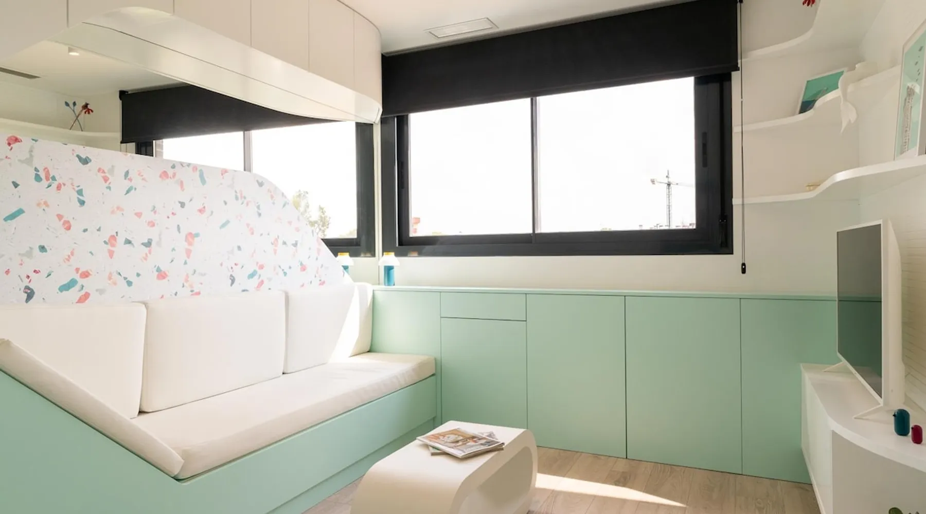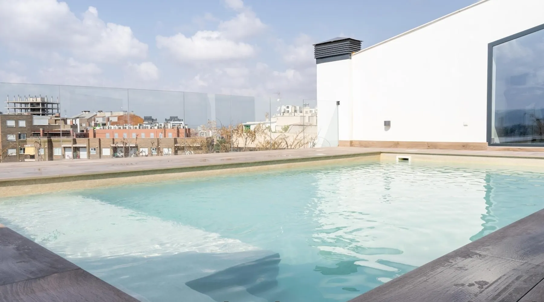 Design flat for 2 people with communal swimming pool and gym.