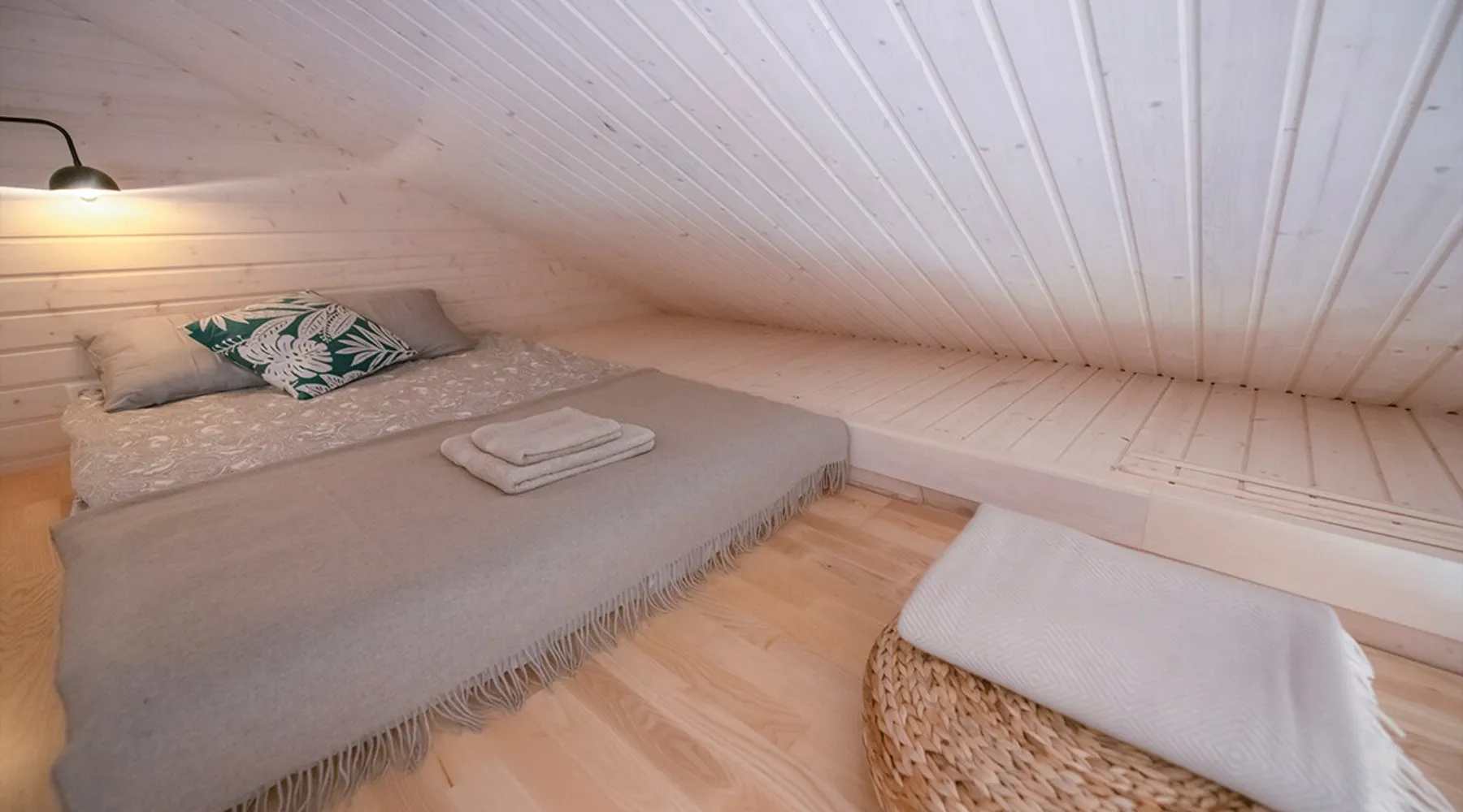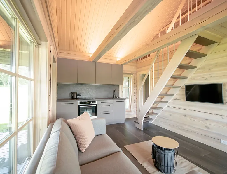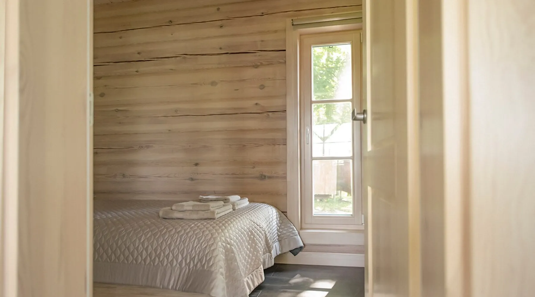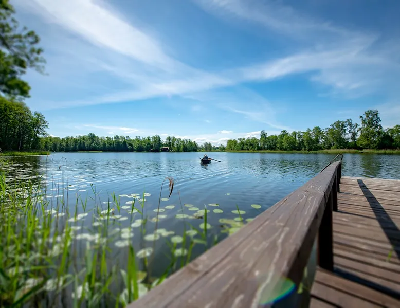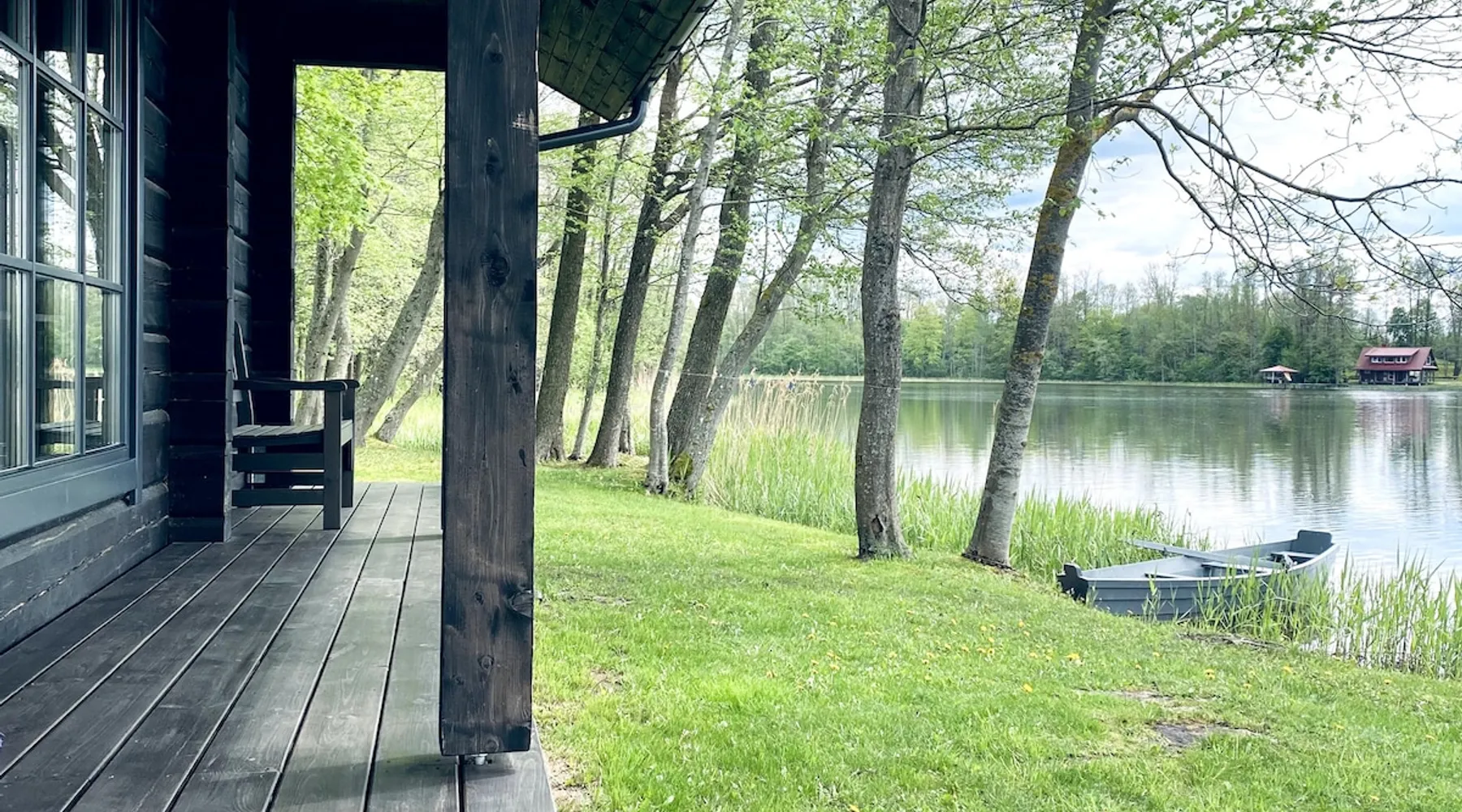 VieniKrante - the cabin is located in a large 1.8ha farmstead area, right next to the lake, so you will meet your neighbors very rarely. We created this place Inspired by the love of the family and nature, we chose the most natural materials, we thought about the details and the smallest details, which would make the holiday or a short getaway from the city, turned into a memorable getaway in the log cabin on the lake shore. The cottage is comfortable for a couple or family of 4-5 people, it is suitable for both short and longer comfortable recreation. The space The lodge - 24 sq. meters on the first floor, on the second floor - 16 sq. m. not full height open attic. On the first floor there is a living room with kitchen and smart TV, a bedroom with a double bed and a wardrobe for things, WC room with shower. On the second floor, there are two queen mattresses in the open attic. Insect nets placed on windows. There is unlimited wifi. The cottage is equipped with underfloor heating if you would like to come in during the cold season as well. We welcome up to 5 vacationers. Most comfortable for a couple or family of 4-5 persons to rest. Outside, a spacious 40 sq.m. terrace with dining table, hanging seating, lounge furniture. There are 2 loungers. The area has a gazebo with a hot tub (at an additional cost) and furniture, a boat for a swim in the lake or fishing, swings, basketball stand, barbeque with skewers/grills, firewood. The retreats are welcomed for a quiet retreat, not for the holidays! Other things to note Hot tub and paddle boards are available at a paildown price. Hot tub price 50 eur per time.