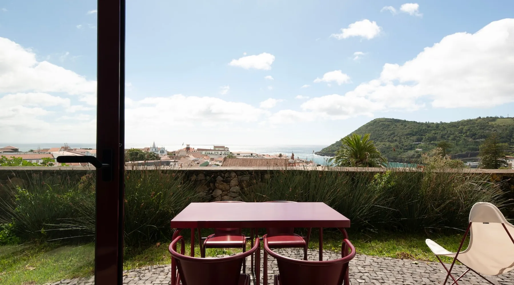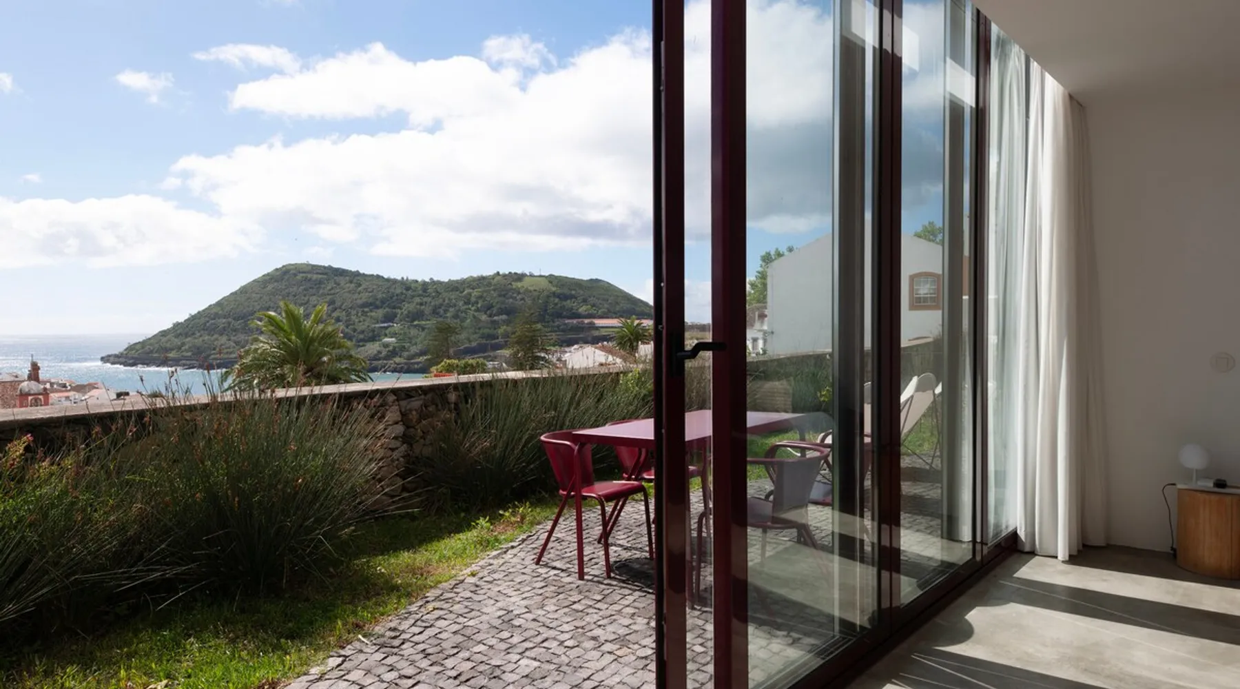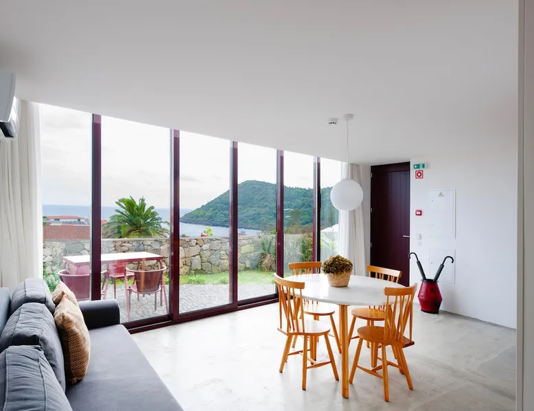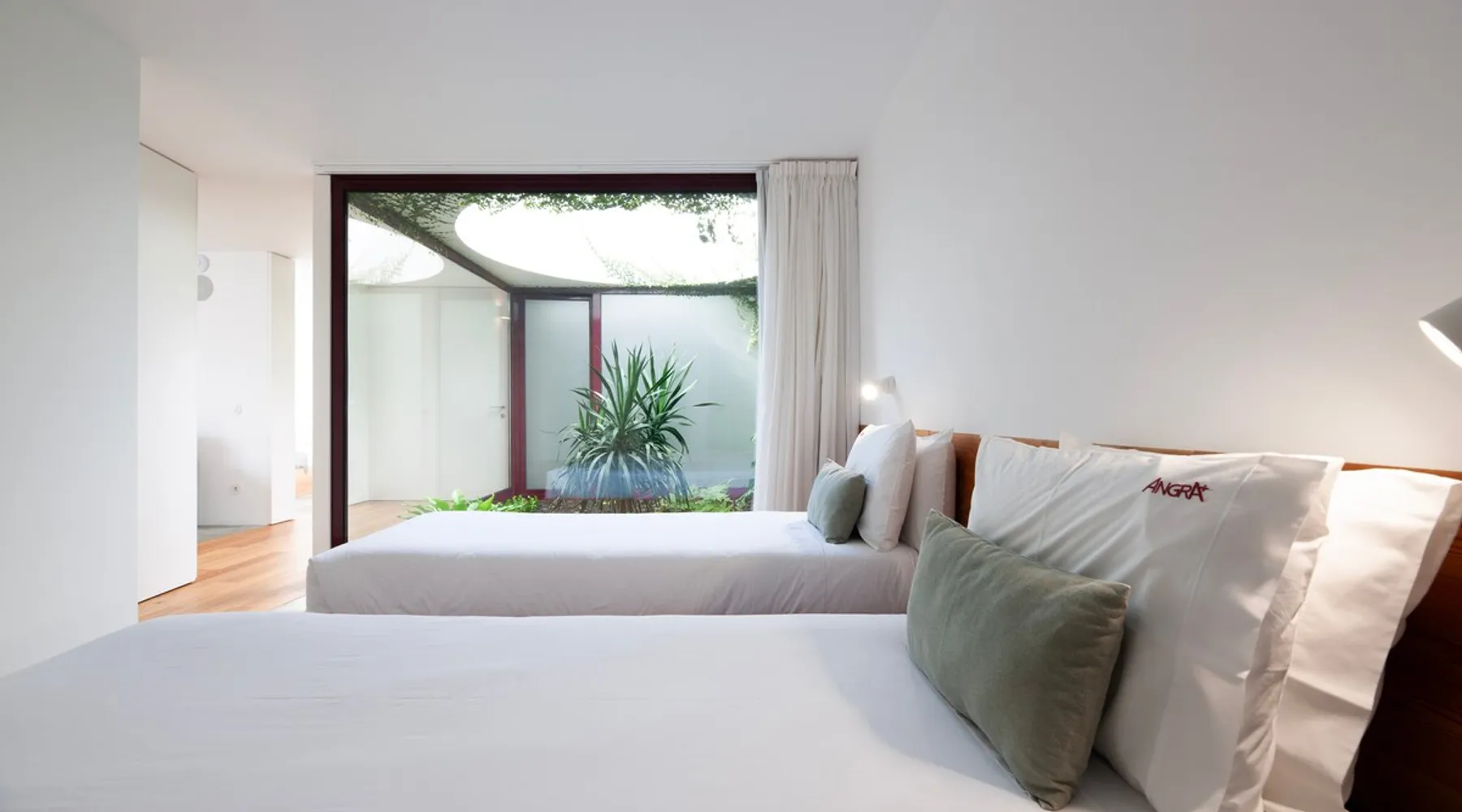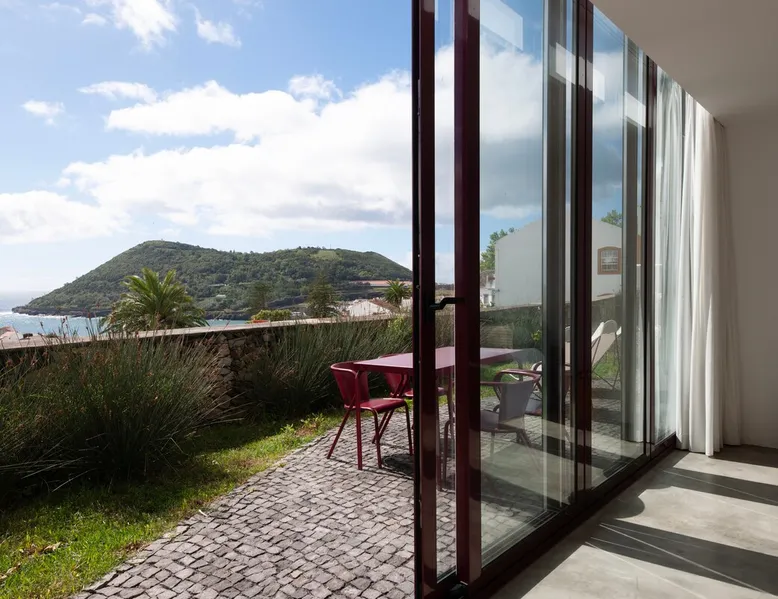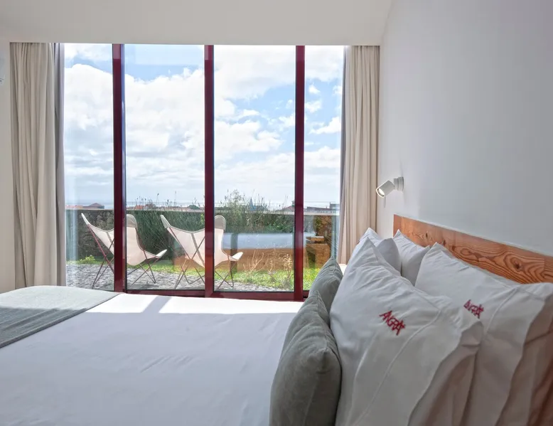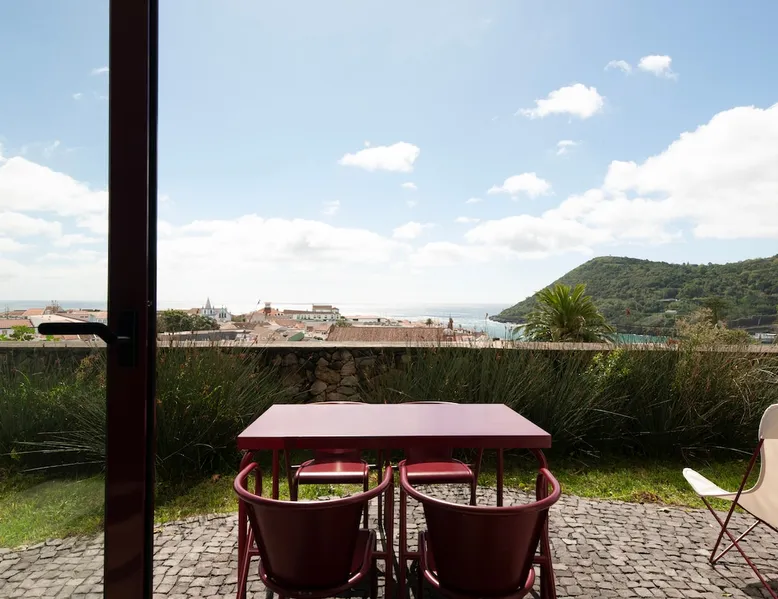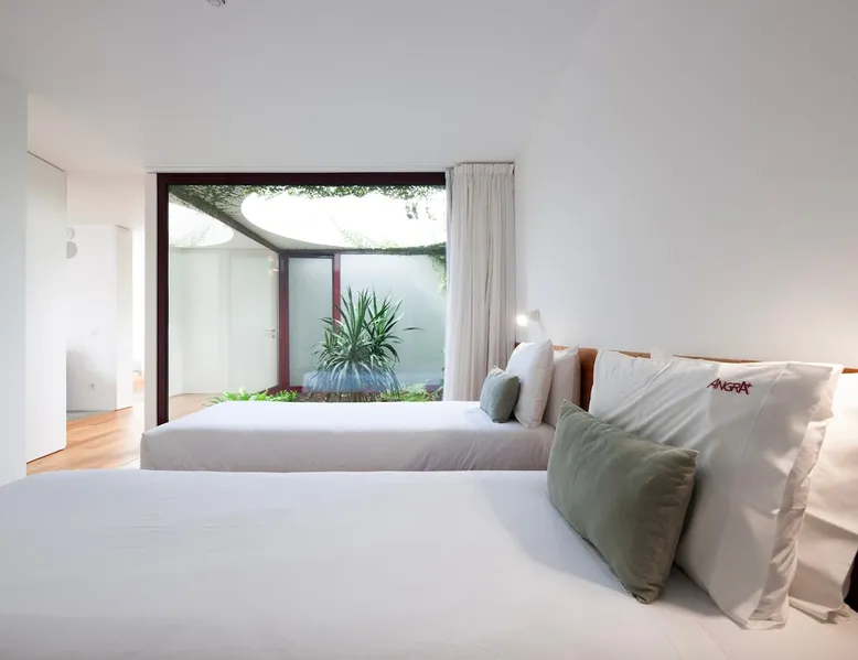 This Apartment 06 - Contemporary Apartment - is included in a complex of 6 apartments, AngrA+. It has 2 bedrooms and 1 living room, with a total area of about 77m2. It stands out from the glazed fronts about the city of Angra do Heroísmo and the sea. It has an interior garden and exclusive outdoor spaces with table and chairs to enjoy the panoramic landscape. They are located close to the pool area. For maximum occupancy of 5 people (1 double bed, 2 single beds and 1 sofa - bed). The space The AngrA + tourist complex emerged from the rehabilitation of a 16th century house in the Angra do Heroísmo city center, in the historic area and Unesco World Heritage Site, with a panoramic view of the city and the sea. It is the result of the functional articulation of a rehabilitated secular building, classified and protected by its architectural and cultural interest, with a new building overlooking the sea, with modern lines but fully integrated into the city's landscape. The garden, mostly composed of endemic plants, has the sky, the city and the Atlantic as a horizon (joint project ‘SCCS architects’ and ‘Baldios Arquitetos Landscape’). AngrA + has 6 apartments available, of various types: T0 (studio), T1 (living room and 1 bedroom) and T2 (living room and 2 bedrooms). All apartments have city and sea view, exclusive furnished outdoor space and are equipped with: LCD TV with cable channels | independent AC control | Wi-Fi | Bluetooth integrated sound system | Heated towels | Hair dryer | Iron | Bathrobe | Electric lockbox w/USB/220v indoor outlet | Equipped kitchenette w/induction hob, oven/microwave, refrigerator, dishwasher, toaster, kettle and capsule coffee machine | Indoor table and outdoor dining table. Common spaces include a garden, a heated outdoor pool, an outdoor terrace, and a lounge with library and fireplace. Guest access All guests of the AngrA + complex have access to the common spaces, which include a garden, a heated outdoor pool, an outdoor terrace, a dining area with panoramic view, and a comfortable lounge with library and fireplace. Registration Details 1512023