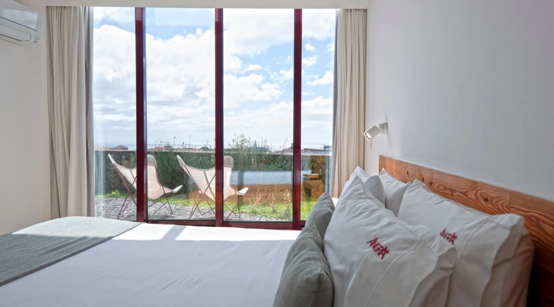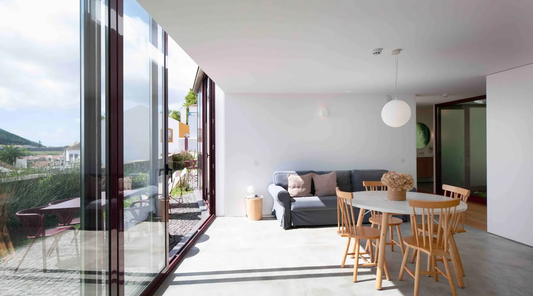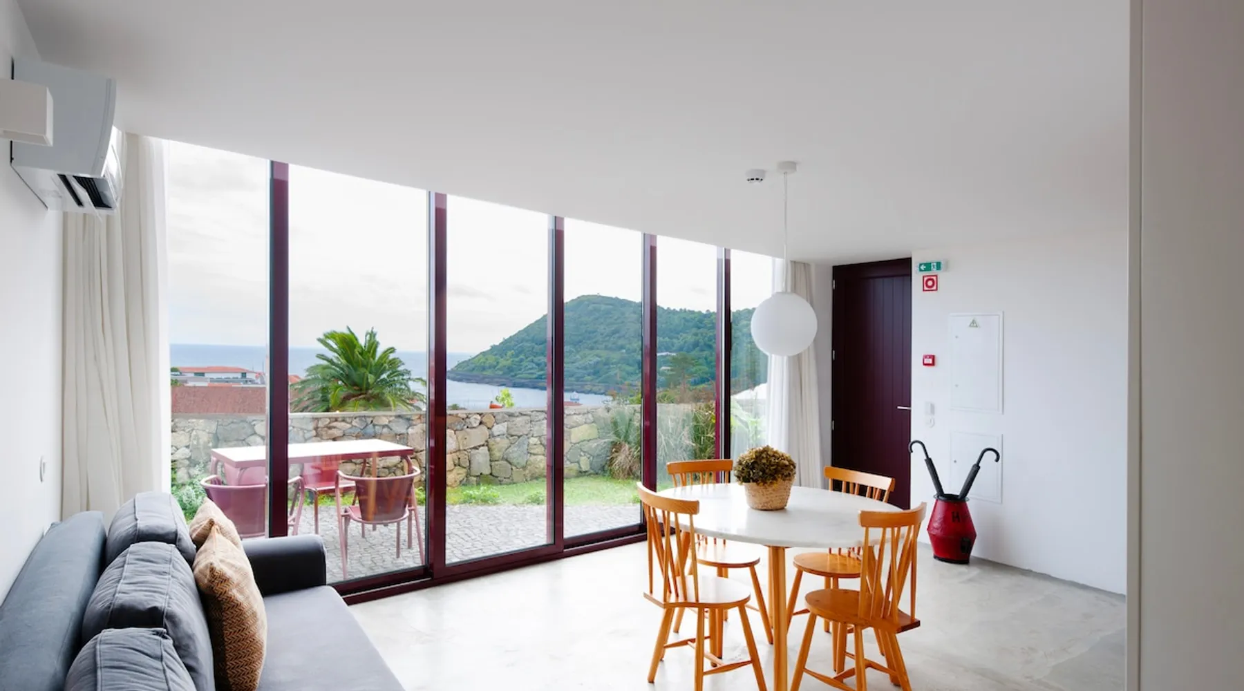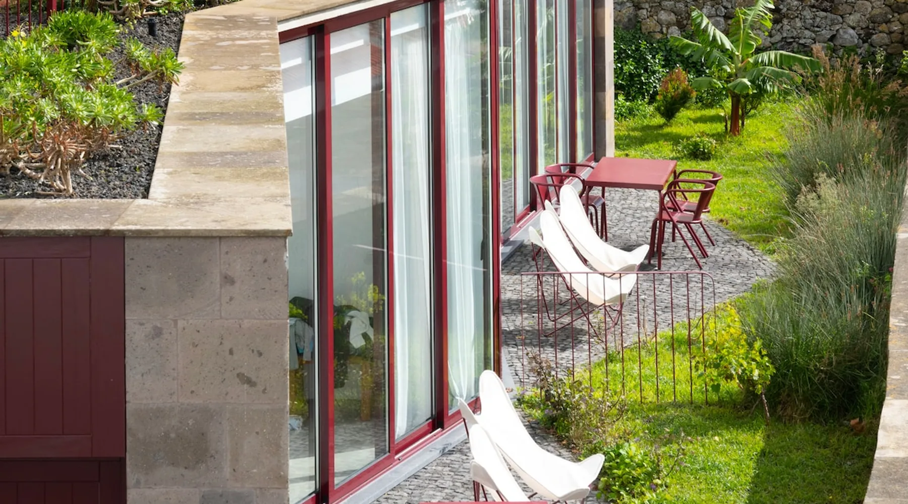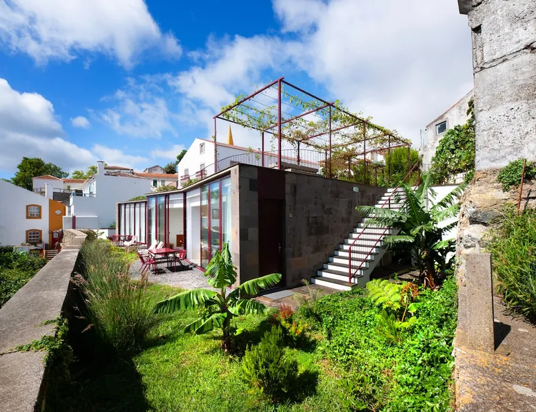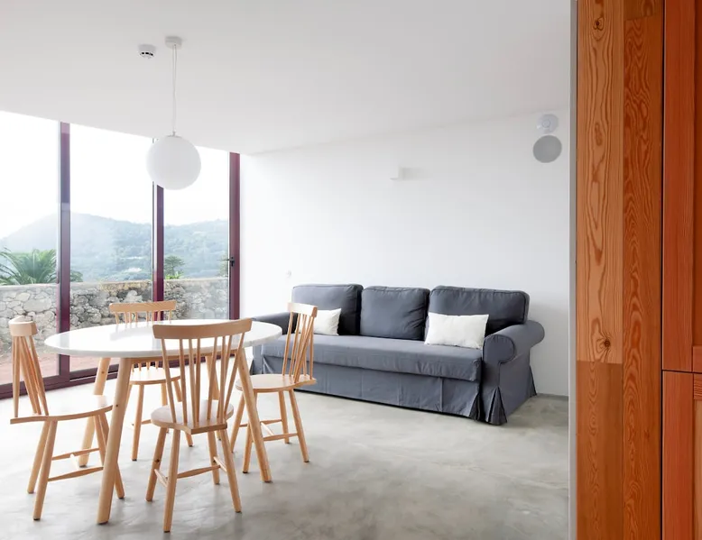 This Apartment 06 - Contemporary Apartment - is included in a complex of 6 apartments, AngrA+. It has 2 bedrooms and 1 living room, with a total area of about 77m2. It stands out from the glazed fronts about the city of Angra do Heroísmo and the sea. It has an interior garden and exclusive outdoor spaces with table and chairs to enjoy the panoramic landscape. They are located close to the pool area. For maximum occupancy of 5 people (1 double bed, 2 single beds and 1 sofa - bed). The space The AngrA + tourist complex emerged from the rehabilitation of a 16th century house in the Angra do Heroísmo city center, in the historic area and Unesco World Heritage Site, with a panoramic view of the city and the sea. It is the result of the functional articulation of a rehabilitated secular building, classified and protected by its architectural and cultural interest, with a new building overlooking the sea, with modern lines but fully integrated into the city's landscape. The garden, mostly composed of endemic plants, has the sky, the city and the Atlantic as a horizon (joint project ‘SCCS architects’ and ‘Baldios Arquitetos Landscape’). AngrA + has 6 apartments available, of various types: T0 (studio), T1 (living room and 1 bedroom) and T2 (living room and 2 bedrooms). All apartments have city and sea view, exclusive furnished outdoor space and are equipped with: LCD TV with cable channels | independent AC control | Wi-Fi | Bluetooth integrated sound system | Heated towels | Hair dryer | Iron | Bathrobe | Electric lockbox w/USB/220v indoor outlet | Equipped kitchenette w/induction hob, oven/microwave, refrigerator, dishwasher, toaster, kettle and capsule coffee machine | Indoor table and outdoor dining table. Common spaces include a garden, a heated outdoor pool, an outdoor terrace, and a lounge with library and fireplace. Guest access All guests of the AngrA + complex have access to the common spaces, which include a garden, a heated outdoor pool, an outdoor terrace, a dining area with panoramic view, and a comfortable lounge with library and fireplace. Registration Details 1512023