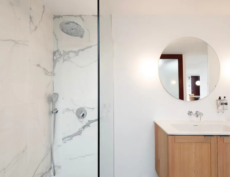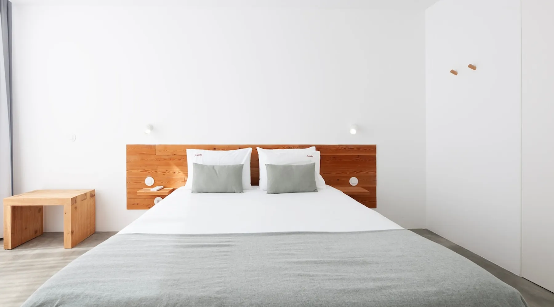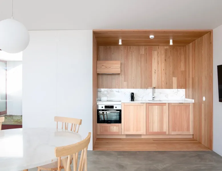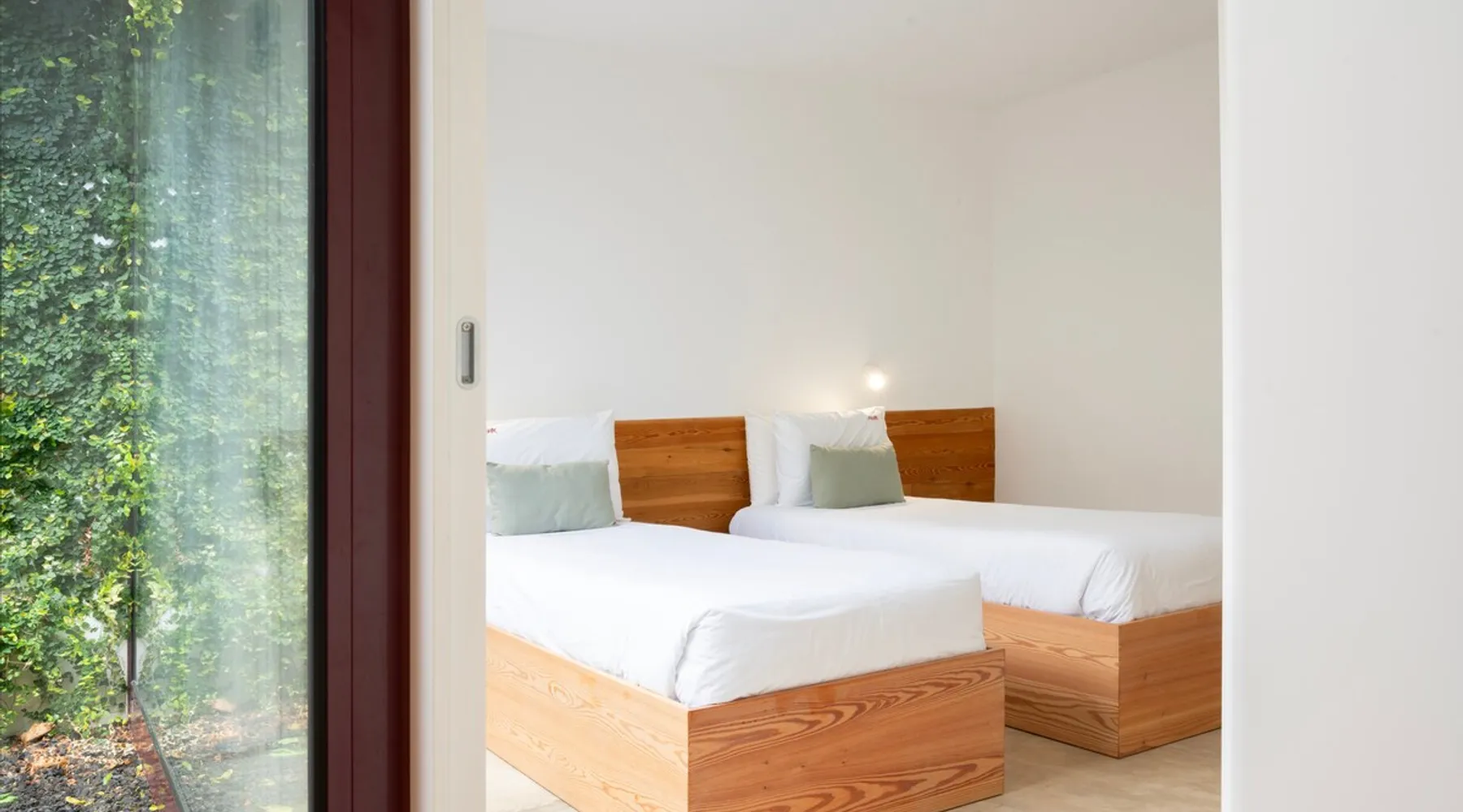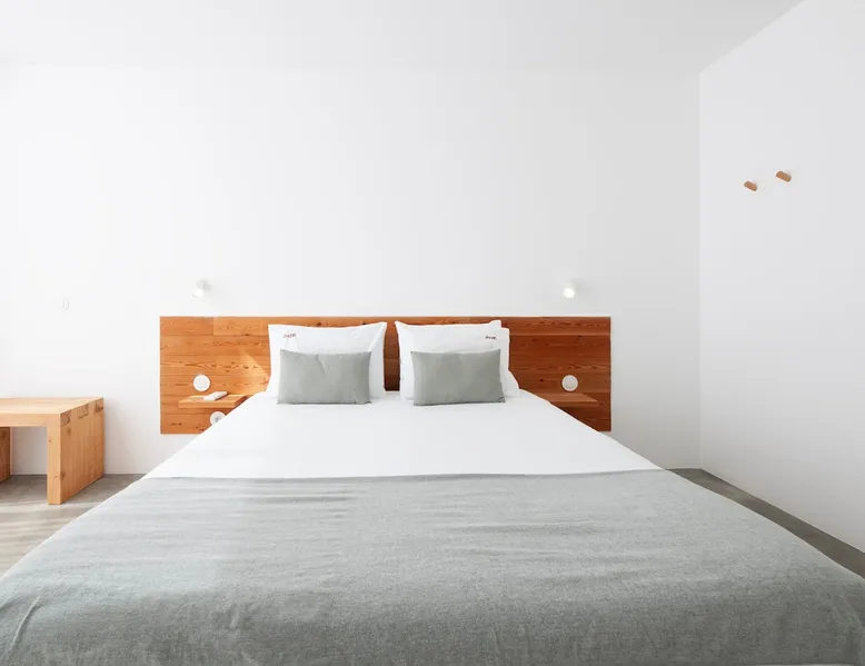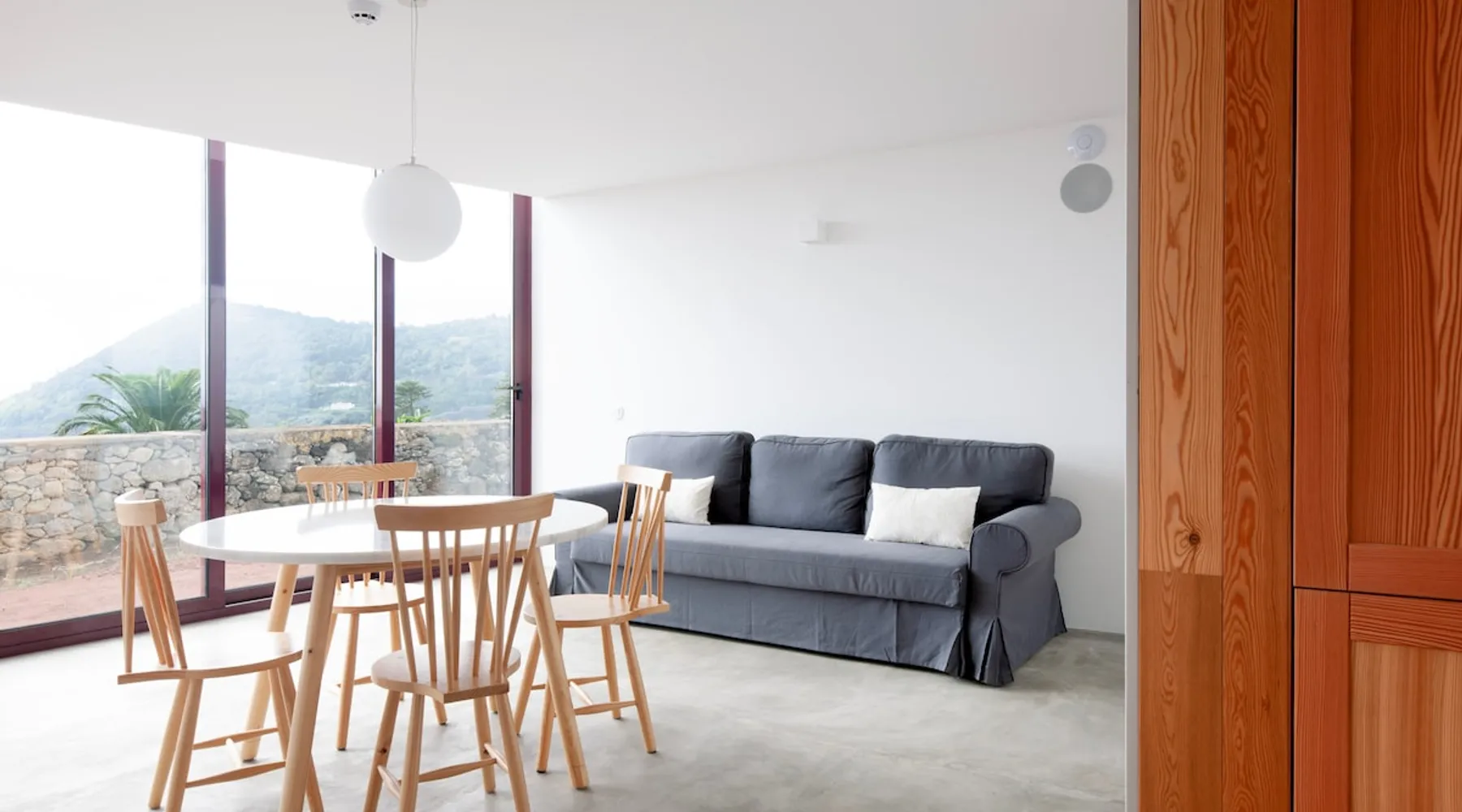 This Apartment 06 - Contemporary Apartment - is included in a complex of 6 apartments, AngrA+. It has 2 bedrooms and 1 living room, with a total area of about 77m2. It stands out from the glazed fronts about the city of Angra do Heroísmo and the sea. It has an interior garden and exclusive outdoor spaces with table and chairs to enjoy the panoramic landscape. They are located close to the pool area. For maximum occupancy of 5 people (1 double bed, 2 single beds and 1 sofa - bed). The space The AngrA + tourist complex emerged from the rehabilitation of a 16th century house in the Angra do Heroísmo city center, in the historic area and Unesco World Heritage Site, with a panoramic view of the city and the sea. It is the result of the functional articulation of a rehabilitated secular building, classified and protected by its architectural and cultural interest, with a new building overlooking the sea, with modern lines but fully integrated into the city's landscape. The garden, mostly composed of endemic plants, has the sky, the city and the Atlantic as a horizon (joint project ‘SCCS architects’ and ‘Baldios Arquitetos Landscape’). AngrA + has 6 apartments available, of various types: T0 (studio), T1 (living room and 1 bedroom) and T2 (living room and 2 bedrooms). All apartments have city and sea view, exclusive furnished outdoor space and are equipped with: LCD TV with cable channels | independent AC control | Wi-Fi | Bluetooth integrated sound system | Heated towels | Hair dryer | Iron | Bathrobe | Electric lockbox w/USB/220v indoor outlet | Equipped kitchenette w/induction hob, oven/microwave, refrigerator, dishwasher, toaster, kettle and capsule coffee machine | Indoor table and outdoor dining table. Common spaces include a garden, a heated outdoor pool, an outdoor terrace, and a lounge with library and fireplace. Guest access All guests of the AngrA + complex have access to the common spaces, which include a garden, a heated outdoor pool, an outdoor terrace, a dining area with panoramic view, and a comfortable lounge with library and fireplace. Registration Details 1512023
