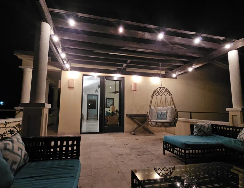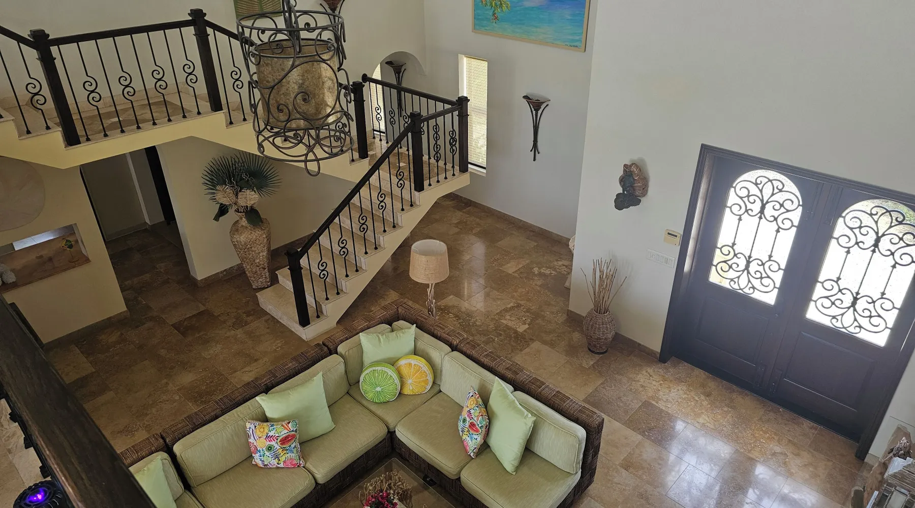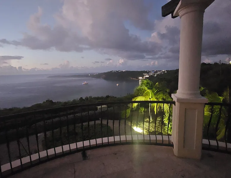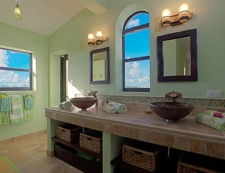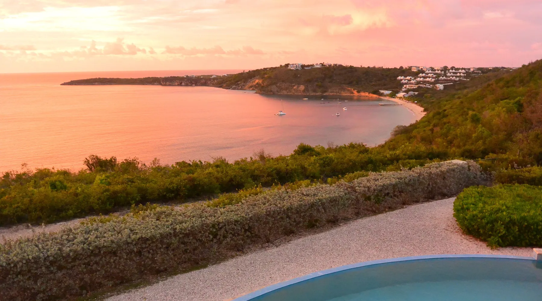 Oceana, Anguilla offers tranquility, romance, and casually elegant tropical living. The villa's open design maximizes sea views and ocean breezes, inviting you to experience a private vacation retreat. Set on a breezy hillside overlooking picturesque Crocus Bay, this bright and airy villa provides sweeping ocean vistas from one of the highest points on Anguilla. Villa Oceana offers one of the most unique views on the island - world famous Little Bay, Sandy Island, and Flat Cap peninsula, which shelters Crocus harbor. The villa's central location is ideally situated between the high-end resorts and restaurants of the West End and Shoal Bay East, one of the Caribbean's best white-sand beaches. Built as two levels on almost one acre of land, the design allows for views of the ocean from almost every room, as well as the lush green valley of Anguilla and distant hills of St. Martin. The interior and exterior living spaces total over 5,000 square feet. Oceana's great room leads out to an expansive, arched, tiled patio and deck. The outdoor terrace features covered dining al fresco and a dramatic 12' x 30' curved infinity-edge heated pool. Unique natural travertine floors seamlessly unite the indoor and outdoor living spaces. The main level features a spacious living area with tropical contemporary furnishings and entertainment center, fully-equipped kitchen featuring granite countertops and Viking appliances, a separate dining area, and an air-conditioned king master suite with en suite bathroom, including both a walk-in stone shower and open-air outdoor shower. The upper level includes the second air-conditioned master king bedroom/bathroom suite, furnished with an inviting four-poster bed and both indoor and al fresco showers. The bedroom opens out to a scenic private balcony and pergola, overlooking Crocus beach. The bi-level floorplan also includes a mezzanine with queen sofa sleeper that leads out to a large verandah and lounging area perfect for relaxing and viewing spectacular sunsets. Beautifully furnished with tropical style and comfort, and fully equipped with everything you might need, Oceana provides a serene and inviting ambience, heightened by breathtaking views. A perfect setting for barefoot elegance! Keywords: private, secluded, tranquil, open-air, luxurious, pool, infinity, view, hillside, modern, new, picturesque, chic, tropical, elegant, large, oceanview, sunset, sophisticated, affordable, romantic, honeymoon, balcony