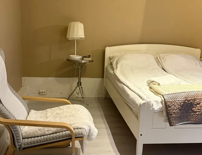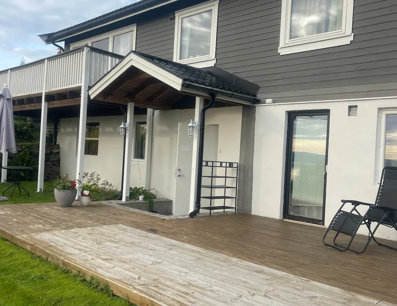 From this central accommodation, the whole group has easy access to whatever it may be. There are two bedrooms and the living room apartment in the heart of Gjøvik, Lillehammer and Hamar. The location is family and child friendly, with nice opportunities in the forests and fields in the surrounding area. Extra person can be allowed with extra costs of NOK 300 per night on the first floor for guests downstairs. Welcome to this nice apartment with a nice view, no TV, cable, internet available. I can make Albanian baking at best The space The apartment is on the first floor, of a semi-detached house of 80 sqm. Includes a large bedroom with a built-in wardrobe, with a lovely view of Lake Mjøsa. As well as a bedroom with wardrobe and 150 cm bed. There is a sofa in the living room, and if necessary, some extra person can be booked for extra people. Kitchen contains dishwasher, microwave and fridge as well as all kitchen equipment. Bathroom has a shower, a toilet and a washing machine. Large and great living room with view, sofa, living room table, TV and dining table with six chairs to enjoy all meals with good company. Guest access Here, only the first floor of the house is used with its own entrance, separated from the second floor where we live. There is parking at the property. Other things to note There is a fireplace inside with wood. If they want extra wood, they can buy extra wood when booking. Price varies: pita, kiffle, kringler...