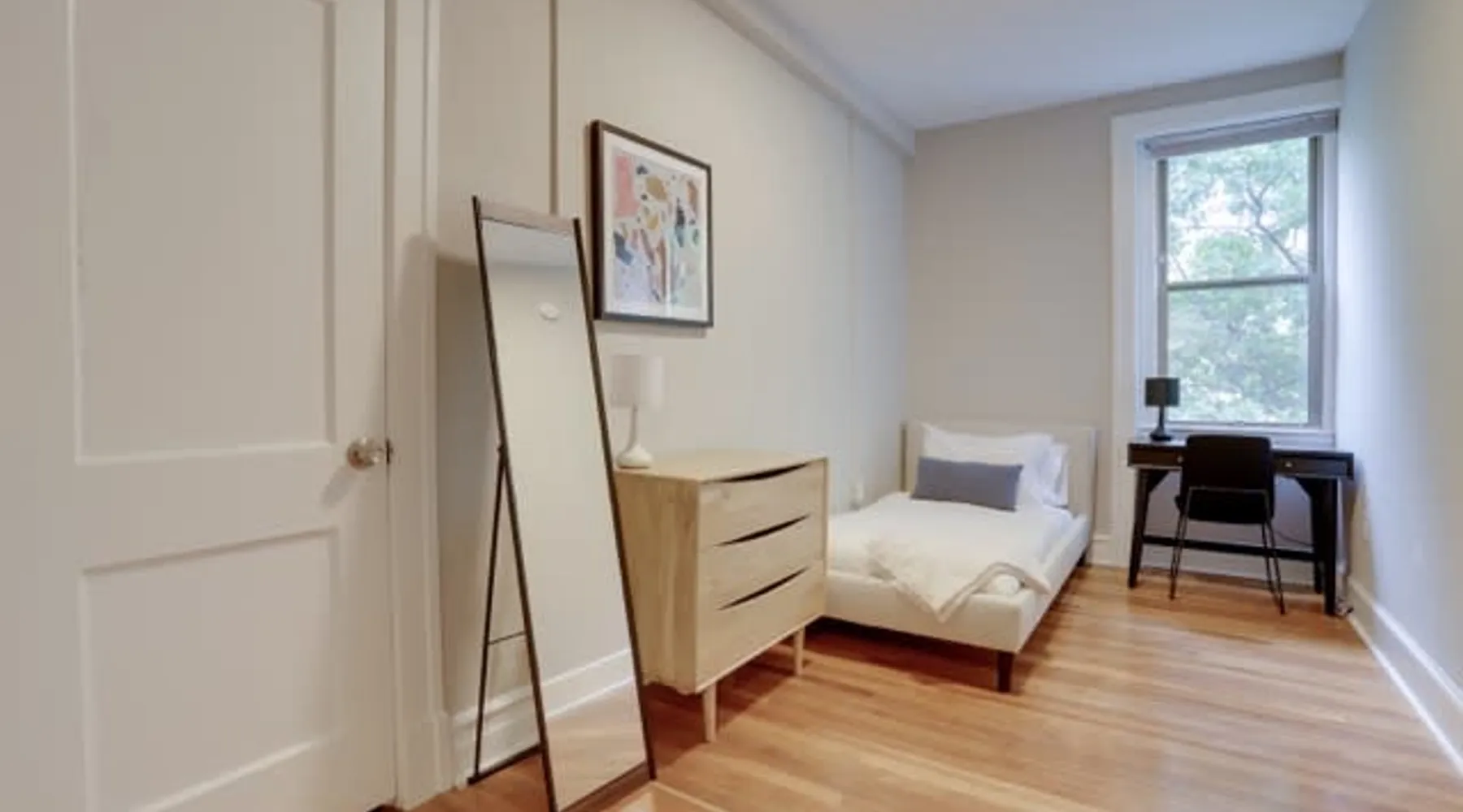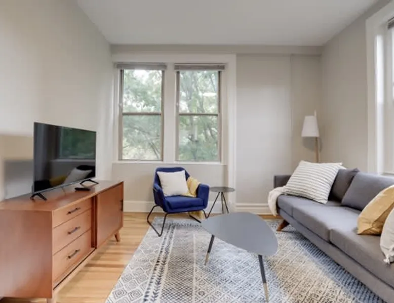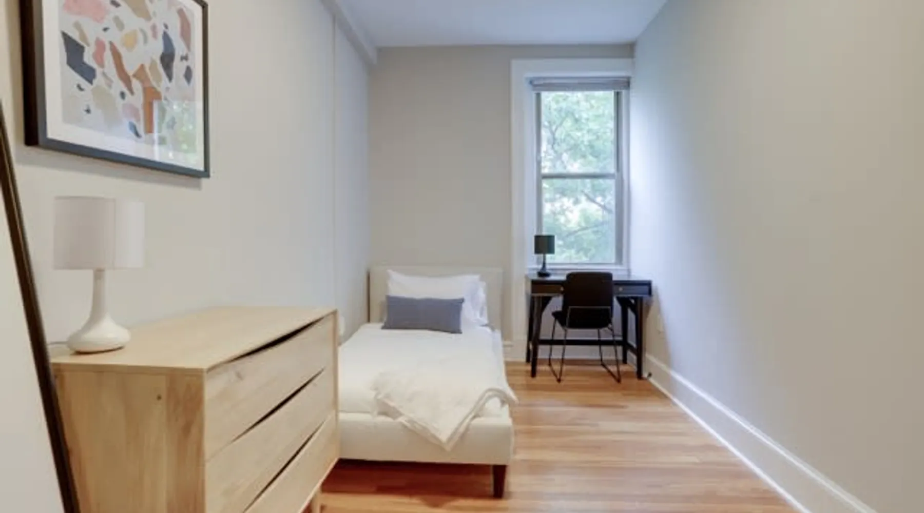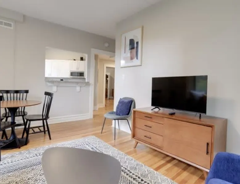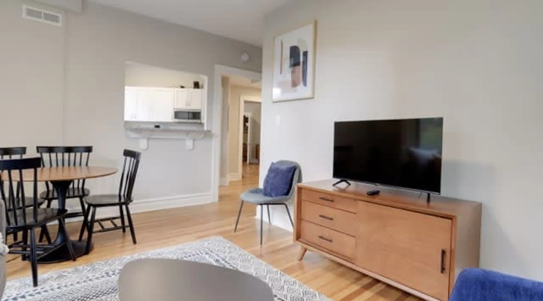 Welcome to this newly renovated & furnished 3-bedroom, 1-bathroom home at The Muriel. This spacious first-floor apartment home has one queen sized bed and two twin sized beds. Each bedroom has its own desk. You also have the option of converting one of the king size beds into two twin size beds. If you'd like to move forward with this conversion, please make this request 48 hours prior to your arrival. This property requires a $45 application fee and a signed lease. The space In the living room, enjoy some time watching your favorite movies on the Smart TV. If you need to work, our home is equipped with a desk, chair, and light in each bedroom. Enjoy a home cooked meal, or takeout, at the dining room table. The kitchen is equipped with all the necessary appliances and more. There’s a gas stove, fridge, dishwasher, microwave, disposal, and a Keurig Coffee Maker. The kitchen also has cooking items including pots and pans, baking tray and cooking utensils. There’s knives, a cutting board, strainer and mixing bowls. There’s 4 sets of plates, glasses, mugs, bowls, and flatware. The home has a vacuum, broom, swiffer and ironing board. Each floor has a shared washer and dryer which are coin-operated (or download the app to go cashless). Guest access Our home is contactless, seamless and easy self check in. A code will be set for you and shared before your arrival. Other things to note At Sojourn, we’re committed to making your stay seamless, serene, and comfortable. Every one of our homes is thoughtfully appointed with everything you need to settle in and relax—from high-speed Wi-Fi and smart TVs to fully stocked kitchens and freshly laundered linens, Frette towels and luxurious Lather brand soaps. Our team is also just a message away, with thoughtful communication from the moment you book to the day you depart. Before your stay, we kindly ask you to review the following important information to ensure a smooth arrival and peaceful experience: Guest Verification with Truvi To protect our homes and enhance your peace of mind, Sojourn partners with Truvi, a third-party guest verification and damage assurance platform. You’ll receive a direct message from Truvi to complete your verification and purchase a damage waiver. Please complete this step before check-in. Visit Truvi’s website to learn more. Property Access & Maintenance From time to time, our homes may require preventative or emergency maintenance or during long term stays, a showing to prospective tenants. While we make every effort to avoid any interruptions to your stay, Sojourn reserves the right to access the property after providing 24 hours’ written notice. Your comfort is our priority, and we appreciate your understanding. Baby Gear (Optional Add-On) Traveling with little ones? We’re happy to offer Pack & Plays and high chairs for your convenience. These items must be reserved in advance and are available for a $25 rental fee per item. Parking Information This property has on site parking for a fee and should be reserved in advance. Please inquire with the Sojourn team to make a parking reservation. Use of any designated parking options is at your own risk. Sojourn and the property owner are not responsible for loss, theft, damage, or injury involving your vehicle or its contents. We cannot guarantee the safety or security of any parking location and disclaim liability for any incidents. Thank you for your understanding. Pet Policy This pet-friendly residence welcomes your four-legged companions. While most booking platforms include the pet fee upon reservation, any exclusions will be invoiced at $15 per night for stays up to 30 days and $450 total for stays 31 days or longer. Kindly inform us of any pets joining your stay so we may update your reservation accordingly. Laundry There is shared app or coin operated laundry on each floor. Let us know if you have any questions—we’re here to help make your stay serene & unforgettable.