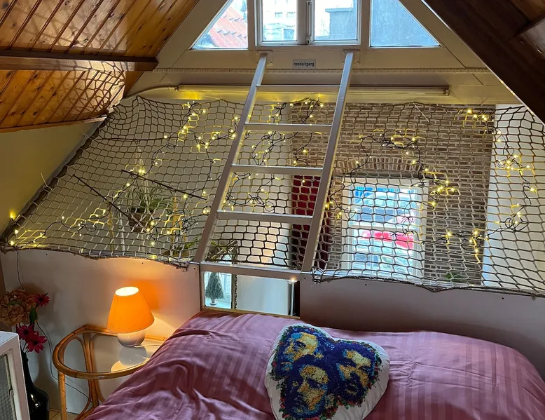 Welcome to the enchanting Delfshaven, where history and modern comfort go hand in hand! Get ready for an unforgettable overnight stay in our atmospheric ART-INN residence in Delfshaven, where art and living come together. With its centuries-old canals, picturesque facades and winding streets, Delfshaven exudes a unique atmosphere that will immediately captivate you. The space Galerie Petit Delfshaven is an art gallery and ART-INN residence where art and living come together. The historic house has been transformed into an art gallery on the ground floor. This section is normally open to the public but during the rental of the Airbnb, it is part of the fully rented space. On the second floor, you can relax in a charming space with kitchen, sofa and dining table of modern Rotterdam. The view on one side of the Euromast and the Pelgrimvaderskerk on the other side makes the space not boring at all. An open bedroom overlooking the living room is located on the top floor. A spacious feeling in a narrow building full of art. Guest access Guests have access to the entire property. Other things to note The property is not suitable for guests with walking difficulties due to the many stairs. Pets aren't allowed. NOTE: The toilet and shower are located on the lower floor (due to the historical layout of the building) Registration details 0599 4FE1 C751 B47B 4AEC