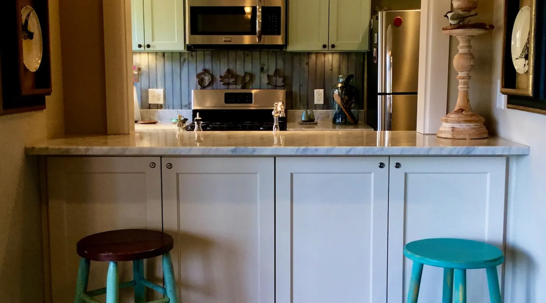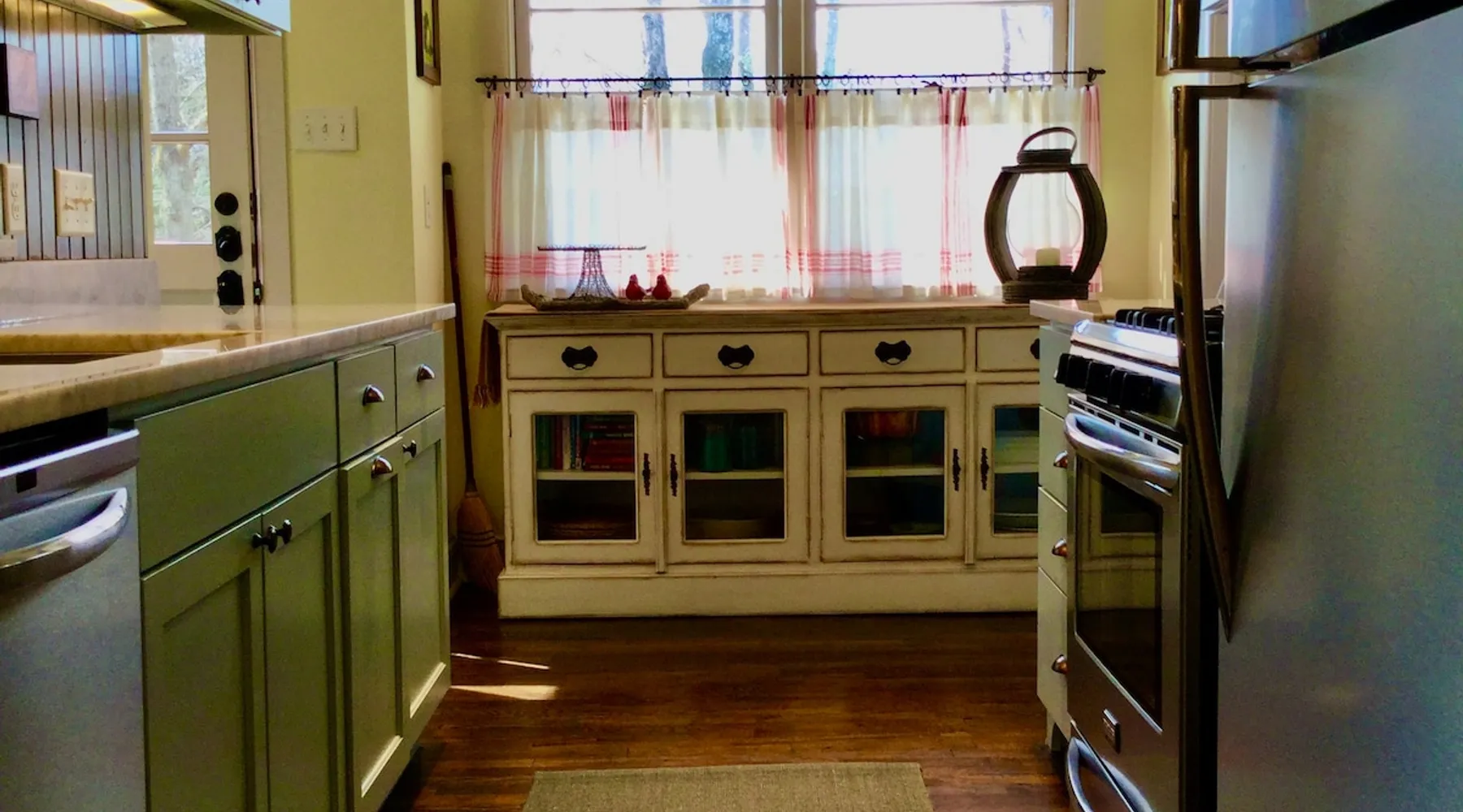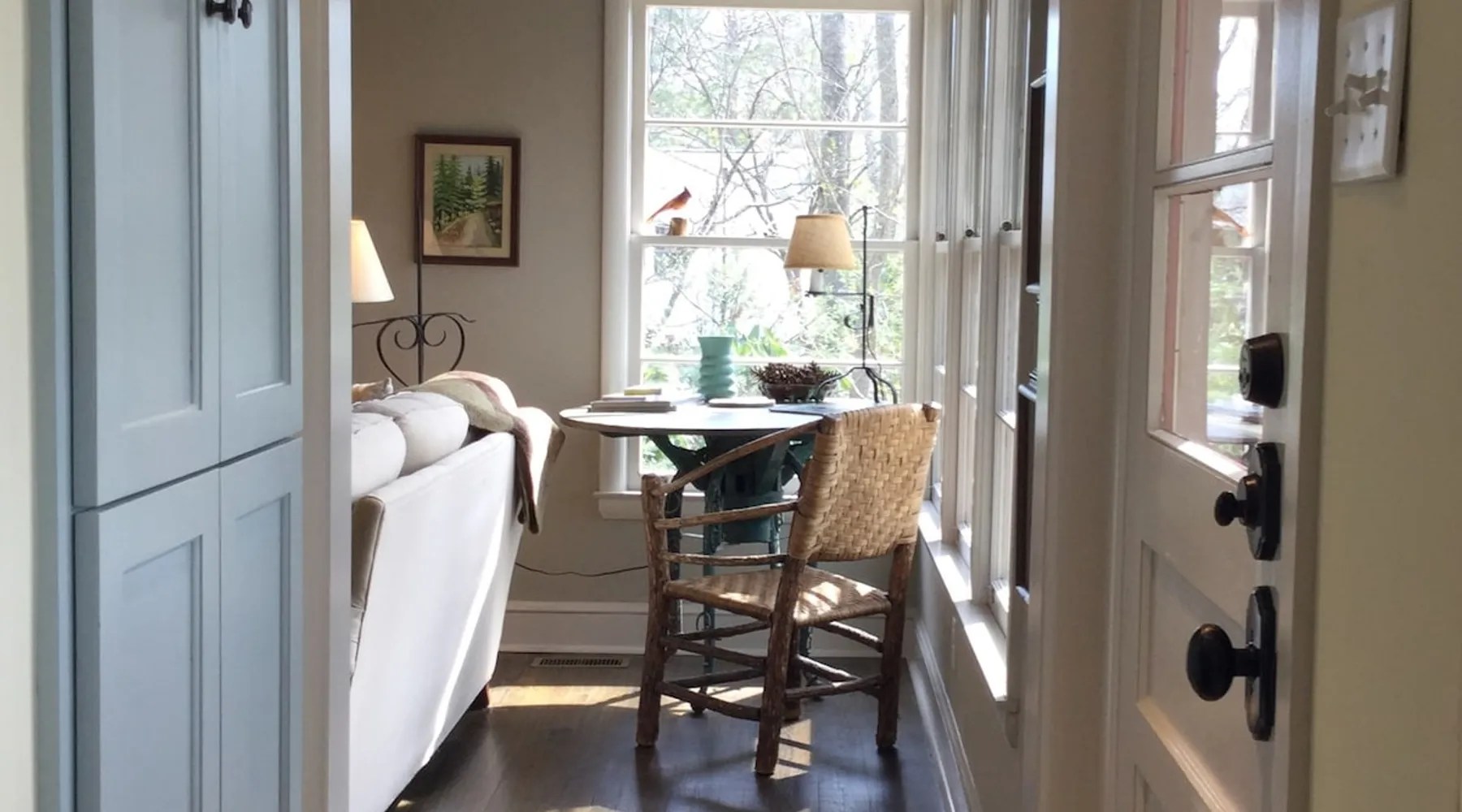 Thoughtfully renovated 2 bedroom, 1 bath cottage has everything you need for a comfortable vacation. Located on a quiet street in the heart of Black Mountain. Beautifully furnished and decorated with an eclectic mix of old and new, the cottage has all the amenities of a modern home. Cardinal’s View Cottage is within easy walking distance to Lake Tomahawk or shopping and dining in downtown Black Mountain. Easy access to I-40, and a short 15 minute drive to Asheville.