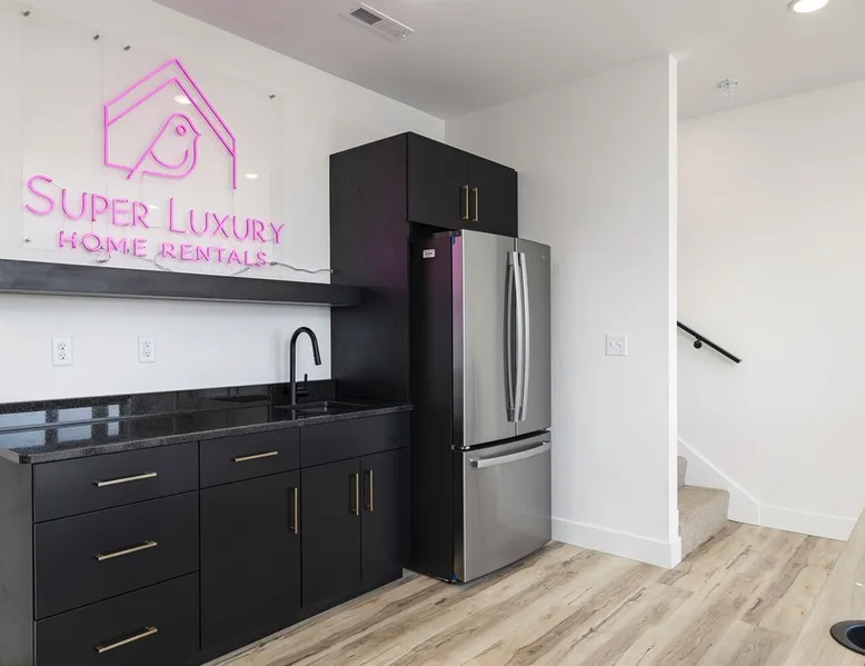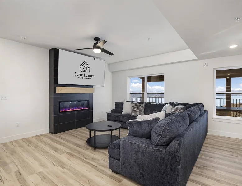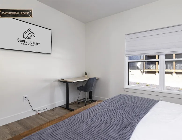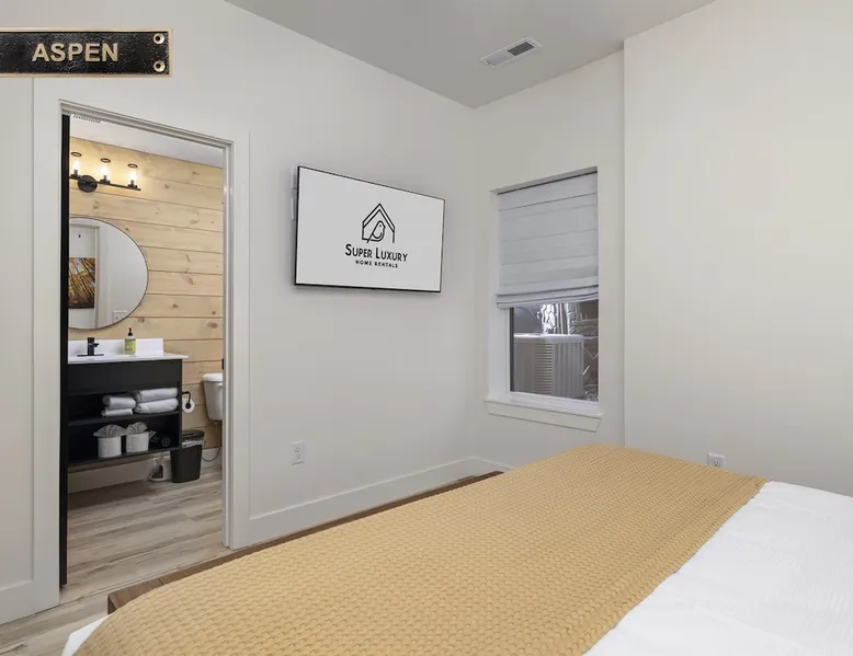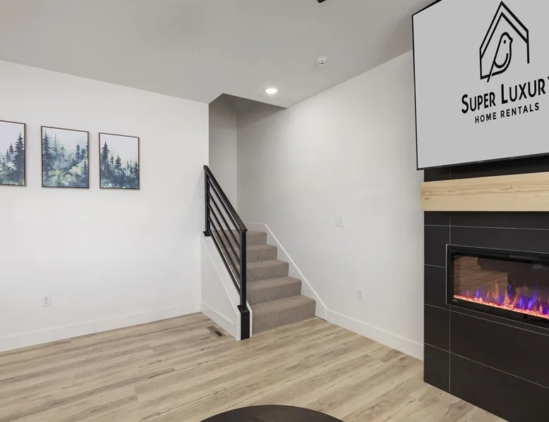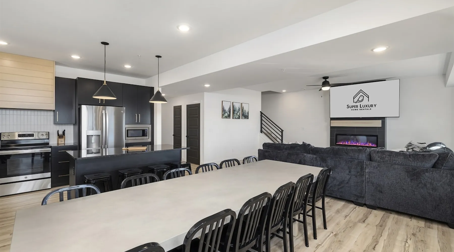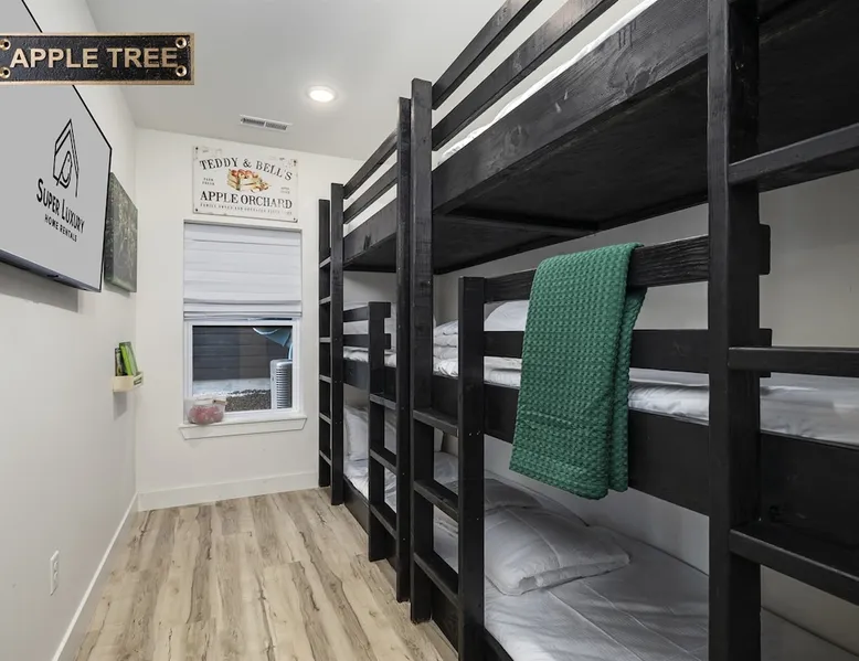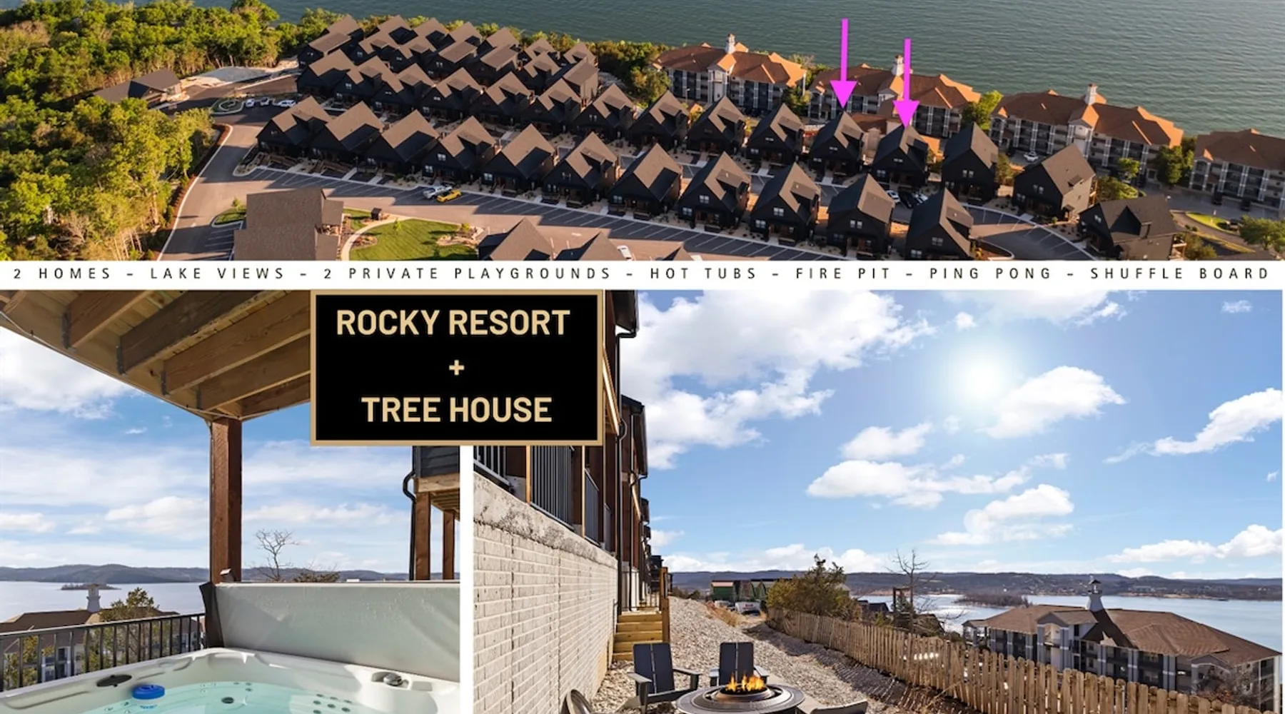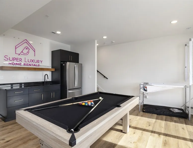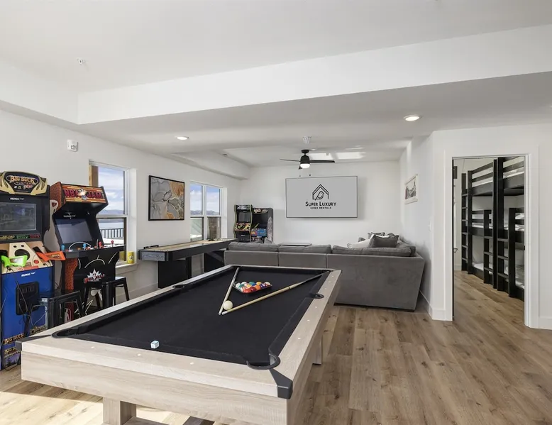 This is a combined listing of two homes that are side-by-side: Rocky Resort + Tree House by Super Luxury Home Rentals. These homes were constructed in September 2023. They are finished with high end furnishing from Restoration Hardware, Thuma, Samsung, Steelcase, Solo Stove, and more. Each home is fully stocked and equipped to feed, entertain, and comfortably accommodate 28 people in standard beds (two combined homes can accommodate 56 people in total). The space Rocky Resort is a 7 bedrooms and 7 bathrooms that sleeps up to 28 guests in standard beds. Main Level - Front porch is up 6 stairs and has a table with two chairs next to the lighted entrance - Primary bedroom #1 has an en-suite bathroom, a Thuma king bed, a 50" Samsung TV, and a sit-to-stand Steelcase desk - Primary bedroom #2 has en-suite bathroom with access from the living room, a Thuma king bed, and a 50" Samsung TV - Fully stocked kitchen is equipped with all the kitchen utensils, supplies, and appliances to make feeding 28 people a breeze - Dining area has a 10' Restoration Hardware table seating 12 and counter height bar stool seating 9 - Spacious living room with large sectional couch, fireplace, 85" Samsung TV - Out the sliding glass door to the patio there is a Weber grill, 14' of dining tables seating 16, and and outdoor sofa to enjoy the views Basement Level - Family & Game Room has a 7' pool table, shuffle board, classic arcades, Infinity Board Game table, and 85" Samsung TV - Off the family room there is a wet bar with everything needed to enjoy a libation or two - Second outdoor patio has private hot tub accommodating 6, & a Joola ping pong table - Primary bedroom #3 with en-suite bathroom, a Thuma king bed, and a 50" Samsung TV - Primary bedroom #4 with en-suite bathroom, a Thuma king bed, and a 50" Samsung TV - Bedroom #5 with the small bunk room with two triple bunk twin beds sleeping 6 and a 50" Samsung TV Garden Level - Down the steps from the patio there is Solo Stove fire pit surrounded by Adirondack chairs and a private playground. Upper Level - Primary bedroom #6 has en-suite bathroom, has a Thuma king bed, a sit-to-stand Steelcase desk, and 50" Samsung TV - Bedroom #7 is our large bunk room with 4 triple bunk twin beds sleeping 12 and a 50" Samsung TV with en-suite bathroom with tub & shower - In the hall there is a laundry closet with a stackable front load Samsung washer and dryer Additional Home Amenities - Kid friendly including Pack n Play, High Chair, & Kids Dishware - Driveway Parking for up to 3 vehicles - Thoughtful sleep environments: ceiling fans in all bedrooms, white noise machines, and portable fans provided - High speed internet (1Gbps) Tree House is a 7 bedrooms and 7 bathrooms that sleeps up to 28 guests in standard beds. Main Level - Front porch is up 6 stairs and has a table with two chairs next to the lighted entrance - Primary bedroom #1 has an en-suite bathroom, a Thuma king bed, a 50" Samsung TV, and a sit-to-stand Steelcase desk - Primary bedroom #2 has en-suite bathroom with access from the living room, a Thuma king bed, and a 50" Samsung TV - Fully stocked kitchen is equipped with all the kitchen utensils, supplies, and appliances to make feeding 28 people a breeze - Dining area has a 10' Restoration Hardware table seating 12 and counter height bar stool seating 9 - Spacious living room with large sectional couch, fireplace, 85" Samsung TV - Out the sliding glass door to the patio there is a Weber grill, 14' of dining tables seating 16, and and outdoor sofa to enjoy the views Basement Level - Family & Game Room has a 7' pool table, shuffle board, classic arcades, Infinity Board Game table, and 85" Samsung TV - Off the family room there is a wet bar with everything needed to enjoy a libation or two - Second outdoor patio has private hot tub accommodating 6, & a Joola ping pong table - Primary bedroom #3 with en-suite bathroom, a Thuma king bed, and a 50" Samsung TV - Primary bedroom #4 with en-suite bathroom, a Thuma king bed, and a 50" Samsung TV - Bedroom #5 with the small bunk room with two triple bunk twin beds sleeping 6 and a 50" Samsung TV Garden Level - Down the steps from the patio there is Solo Stove fire pit surrounded by Adirondack chairs and a private playground. Upper Level - Primary bedroom #6 has en-suite bathroom, has a Thuma king bed, a sit-to-stand Steelcase desk, and 50" Samsung TV - Bedroom #7 is our large bunk room with 4 triple bunk twin beds sleeping 12 and a 50" Samsung TV with en-suite bathroom with tub & shower - In the hall there is a laundry closet with a stackable front load Samsung washer and dryer Additional Home Amenities - Kid friendly including Pack n Play, High Chair, & Kids Dishware - Driveway Parking for up to 3 vehicles - Thoughtful sleep environments: ceiling fans in all bedrooms, white noise machines, and portable fans provided - High speed internet (1Gbps) You must be at least 21 years old to book. Legal agreements and security deposit are managed using an approved API-connected software provider called OwnerRez. The security deposit is a temporary hold on the credit card in case of any damages incurred during the stay. This property allows pets up to 2 dogs with a fee. The maximum guest count must be adhered which is 28 for this property. Guest access The entire home, rear yard, and parking area are included in this rental as well as access to the shared community amenities: indoor pool & outdoor pool. Please make yourself at home and enjoy our property.