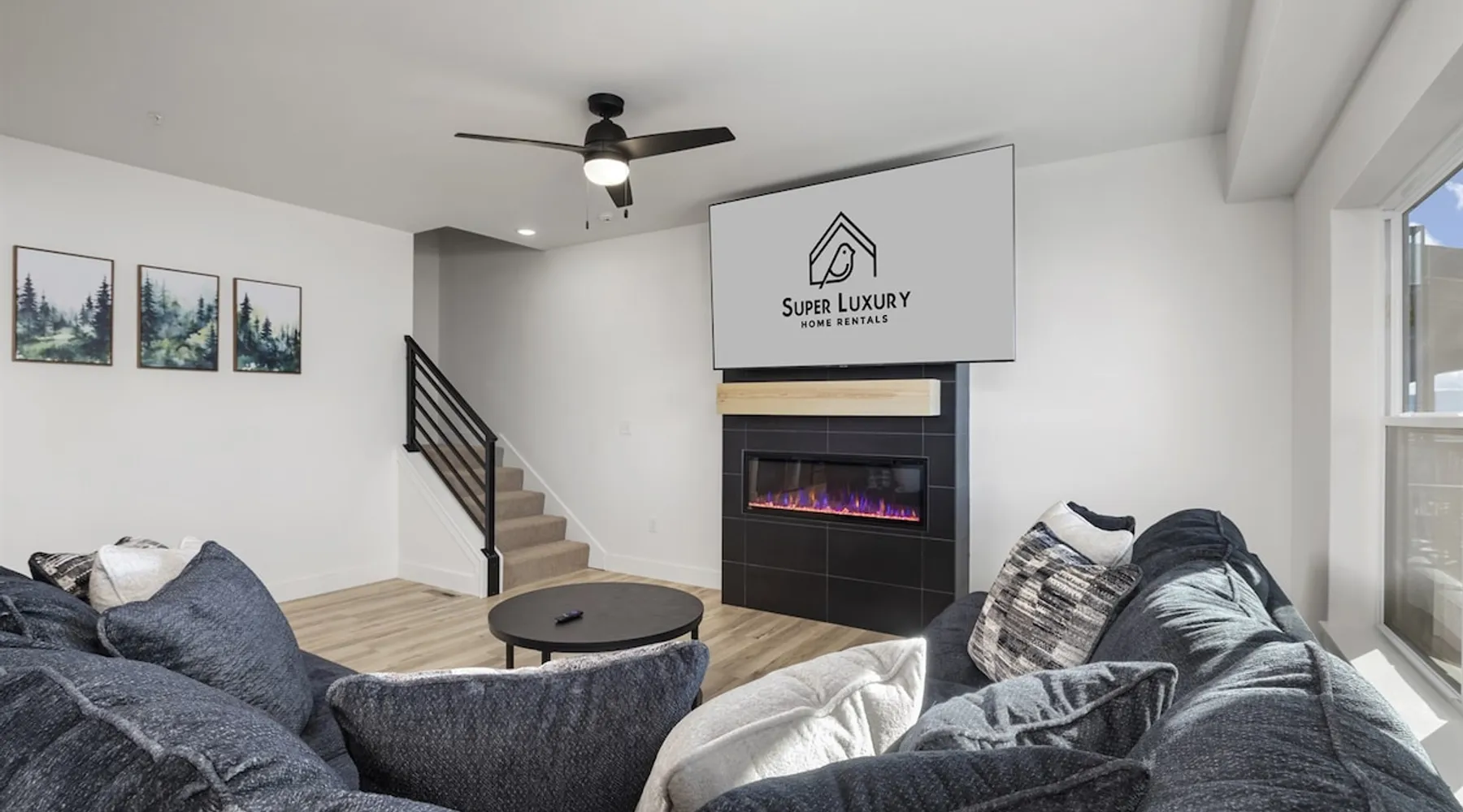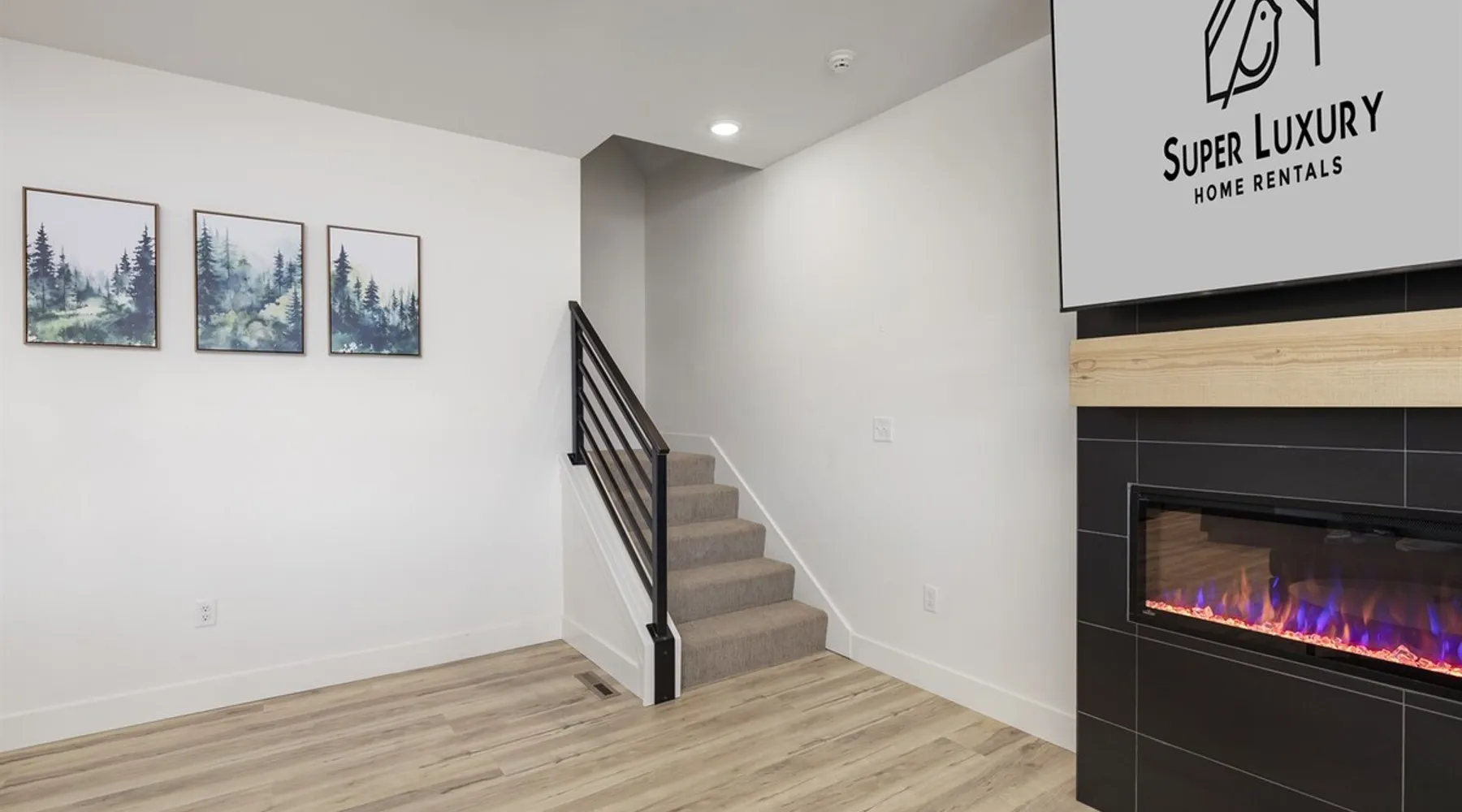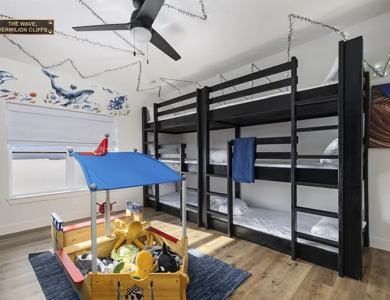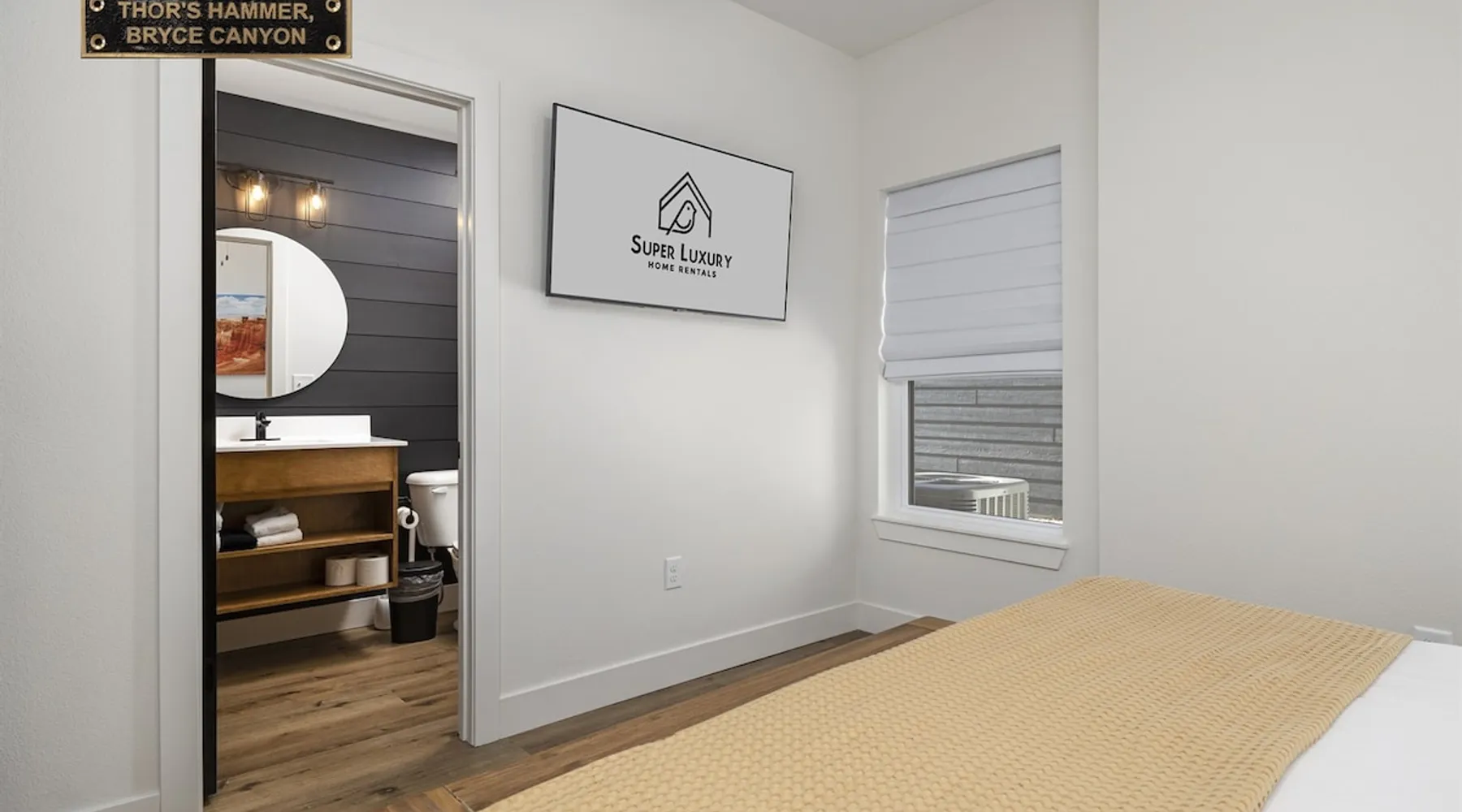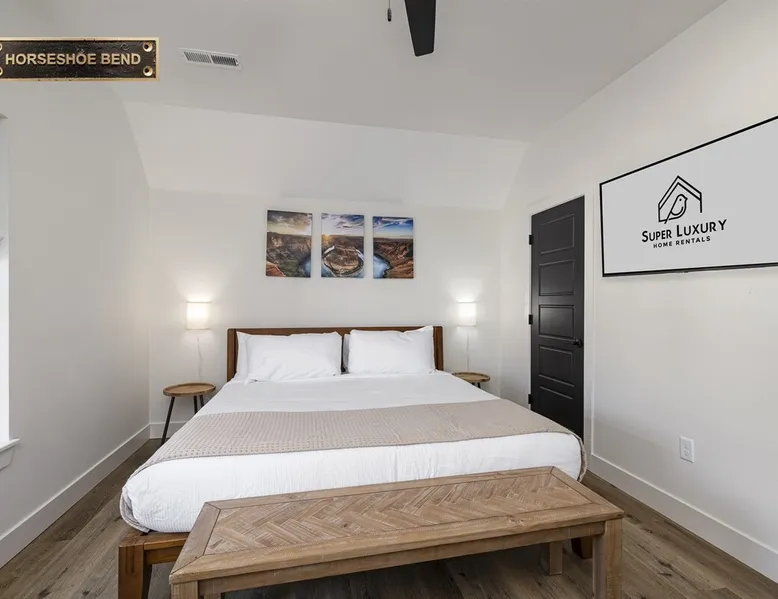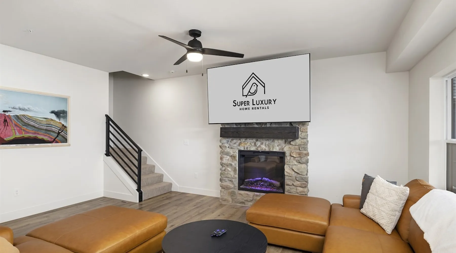 This is a combined listing of two homes that are side-by-side: Rocky Resort + Tree House by Super Luxury Home Rentals. These homes were constructed in September 2023. They are finished with high end furnishing from Restoration Hardware, Thuma, Samsung, Steelcase, Solo Stove, and more. Each home is fully stocked and equipped to feed, entertain, and comfortably accommodate 28 people in standard beds (two combined homes can accommodate 56 people in total). The space Rocky Resort is a 7 bedrooms and 7 bathrooms that sleeps up to 28 guests in standard beds. Main Level - Front porch is up 6 stairs and has a table with two chairs next to the lighted entrance - Primary bedroom #1 has an en-suite bathroom, a Thuma king bed, a 50" Samsung TV, and a sit-to-stand Steelcase desk - Primary bedroom #2 has en-suite bathroom with access from the living room, a Thuma king bed, and a 50" Samsung TV - Fully stocked kitchen is equipped with all the kitchen utensils, supplies, and appliances to make feeding 28 people a breeze - Dining area has a 10' Restoration Hardware table seating 12 and counter height bar stool seating 9 - Spacious living room with large sectional couch, fireplace, 85" Samsung TV - Out the sliding glass door to the patio there is a Weber grill, 14' of dining tables seating 16, and and outdoor sofa to enjoy the views Basement Level - Family & Game Room has a 7' pool table, shuffle board, classic arcades, Infinity Board Game table, and 85" Samsung TV - Off the family room there is a wet bar with everything needed to enjoy a libation or two - Second outdoor patio has private hot tub accommodating 6, & a Joola ping pong table - Primary bedroom #3 with en-suite bathroom, a Thuma king bed, and a 50" Samsung TV - Primary bedroom #4 with en-suite bathroom, a Thuma king bed, and a 50" Samsung TV - Bedroom #5 with the small bunk room with two triple bunk twin beds sleeping 6 and a 50" Samsung TV Garden Level - Down the steps from the patio there is Solo Stove fire pit surrounded by Adirondack chairs and a private playground. Upper Level - Primary bedroom #6 has en-suite bathroom, has a Thuma king bed, a sit-to-stand Steelcase desk, and 50" Samsung TV - Bedroom #7 is our large bunk room with 4 triple bunk twin beds sleeping 12 and a 50" Samsung TV with en-suite bathroom with tub & shower - In the hall there is a laundry closet with a stackable front load Samsung washer and dryer Additional Home Amenities - Kid friendly including Pack n Play, High Chair, & Kids Dishware - Driveway Parking for up to 3 vehicles - Thoughtful sleep environments: ceiling fans in all bedrooms, white noise machines, and portable fans provided - High speed internet (1Gbps) Tree House is a 7 bedrooms and 7 bathrooms that sleeps up to 28 guests in standard beds. Main Level - Front porch is up 6 stairs and has a table with two chairs next to the lighted entrance - Primary bedroom #1 has an en-suite bathroom, a Thuma king bed, a 50" Samsung TV, and a sit-to-stand Steelcase desk - Primary bedroom #2 has en-suite bathroom with access from the living room, a Thuma king bed, and a 50" Samsung TV - Fully stocked kitchen is equipped with all the kitchen utensils, supplies, and appliances to make feeding 28 people a breeze - Dining area has a 10' Restoration Hardware table seating 12 and counter height bar stool seating 9 - Spacious living room with large sectional couch, fireplace, 85" Samsung TV - Out the sliding glass door to the patio there is a Weber grill, 14' of dining tables seating 16, and and outdoor sofa to enjoy the views Basement Level - Family & Game Room has a 7' pool table, shuffle board, classic arcades, Infinity Board Game table, and 85" Samsung TV - Off the family room there is a wet bar with everything needed to enjoy a libation or two - Second outdoor patio has private hot tub accommodating 6, & a Joola ping pong table - Primary bedroom #3 with en-suite bathroom, a Thuma king bed, and a 50" Samsung TV - Primary bedroom #4 with en-suite bathroom, a Thuma king bed, and a 50" Samsung TV - Bedroom #5 with the small bunk room with two triple bunk twin beds sleeping 6 and a 50" Samsung TV Garden Level - Down the steps from the patio there is Solo Stove fire pit surrounded by Adirondack chairs and a private playground. Upper Level - Primary bedroom #6 has en-suite bathroom, has a Thuma king bed, a sit-to-stand Steelcase desk, and 50" Samsung TV - Bedroom #7 is our large bunk room with 4 triple bunk twin beds sleeping 12 and a 50" Samsung TV with en-suite bathroom with tub & shower - In the hall there is a laundry closet with a stackable front load Samsung washer and dryer Additional Home Amenities - Kid friendly including Pack n Play, High Chair, & Kids Dishware - Driveway Parking for up to 3 vehicles - Thoughtful sleep environments: ceiling fans in all bedrooms, white noise machines, and portable fans provided - High speed internet (1Gbps) You must be at least 21 years old to book. Legal agreements and security deposit are managed using an approved API-connected software provider called OwnerRez. The security deposit is a temporary hold on the credit card in case of any damages incurred during the stay. This property allows pets up to 2 dogs with a fee. The maximum guest count must be adhered which is 28 for this property. Guest access The entire home, rear yard, and parking area are included in this rental as well as access to the shared community amenities: indoor pool & outdoor pool. Please make yourself at home and enjoy our property.