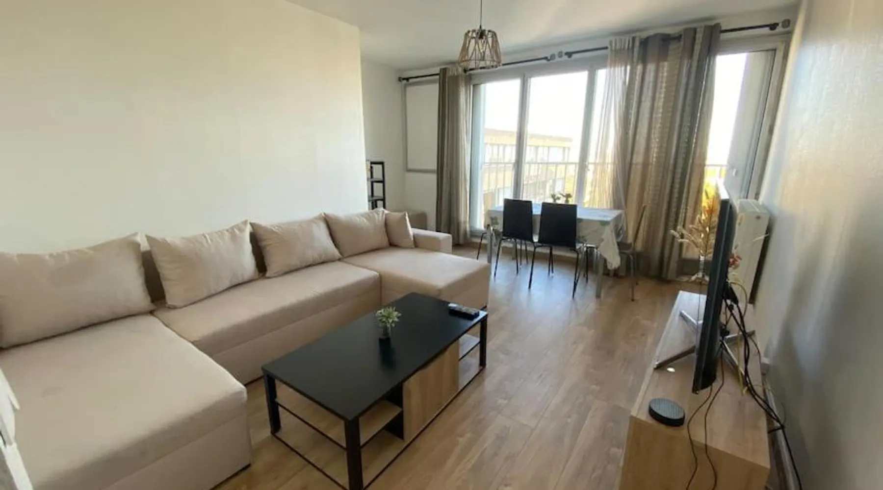 Appartement - Nanterre is located in Nanterre, just 5.6 miles from Parc des Princes and 6.7 miles from Musée de l'Orangerie. The property is around 4.6 miles from Palais des Congrès de Paris, 5.4 miles from Arc de Triomphe, and 5.4 miles from Eiffel Tower. Rodin Museum is 7.2 miles away and Gare Saint-Lazare is 7.6 miles from the apartment. With free Wifi, this 2-bedroom apartment offers a flat-screen TV, a washing machine, and a fully equipped kitchen with a dishwasher and oven. Towels and bed linen are offered in the apartment. The accommodation is non-smoking. Tuileries Garden is 7 miles from the apartment, while Orsay Museum is 7.1 miles from the property. The nearest airport is Paris - Orly Airport, 19 miles from Appartement - Nanterre. The well-fitted kitchen features a stovetop, a refrigerator, a dishwasher and kitchenware. The spacious apartment offers a washing machine, a tea and coffee maker, a wardrobe, a sofa and a flat-screen TV. The unit offers 2 beds.