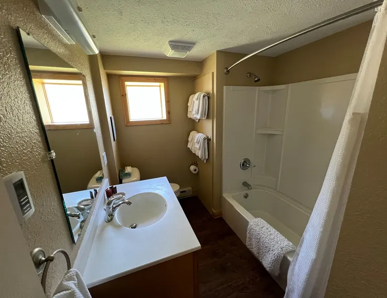 One bedroom suite w/queen bed and custom-made bedroom furniture. Living room w/full size sleeper sofa and full kitchen (includes range, refrigerator, coffeemaker, toaster & maple cabinetry). Private bathroom, air conditioning, WiFi, satellite TV. Sleeps 3 adults or 2 adults and 2 children. The space Welcome to Paradise! Located twenty minutes away from Tahquamenon Falls, Whitefish Point, and Great Lakes Shipwreck Museum. Our establishment hosts 8 family friendly suites equipped with kitchens and living areas with full size sleeper sofas. Tahquamenon Suites Lodging is conveniently located within walking distance of restaurants, gas stations, and a grocery store. We are open year round and have direct access to ATV and snowmobile trails. Enjoy our large outdoor space with picnic tables and charcoal grills (charcoal not provided). At this time, we are not pet friendly. We have coin operated guest laundry on site. Our contactless check in and check out makes traveling easy and convenient to arrive any time after 3pm. We do not have a staffed office on site, but are only a call or text message away!
