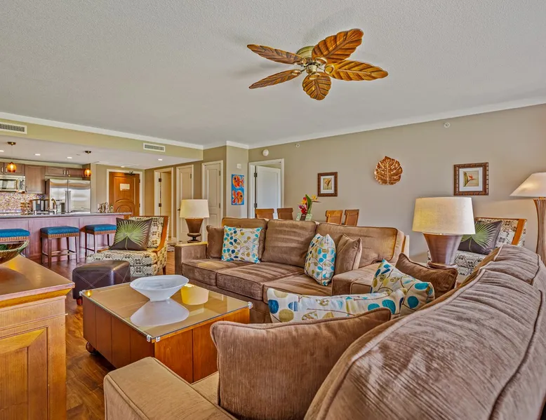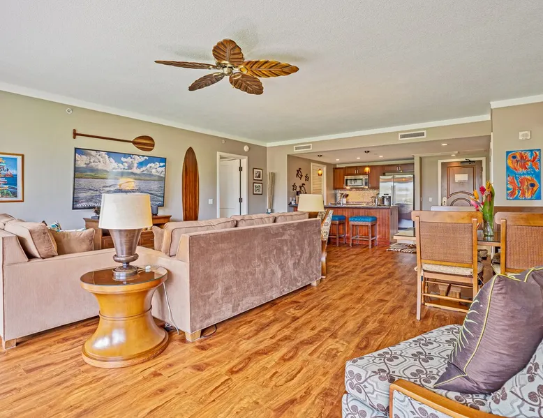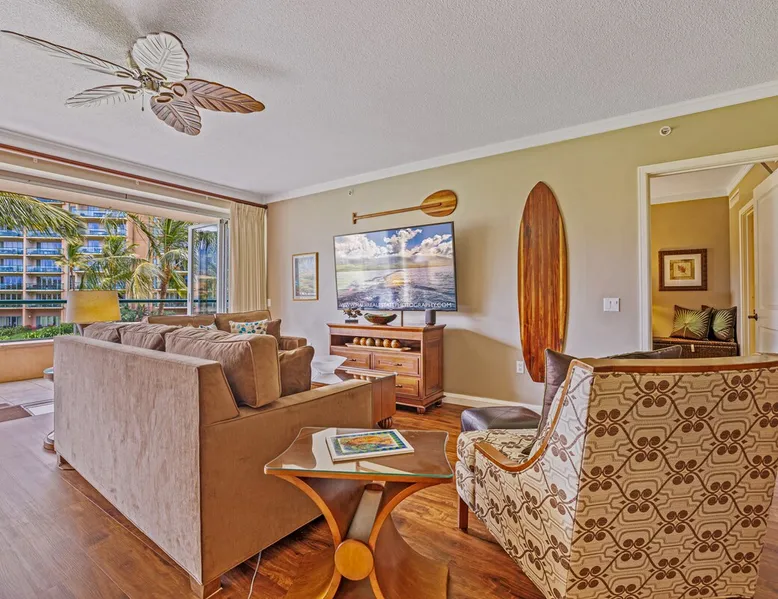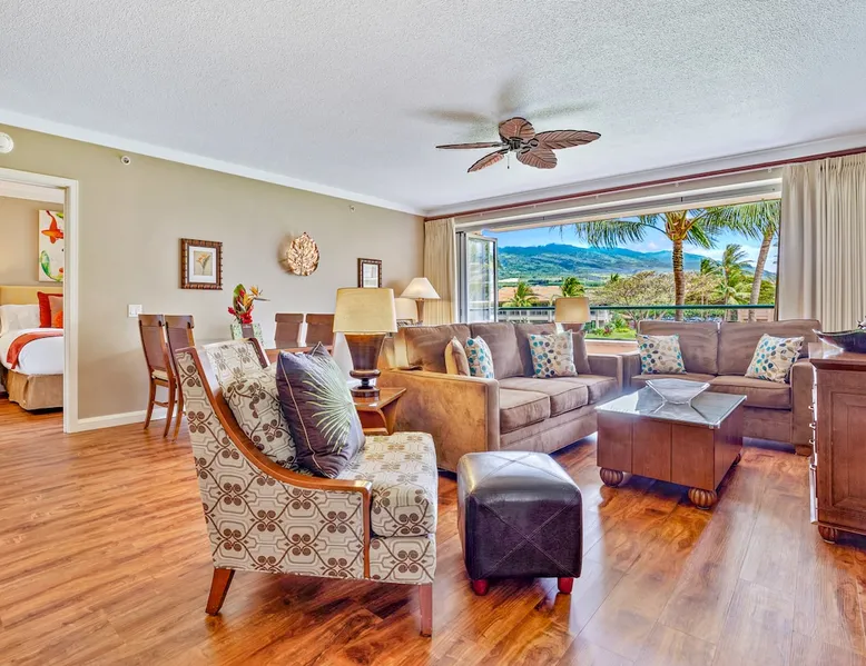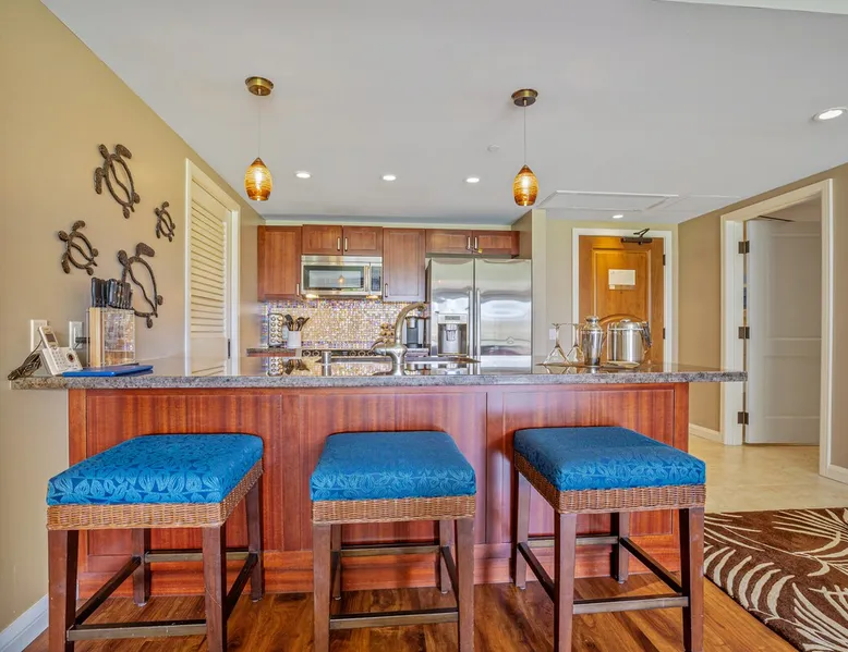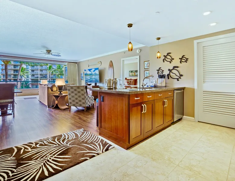 Hawaii Life presents the Royal Hawaiian of Honua Kai- Konea 204, our best value for a full mountain view, slight partial ocean view, 2bd.2ba. residence. Welcome Home to the Royal Hawaiian residence of Honua Kai- Konea #204, exclusively offered by the Stice Team of Hawaii Life Vacations. This warm and classically Hawaiian-decorated large two-bedroom (1,250 sq.ft w/ 250 sq.ft lanai) home is a unique offering at the resort. This home features sweeping panoramic views of the verdant Mauna Kahalawai (West Maui Mountains), frequent rainbow sightings, and a slight partial ocean view from the lanai, with no neighboring lanai oceanward. NOTE: Resort-wide exterior lanai and building painting to begin on the Konea tower July 2022 until Dec 2024. Power washing, painting, and scaffolding will be set up around the building. This unit's lanai has been completed and is fully accessible. The owners of this property love their winter escape to come enjoy the whales and all that Maui has to offer. Konea 204 is in spectacular condition with many custom touches throughout- brand new Acacia flooring ‘22, new furniture and appliances ‘21, and custom art pieces from around the state that bring vibrant color and warmth. Enjoy the sweet smell of the radiantly colored orange and white plumeria tree right outside the home as you gaze up at the lush mountain slopes of Mauna Kahalawai. In the other direction, you will find the partial ocean view overlooking Duke’s Beach House Restaurant and the island of Lanai. This balcony faces East, which makes for spectacular sunrises and a well-protected lanai area from the consistent prevailing trade winds. There is ample and comfortable seating in the living room area with two couches (one of them a pull-out sleeper sofa). This home away from home has all the comforts you would want with its well-equipped kitchen, ample beach gear, and gear for the little ones. Refined granite slabs, cherry cabinets, Bosch stainless steel appliances, porcelain tile, and lots of room to operate while making your favorite fish ceviche, or whatever you desire, while never losing sight of that gorgeous view. Owners and guests alike at Honua Kai can’t get enough of the open floor plans, which are further enhanced by a seamless transition between outdoor and indoor living areas through the glass Nanna wall doors. This property comfortably sleeps six, with a king bed in the two primary bedrooms and a pull-out sofa in the living room. The primary suites each have a very comfortable and large king bed, an adjoining ensuite bathroom with a walk-in shower, a soaking tub, and a large granite slab with two separate sinks. With advanced notice, one of the primary suites, the King Bed, can be split into two twins. Honua Kai is the preeminent resort in all of West Maui with its direct Hawaiian golden sand beachfront location, newer construction, pools, and unmatched amenities (On-site Spa, Dukes Beach House Restaurant, Aina Gourmet Market, Whalers General Store, etc). Honua Kai is at the center of all that West Maui has to offer- 5-star restaurants, championship golfing, and world-class beaches with unmatched natural surroundings. With Honua Kai's convenient West Maui location, you will not need to travel more than 20 minutes in any direction for a complete and memorable vacation experience. Please note that Maui Mayor Richard Bissen's Pending Legislation to phase out Apartment Zoned Vacation Rental properties does NOT apply to this property as it is Zoned Hotel. Hotel Zoned properties throughout Maui are not referenced in this legislation and thus are not under threat. TA-065-775-6160-01, GE-065-775-6160-01 There is a lockbox containing your house key We will email you the access codes prior to your arrival. Check in time is anytime after 3:00 PM Occasionally we accommodate checking in at other times, if you contact us Should you have any questions or concerns regarding your property please call your on island host. Each of our homes comes with a property manager. Should you need assistance please feel reach out to the home manager. Environmental Disclosure. Guest acknowledges that the State of Hawaii is exposed to environmental hazards including, but not limited to, tidal waves, hurricanes and floods. Please refer to the local phone book for information pertaining to evacuation procedures. In the event of an emergency, the State of Hawaii utilizes a warning alert system (emergency sirens are tested on the first working day of every month at 11:45 a.m.). Guest is responsible for using their best efforts to familiarize themselves with property, its location, and surroundings. Some of the properties are in a remote location. As such, what would be considered normal response time for public services in an urban area may not be available in this location, i.e., police, fire, and emergency services. Also, naturally dwelling animals, reptiles and fauna are different then might be encountered in an urban setting and some might be considered “pests” by some individuals, i.e., centipedes, geckos, roaches, spiders, rodents, termites, mosquitoes, chickens and coqui frogs. You should be prepared to accept such inconveniences or discomfort as a normal and necessary aspect of renting a home in an area with strong rural character. Also, Guest acknowledges this is a binding contract and cannot be released from the contractual obligations upon arrival. Construction and Neighborhood Disclosure The guest acknowledges homes may be located in a residential setting. Hawaii Life and Owner are not responsible for any inconvenience caused by construction or noise associated with the neighborhood, including but not limited to barking dogs, noisy neighbors, cars, music, construction, events, etc. Guest may call Hawaii Life to inquire as to the status of any neighboring construction or events. Any refunds due to a cancellation resulting from noise shall be subject to the Cancellation Policy. Disclosure and Indemnity. Guest 