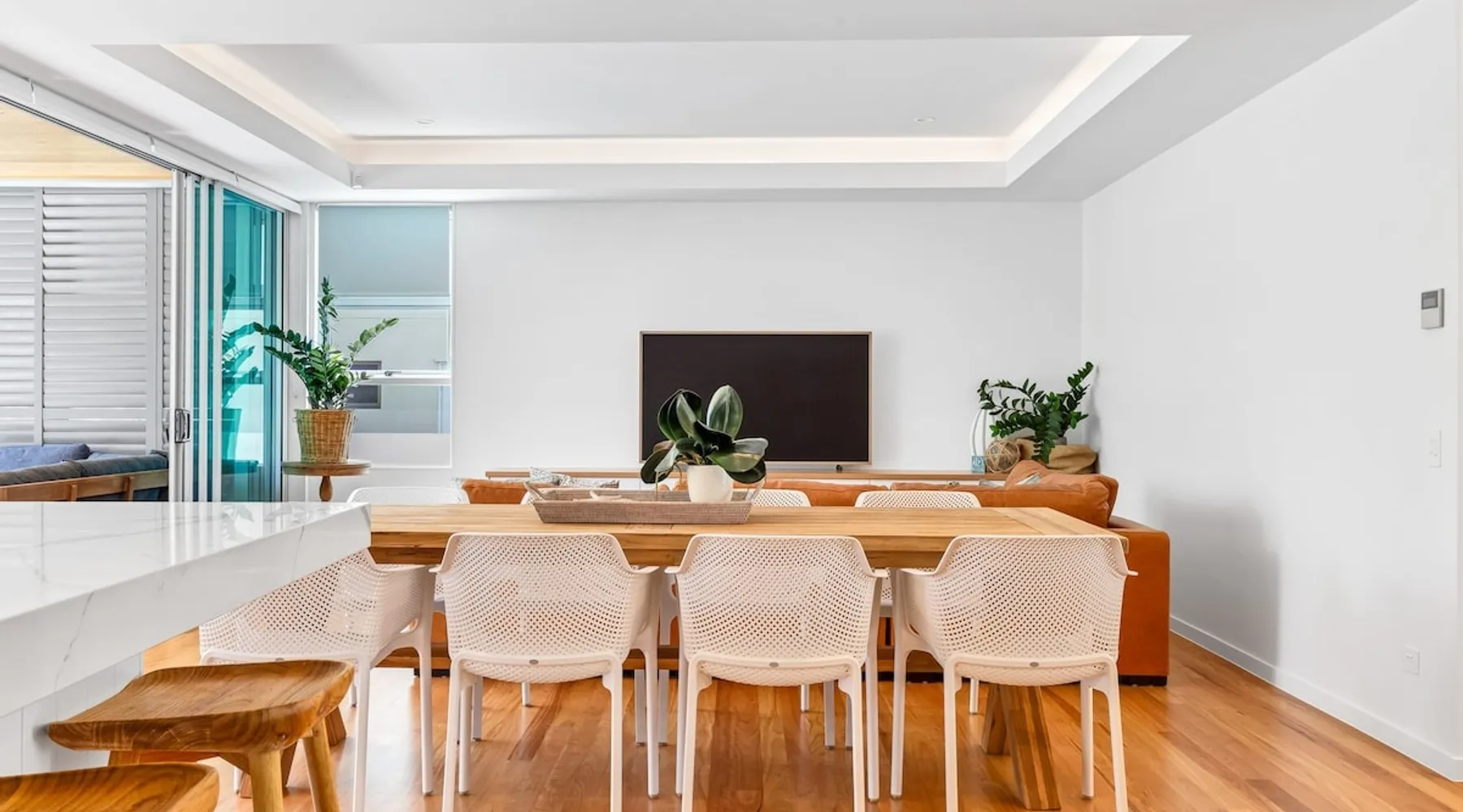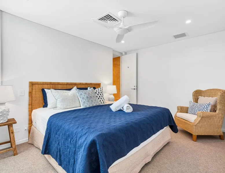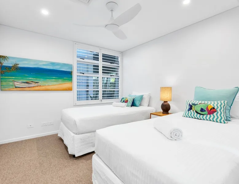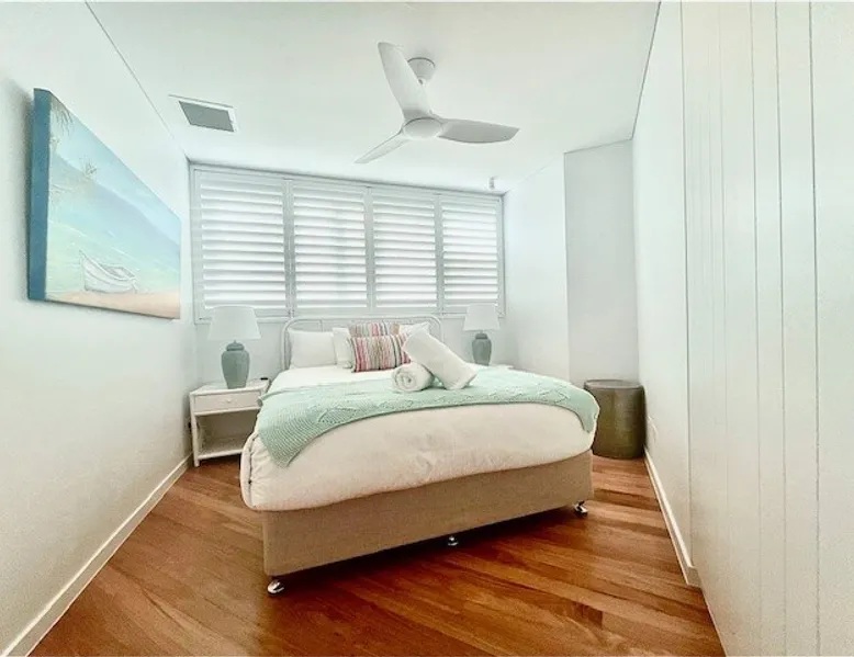 Experience luxury and comfort at The Beach House, a stunning, high-quality apartment in a boutique Mooloolaba Beach building. This exclusive property, one of only 3 apartments, boasts three bedrooms with the master bedroom featuring an ensuite. The chef’s kitchen overlooks a spacious deck and a sparkling private lap pool, and offering ocean glimpses. Enjoy family dinners on the deck while listening to the waves crashing. Perfect for your next beachside retreat! The space Occupying the entire ground floor, this luxurious apartment offers exclusive access to its own lap pool and picturesque glimpses of the Mooloolaba Spit. Recently refurbished in November 2023, every detail has been carefully crafted with high-end furnishings, fixtures, and finishes. The chef’s kitchen features large serving windows that open up to the deck, making it perfect for entertaining or enjoying quiet meals with the sound of the ocean in the background. Bedding configuration: Bedroom 1 (Master): King bed with ensuite bathroom Bedroom 2: Twin single beds Bedroom 3: Queen bed Features: Air-conditioning throughout Free Wi-Fi Private lap pool Beach access Outdoor shower Newly refurbished Secure garage parking (1x car) Linen and bath towels provided Non-inclusions: Pool towels are not provided (please bring your own) Guest access Guests have full access to the entire apartment, including the private lap pool, exclusive to this property. Other things to note 🔹 Rates: Stay for 7 or more nights and enjoy 10% off the standard rate. Stay for 21 or more nights and receive a 20% discount — with rates automatically adjusted at the time of booking. 🔹 Linen, bath towels, and essentials are provided, including a starter pack of toiletries & kitchen basics. (For stays longer than 2 days, we recommend bringing extra supplies.) 🔹PLEASE BE AWARE - We do require a pre-authorisation for this property of $500.00. This is taken at the time of check-in using a credit card or debit card. This amount is held off your available funds and released after 10-14 days to cover any miscellaneous charges, damages, or breakages. This constitutes your agreement to the Terms and Conditions of Holiday Mooloolaba. 🔹This property does not accept school leavers/parties or gatherings of any description 🔹Check in/out- Key Collection and return is at Holiday Mooloolaba. 123 Parkyn Parade, Mooloolaba (not site/property)