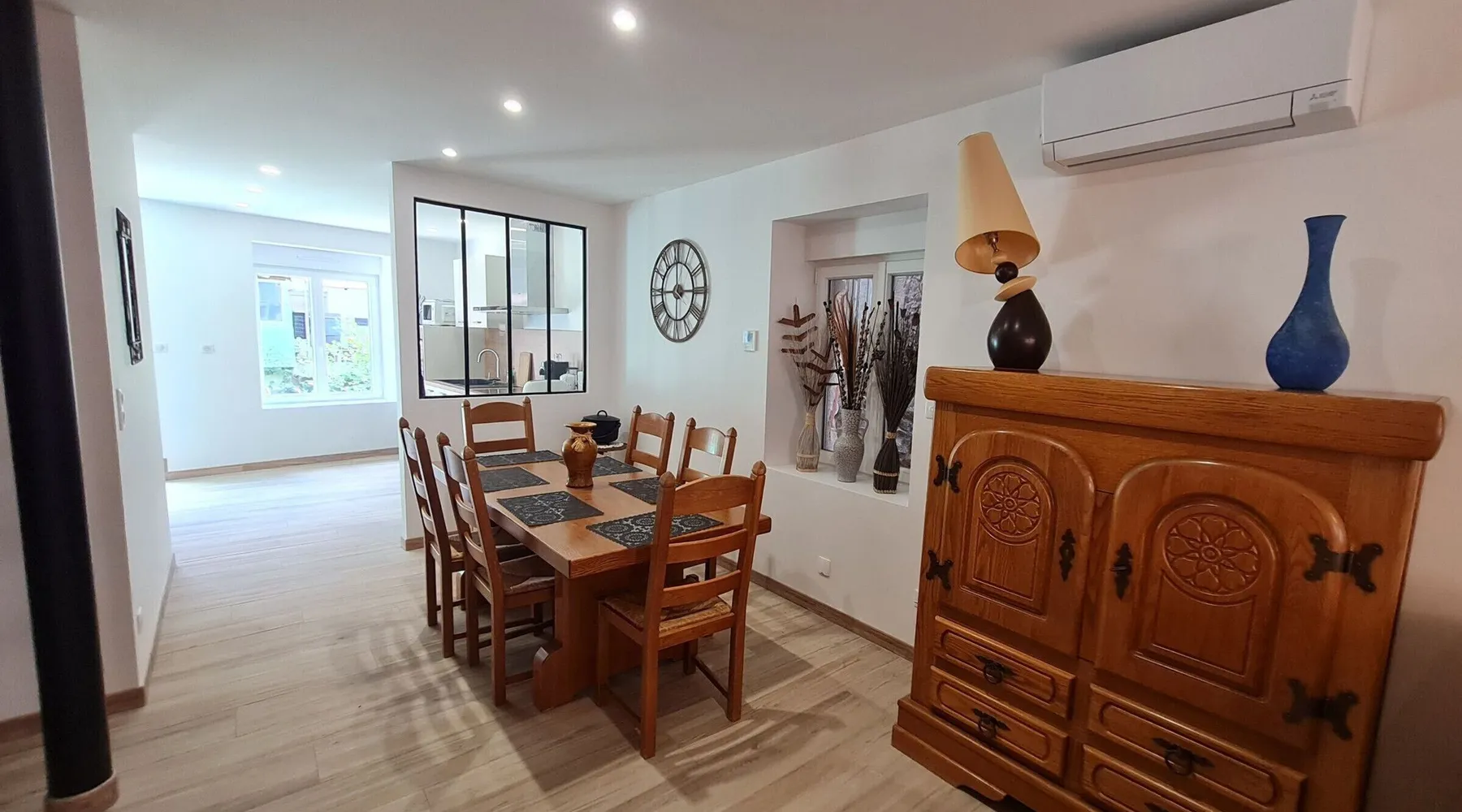 Come and spend a pleasant stay with family or friends at the Trella house. The gîte is located in one of the oldest streets in Raon l'Etape, in a quiet area offering direct access to the town center and all amenities (bakery, restaurants, pharmacy, etc.). Several free car parks are available nearby. You will have a small balcony at the back of the house with a magnificent view of the La Plaine river. Activities : Hikes, walks around the lakes, nautical activities, pedal boats, tree climbing, zip lines... Near : Pierced stone lake: 10 min Baccarat and its crystal factory: 10 min The temple of DONON: 30 min GERARDMER ski resorts: 45 min Nancy: 50 mins Colmar: 50 min House of 100m² located in Raon l'Etape, which can accommodate up to 6 people, reversible air conditioning. - an equipped kitchen (dishwasher, oven, microwave, fridge, hood, hob, etc.) - a living room with TV connected to fiber, sofa, armchairs (including 1 electric) - 1 separate WC - 1 bathroom - 1 master bedroom with a large queen size 160 bed and wardrobe - 1 bedroom with 2 twin beds and wardrobe - 1 mezzanine bedroom with a large queen size 160 bed with wardrobe The all-inclusive price includes: bed linen and towels for the stay, end-of-stay cleaning (excluding dishes and garbage cans), heating and electricity with reasoned and reasonable consumption. A high chair and a cot are available on site at no additional cost. Free WIFI. Property managed by a professional. Unless stated, services such as cleaning, bed linen, towels etc. are not included in the price of this rental. If pets are allowed (information in the advertisement), charges may be applicable. Only equipment mentioned in this advertisement are present. Equipment not mentioned are not considered to be present. Unless there is an electric charging station in the accommodation, charging electric vehicles is prohibited. End of stay cleaning is included.