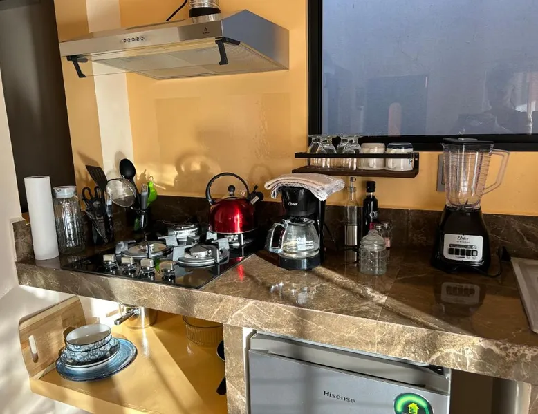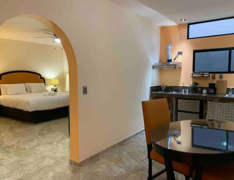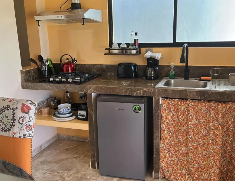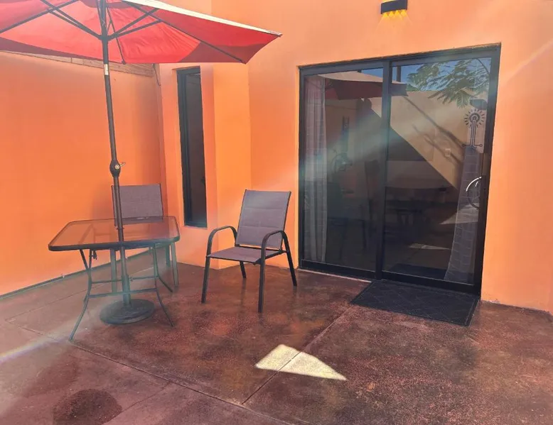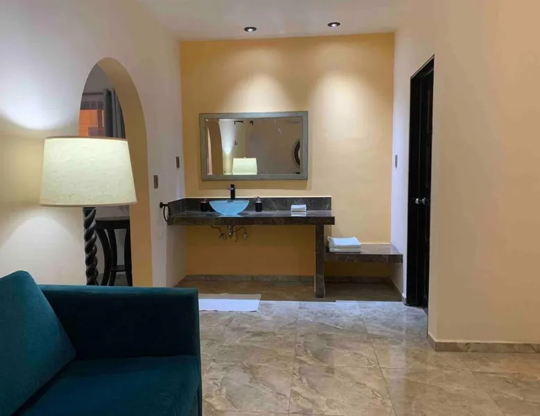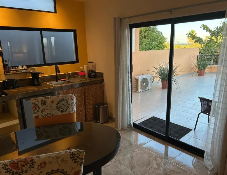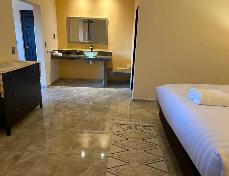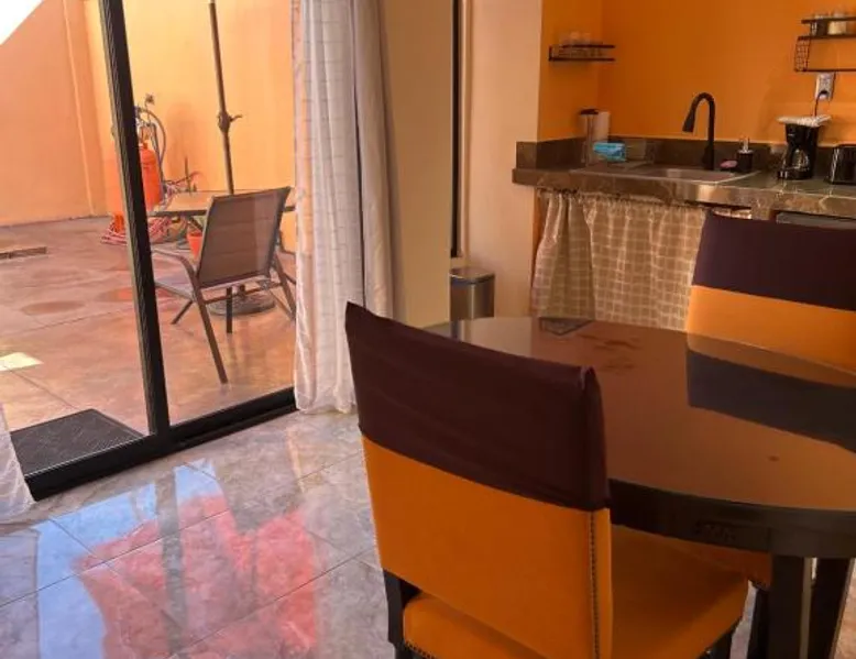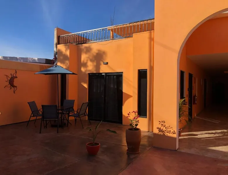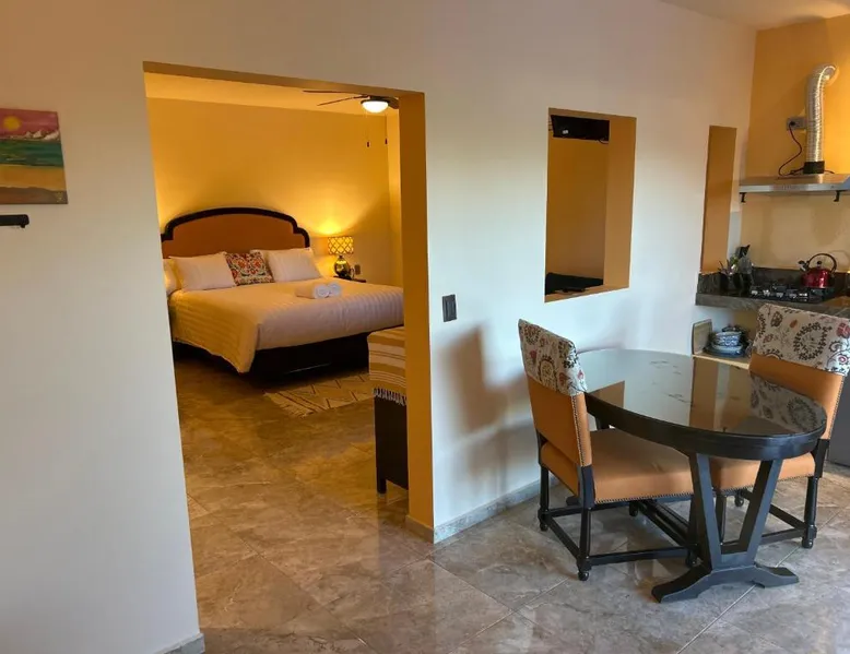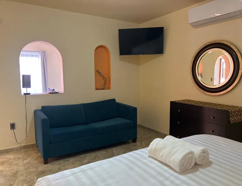 Comfortable Accommodations: Tres Iguanas Apart Hotel in Loreto offers spacious apartments with air-conditioning, kitchenettes, and private bathrooms. Each unit features a balcony or terrace with sea views, ensuring a relaxing stay. Modern Facilities: Guests enjoy free WiFi, a sun terrace, and outdoor seating areas. Additional amenities include a paid shuttle service, bicycle parking, and free on-site parking. The property is highly rated for its attentive host, quiet surroundings, and impeccable room cleanliness. Prime Location: Located 3281 feet from Loreto International Airport, the hotel is a short walk from Zaragoza Beach. Nearby attractions include the Loreto Marina and the Loreto Golf Club. Cycling enthusiasts can explore the surrounding area with ease. Featuring a private entrance, this air-conditioned apartment is consisted of of 1 living room, 1 separate bedroom and 1 bathroom with a walk-in shower. Meals can be prepared in the well-fitted kitchen, which is fitted with a stovetop, a refrigerator, kitchenware and a toaster. Boasting a terrace with an inner courtyard view, this apartment also offers a tea and coffee maker and a flat-screen TV with streaming services. The unit offers 2 beds.
