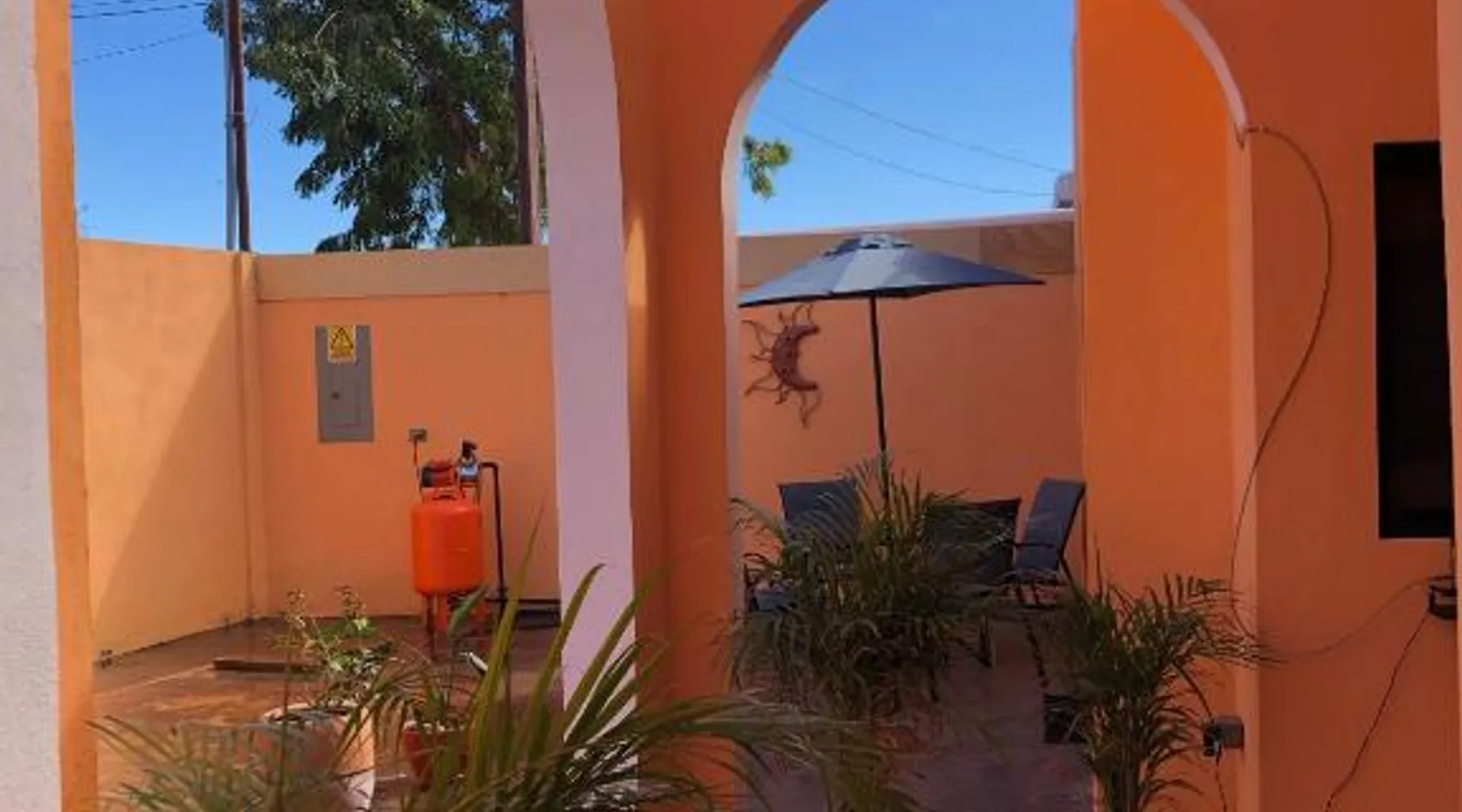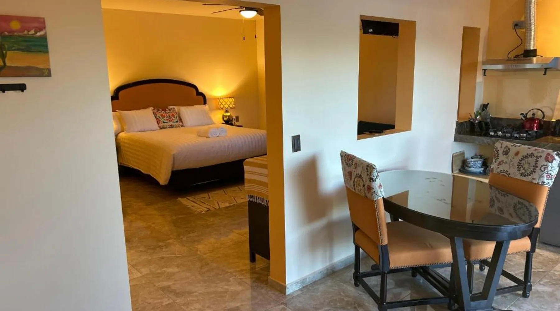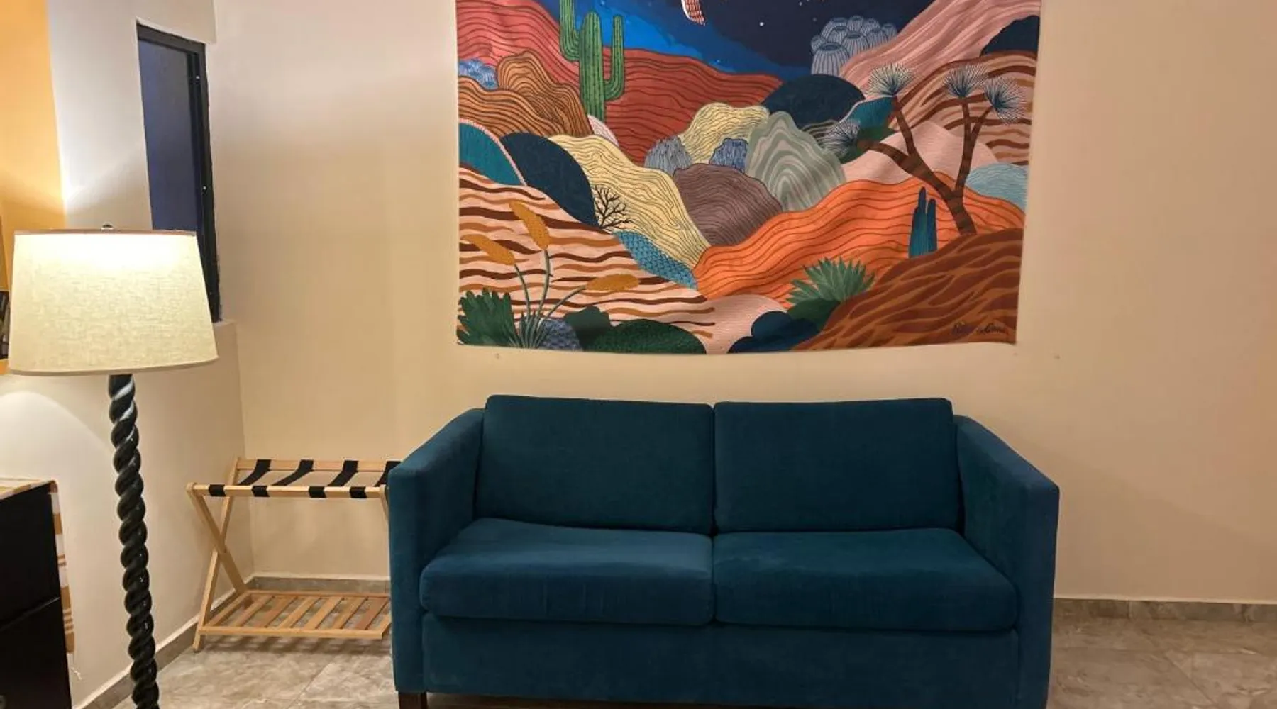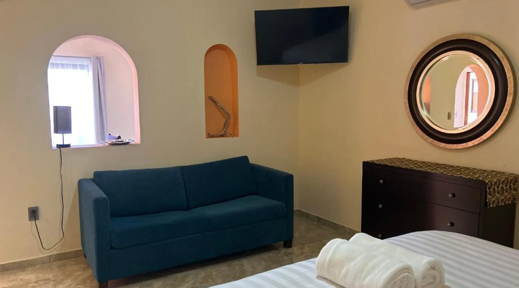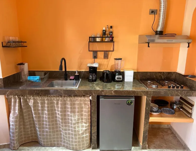 Comfortable Accommodations: Tres Iguanas Apart Hotel in Loreto offers spacious apartments with air-conditioning, kitchenettes, and private bathrooms. Each unit features a balcony or terrace with sea views, ensuring a relaxing stay. Modern Facilities: Guests enjoy free WiFi, a sun terrace, and outdoor seating areas. Additional amenities include a paid shuttle service, bicycle parking, and free on-site parking. The property is highly rated for its attentive host, quiet surroundings, and impeccable room cleanliness. Prime Location: Located 3281 feet from Loreto International Airport, the hotel is a short walk from Zaragoza Beach. Nearby attractions include the Loreto Marina and the Loreto Golf Club. Cycling enthusiasts can explore the surrounding area with ease. Featuring a private entrance, this air-conditioned apartment is consisted of of 1 living room, 1 separate bedroom and 1 bathroom with a walk-in shower. Meals can be prepared in the well-fitted kitchen, which is fitted with a stovetop, a refrigerator, kitchenware and a toaster. Boasting a terrace with an inner courtyard view, this apartment also offers a tea and coffee maker and a flat-screen TV with streaming services. The unit offers 2 beds.