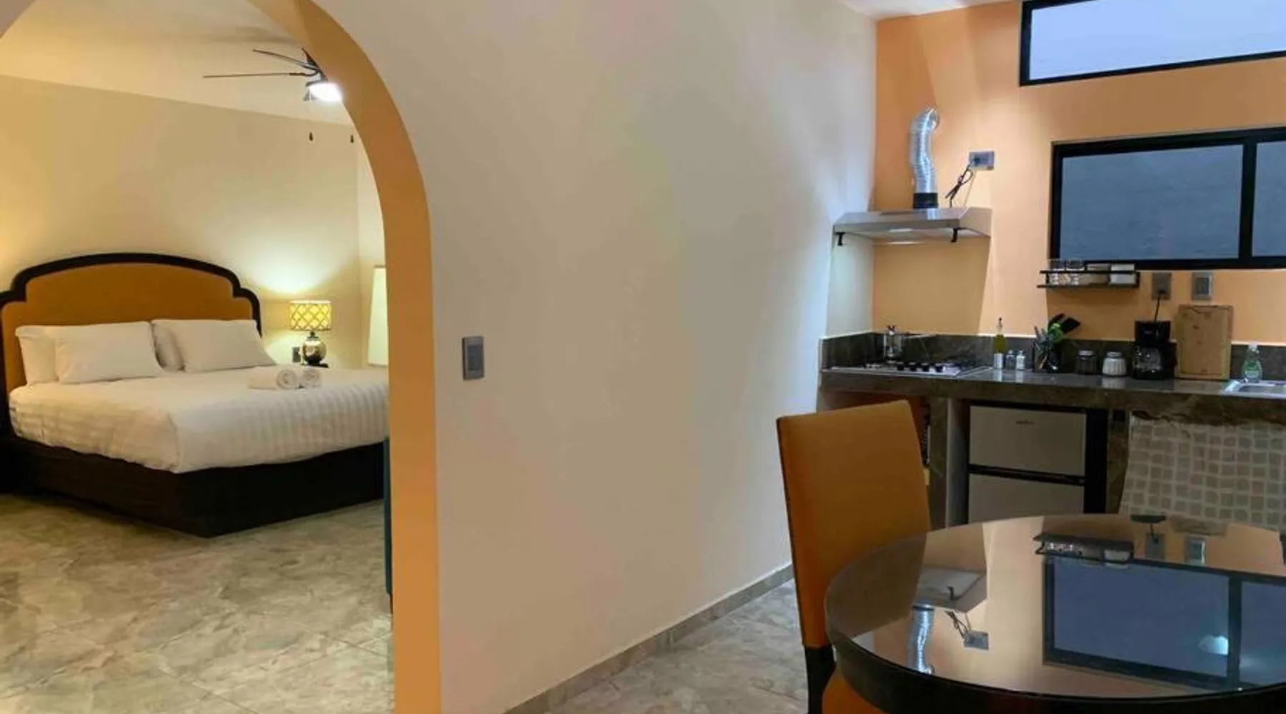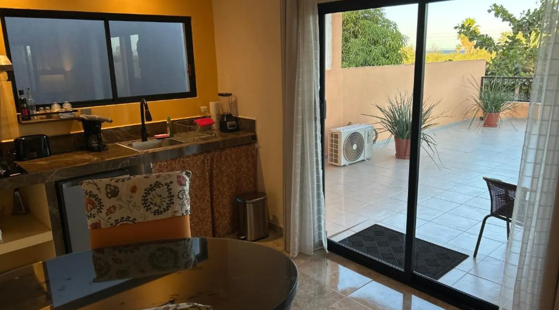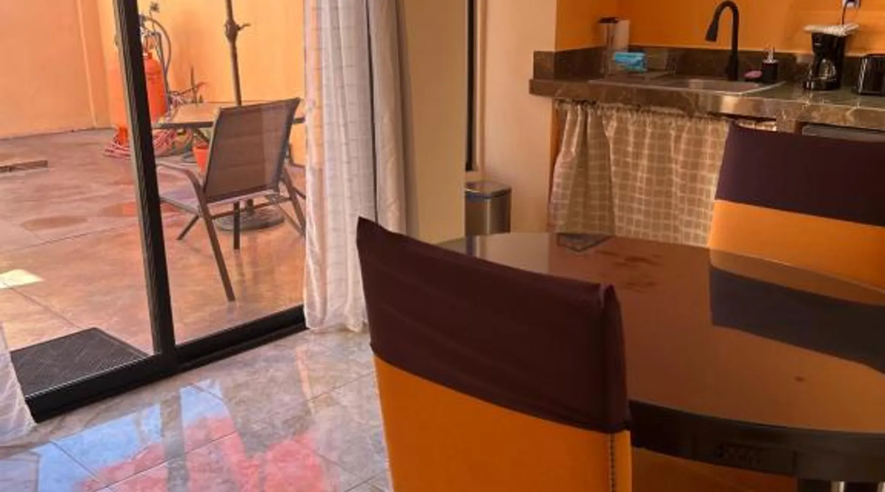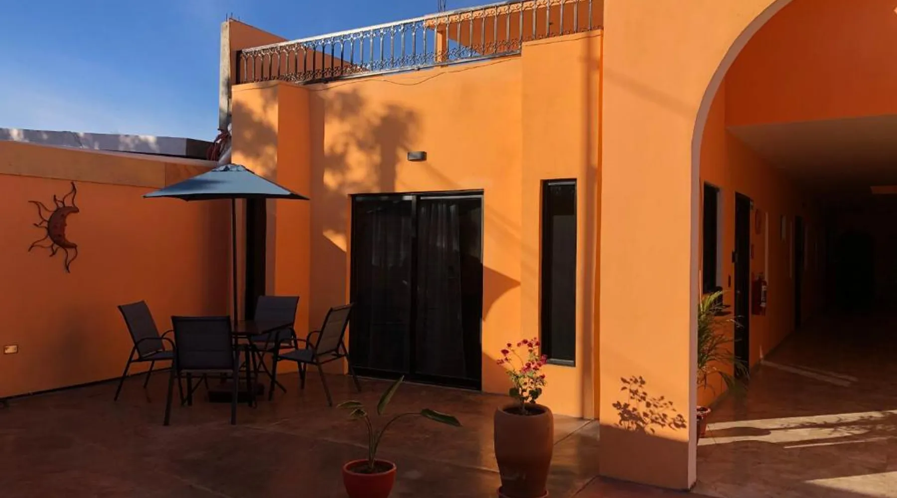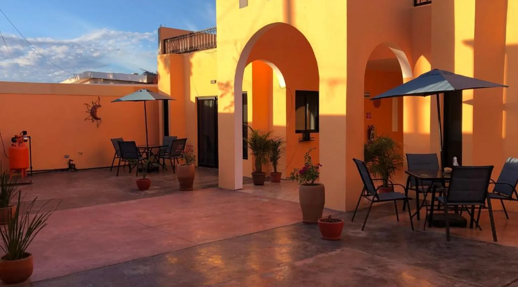 Comfortable Accommodations: Tres Iguanas Apart Hotel in Loreto offers spacious apartments with air-conditioning, kitchenettes, and private bathrooms. Each unit features a balcony or terrace with sea views, ensuring a relaxing stay. Modern Facilities: Guests enjoy free WiFi, a sun terrace, and outdoor seating areas. Additional amenities include a paid shuttle service, bicycle parking, and free on-site parking. The property is highly rated for its attentive host, quiet surroundings, and impeccable room cleanliness. Prime Location: Located 3281 feet from Loreto International Airport, the hotel is a short walk from Zaragoza Beach. Nearby attractions include the Loreto Marina and the Loreto Golf Club. Cycling enthusiasts can explore the surrounding area with ease. Featuring a private entrance, this air-conditioned apartment is consisted of of 1 living room, 1 separate bedroom and 1 bathroom with a walk-in shower. Meals can be prepared in the well-fitted kitchen, which is fitted with a stovetop, a refrigerator, kitchenware and a toaster. Boasting a terrace with an inner courtyard view, this apartment also offers a tea and coffee maker and a flat-screen TV with streaming services. The unit offers 2 beds.