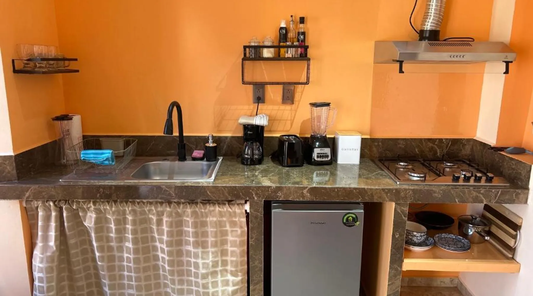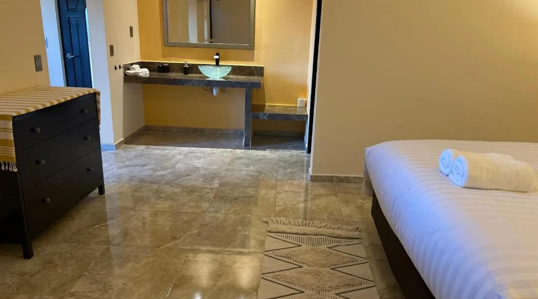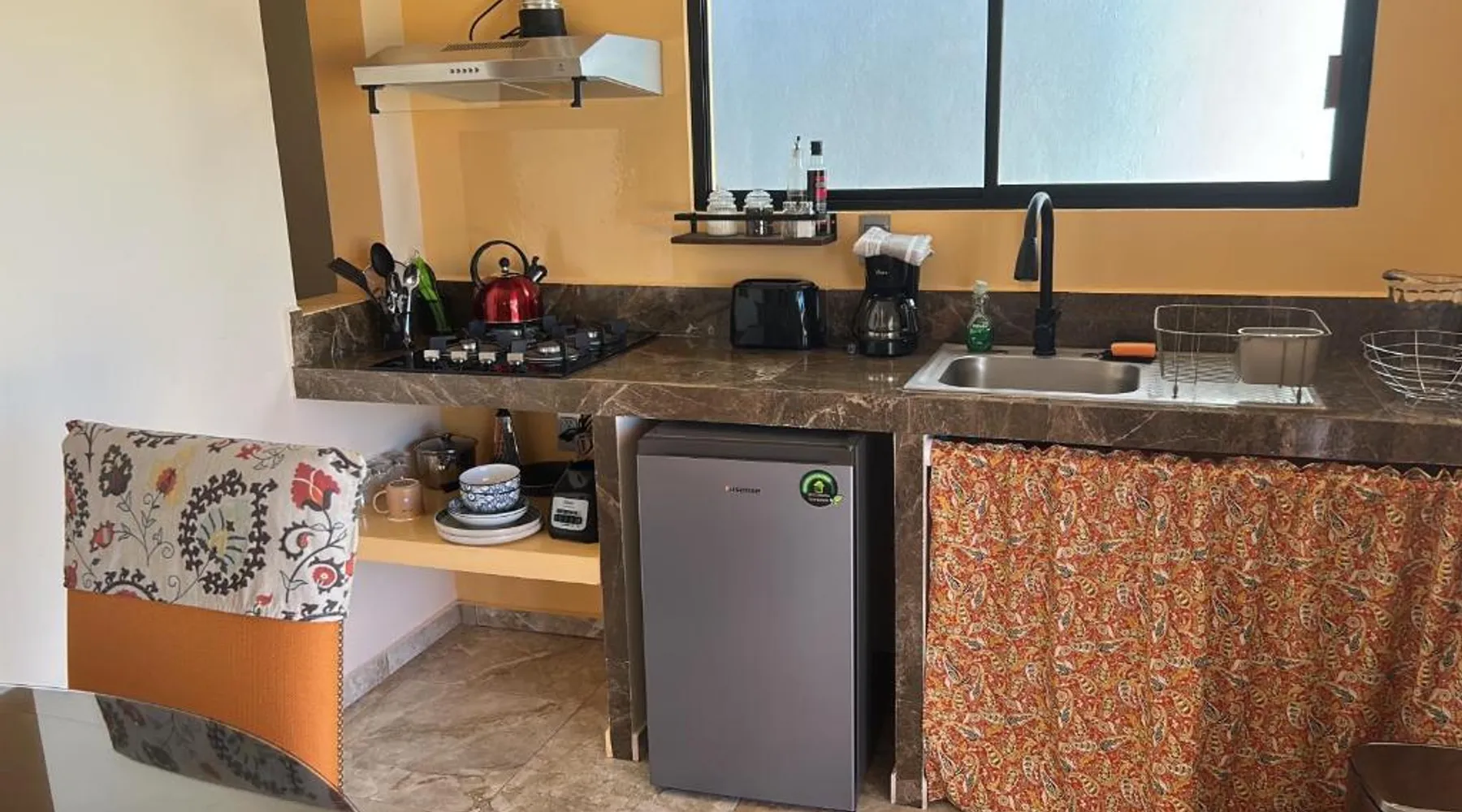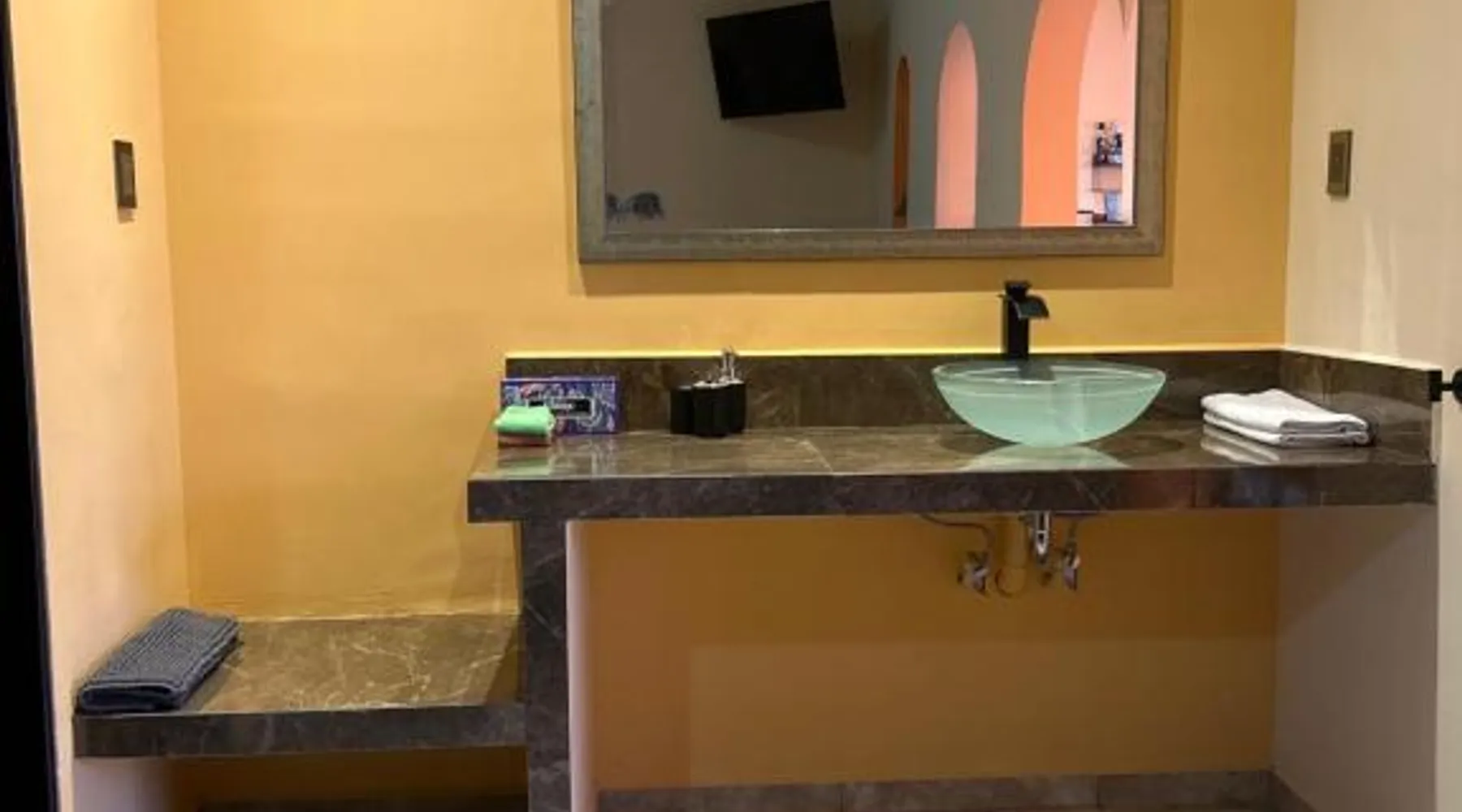 Comfortable Accommodations: Tres Iguanas Apart Hotel in Loreto offers spacious apartments with air-conditioning, kitchenettes, and private bathrooms. Each unit features a balcony or terrace with sea views, ensuring a relaxing stay. Modern Facilities: Guests enjoy free WiFi, a sun terrace, and outdoor seating areas. Additional amenities include a paid shuttle service, bicycle parking, and free on-site parking. The property is highly rated for its attentive host, quiet surroundings, and impeccable room cleanliness. Prime Location: Located 3281 feet from Loreto International Airport, the hotel is a short walk from Zaragoza Beach. Nearby attractions include the Loreto Marina and the Loreto Golf Club. Cycling enthusiasts can explore the surrounding area with ease. Featuring a private entrance, this air-conditioned apartment is consisted of of 1 living room, 1 separate bedroom and 1 bathroom with a walk-in shower. Meals can be prepared in the well-fitted kitchen, which is fitted with a stovetop, a refrigerator, kitchenware and a toaster. Boasting a terrace with an inner courtyard view, this apartment also offers a tea and coffee maker and a flat-screen TV with streaming services. The unit offers 2 beds.