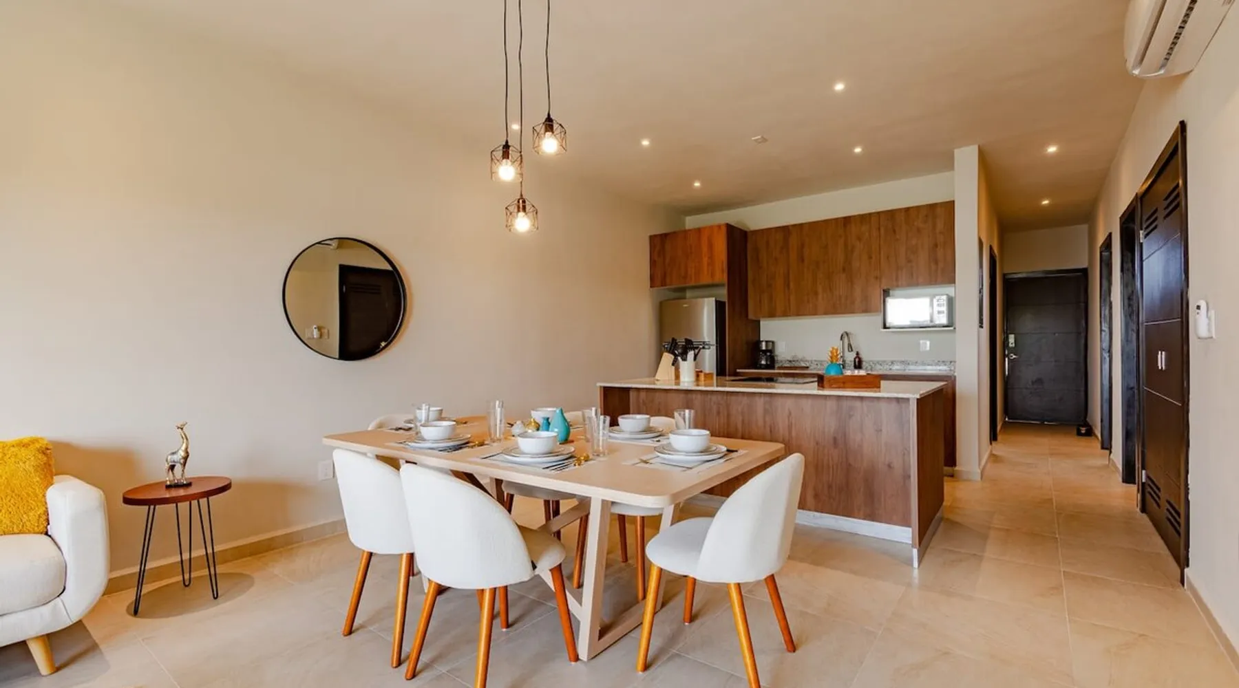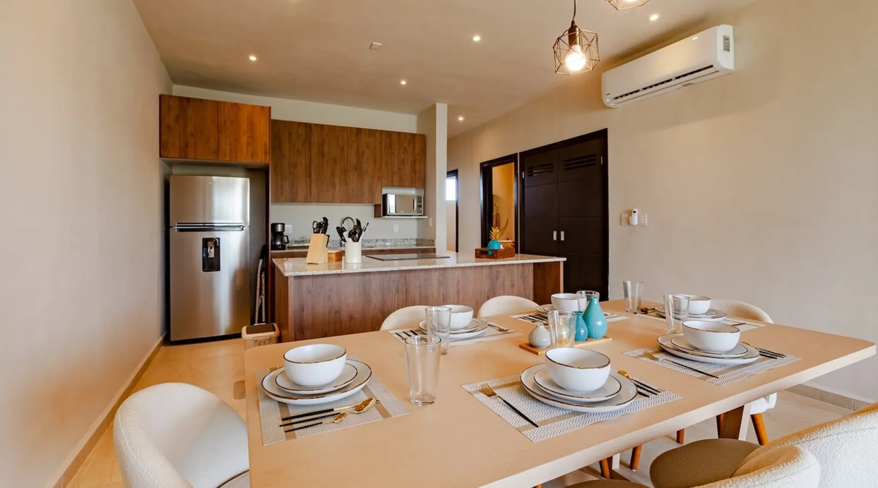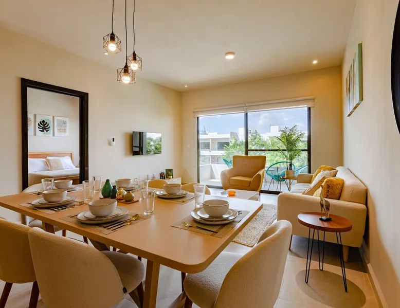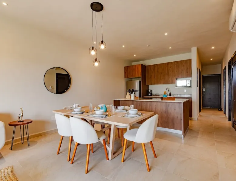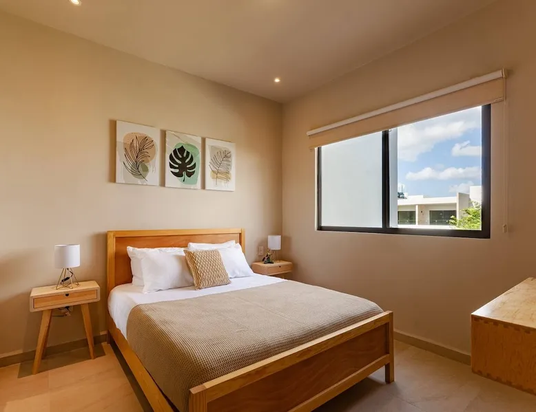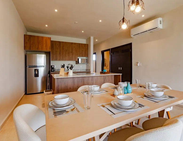 ✓ NEW! CasitaDelMar, Modern and Cheerful Family Apartment in Coto 11, the newest and most exclusive in the Selvanova Residential complex: → 12 minutes by car to the beach Common → Areas: 4 Pools; Games for Children; 4 Pergolas with Barbecues and Tables; 2 Gyms; 1 Kids Club; Preserved areas of Selva. → 24/7 security access control → 1 private parking space. → 1 private terrace. 60MB → Wi-Fi. → 2 43" SmartTVs. → 4 ACs in all rooms → Equipped kitchen + Washing machine. → 2 Queen beds + 2 Twin beds. → 2 full bathrooms. The space ✓ The H O U S E: A cool and bright open→ room has a comfortable living room and armchairs for 6 Guests and a 43' SmartTV for your moments of relaxation. Direct access to the Private Terrace equipped with Acapulco armchairs to enjoy a drink outdoors. → A large dining room with seats for six guests to enjoy meals cooked at home. Fully-equipped → kitchen with all the necessary appliances for short and long stays. → 3 bedrooms to accommodate a total of 6 guests with maximum comfort: Bedroom 1: - 1 Queen Bed + Private Bathroom + 43' Smart TV + AC + Closet/Dressing Room. Bedroom 2: - 1 Queen Bed + AC + Closet Room 3: - Two twin beds, an air conditioner, and a closet → 1 Free private parking space 60MB Download + Free Upload→ WIFI → 1 Private and equipped terrace A laundry→ area with a washing machine available for free ✓ COMMON AREAS: Free → access to: - 4 swimming pools with a children's paddling pool - Sunbeds, umbrellas, showers and bathrooms - Four covered pergola areas with barbecues, fans, and dining tables. - 2 indoor gyms - 2 Outdoor Play Areas for Children - 1 Kids Club + 1 indoor Teens Club - Preserved green areas of the original jungle → In the "New Center of Playa del Carmen", a 5 min drive to the Plaza las Américas Shopping Center and the new Restaurant area. New → condominium, very quiet, ideal for relaxing and just 15 minutes from the famous 5th Avenue and the nightlife area Guest access Full → house available for Guests. "My house is your house." Free → access to: - 4 swimming pools with a children's paddling pool - Sunbeds, umbrellas, showers and bathrooms - Four covered pergola areas with barbecues, fans, and dining tables. - 2 indoor gyms - 2 Outdoor Play Areas for Children - 1 Kids Club + 1 indoor Teens Club - Preserved green areas of the original jungle Other things to note → Please remember that you're staying in a House, not a Hotel, treat the space with respect. If any inconvenience occurs, please let us know and we will do what is in our hands and as soon as possible. However, there is no staff attending at the Condominium 24/7. → We provide as a courtesy of some Amenities such as toilet paper, soap, shampoo, trash bags, water, dishwashers, etc that are not replenished during the stay. → It does not include daily cleaning service, but if you wish we can schedule it with an additional cost. → Please help the Planet by saving Energy by using the ACs optimally, maintaining an indoor temperature of 24°C and always turning them off when leaving