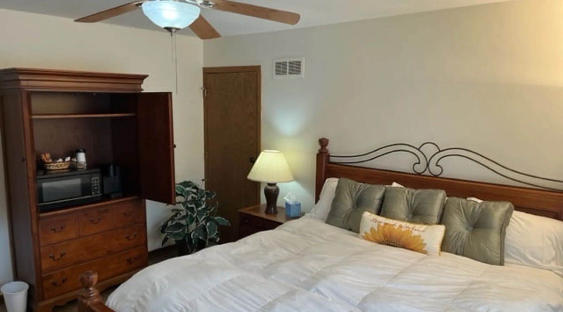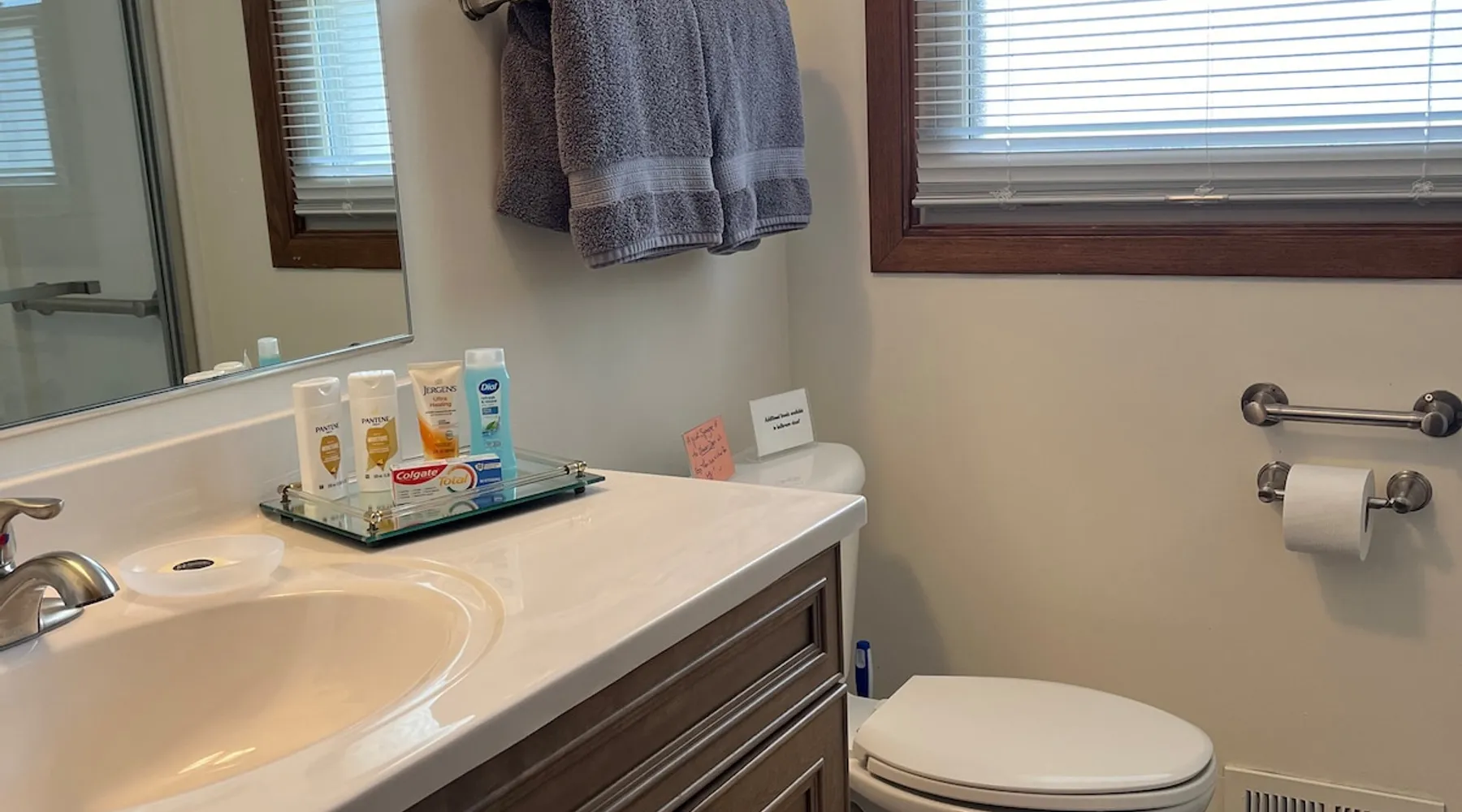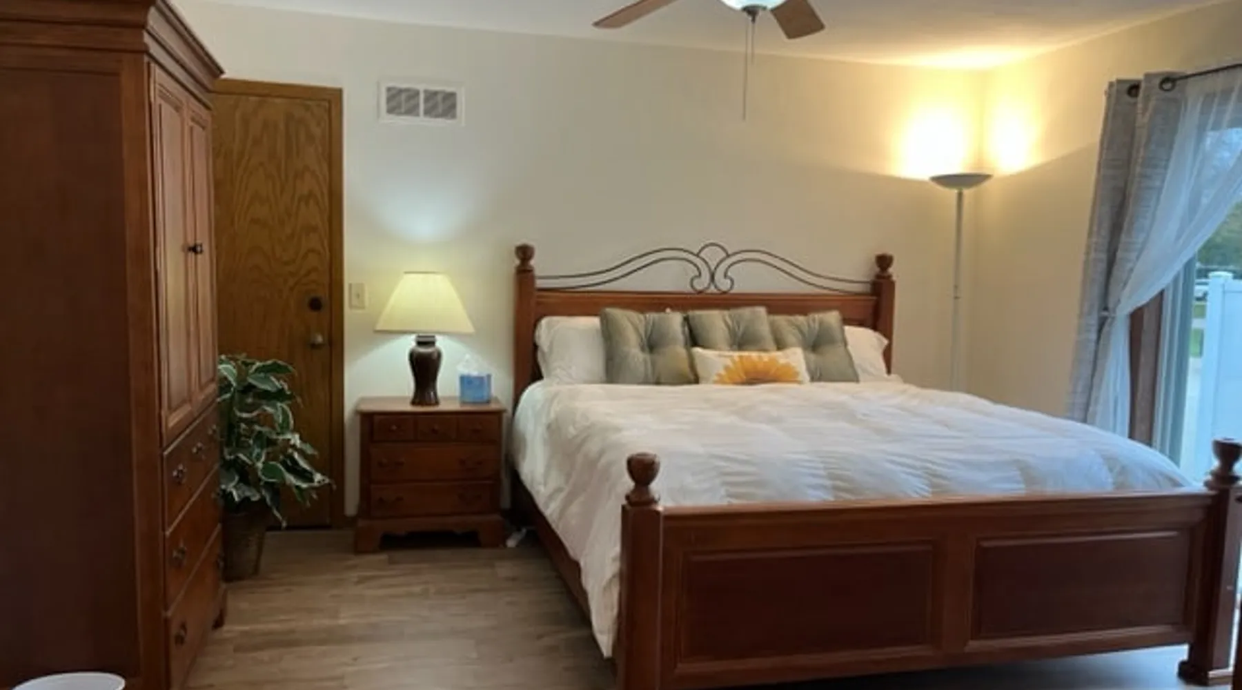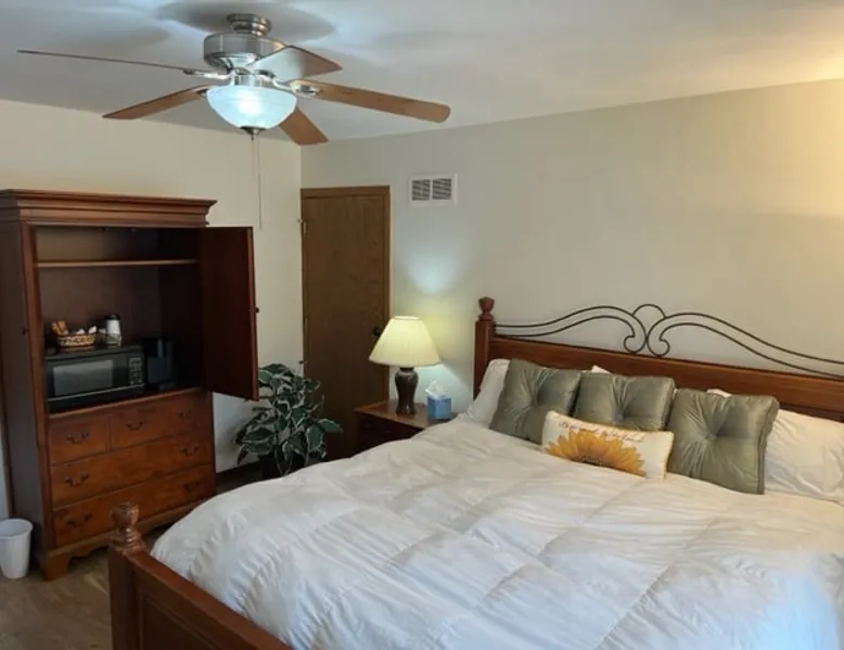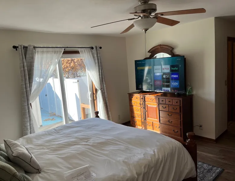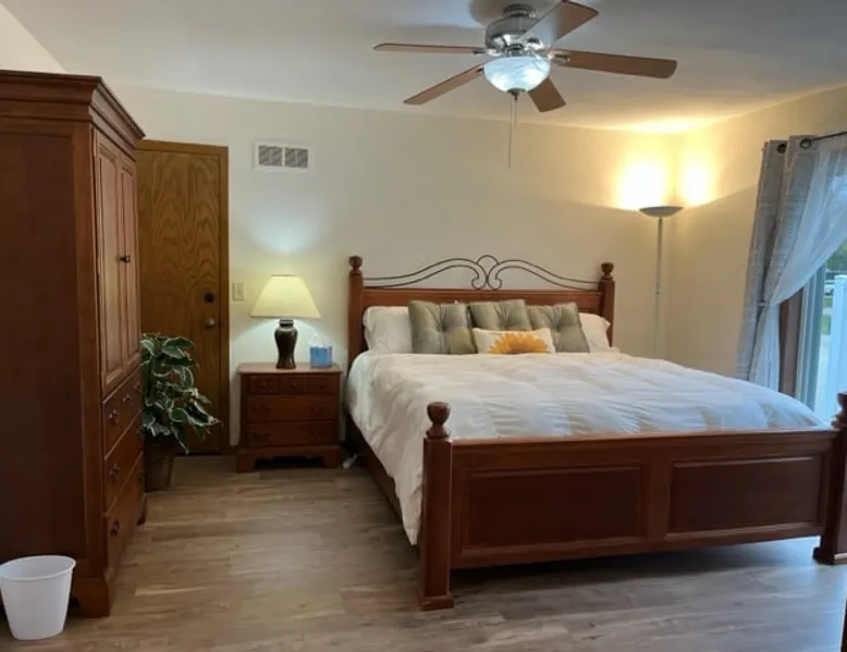 Your Private Entry, Master Suite is the ONLY suite in the area with a comfy King bed, Exclusive Private bathroom with walk-in shower and amenities, separate Private reading/work room, coffee maker, microwave and mini-frig. This is perfect for anyone visiting friends, special events, or extended work stay! Conveniently close 2 min. from Beloit Hospital, Grocery Store, Drug/Convenience Stores, restaurants, bike/hiking paths along the scenic Rock River, Beloit College and Downtown activities. The space You will walk through the private, patio door entrance into a beautiful, comfortable Master Suite that will immediately feel like home. Large comfy King Bed - New exclusive private bathroom with walk in shower and grab bars - separate private reading/work area that can be closed with your French door or remain open into your bedroom - mini frig, microwave, snacks, coffee and tea, 60" HD tv all waiting for your enjoyment. Guests have commented "it feels like your own private spa!" In the summer, you may use the patio/pool area until 8pm or take a leisurely walk around our quiet neighborhood. Guest access Your private master suite is locked and controlled by you alone. Your private bathroom and walk in shower are exclusively for your enjoyment and use. Your separate reading/work area is yours alone to use and relax. You may hear muffled movement in the house as there are others in the residence, but it is minimal, distant, and infrequent. During your stay We are available 24/7 for any requests or questions. In the summer, If you see us on the front porch or back by the pool, feel free to join us for a friendly chat and your favorite beverage! We also respect your privacy and will not interfere with your stay - you are in control!