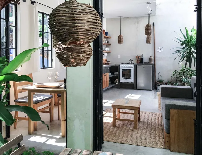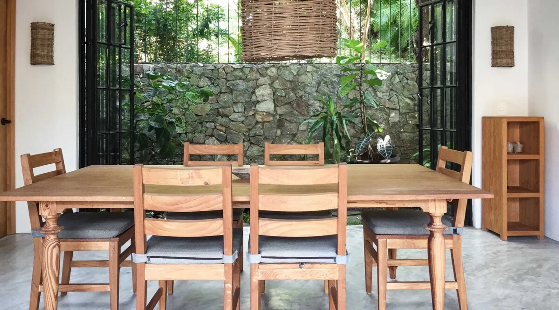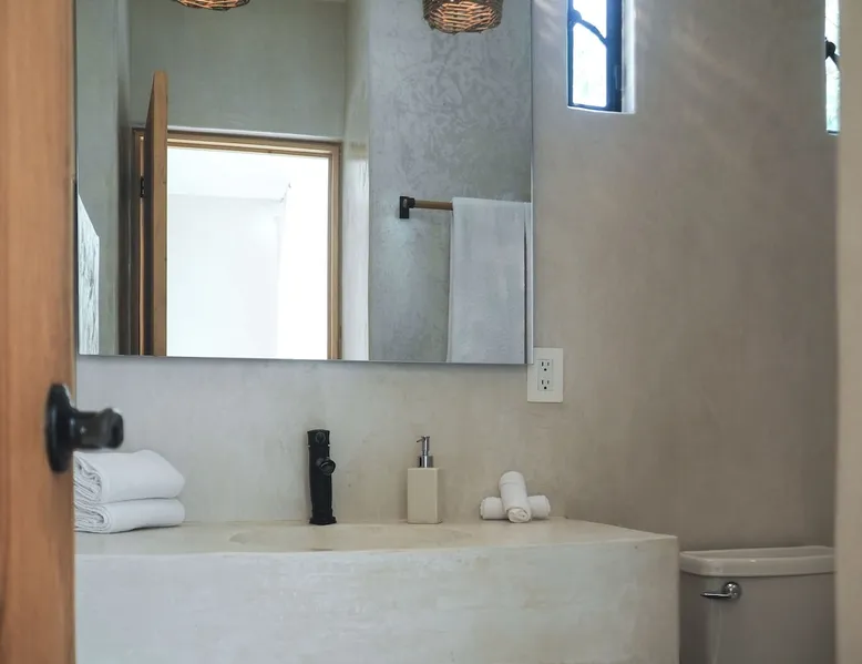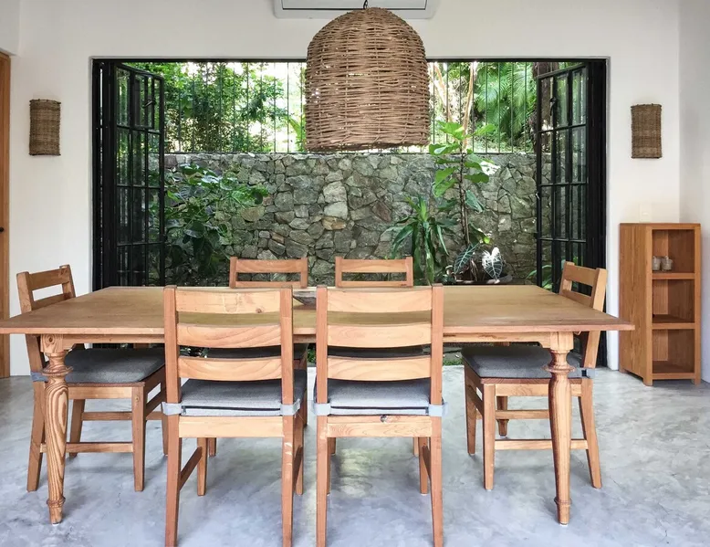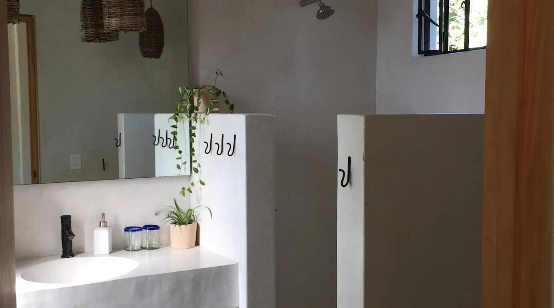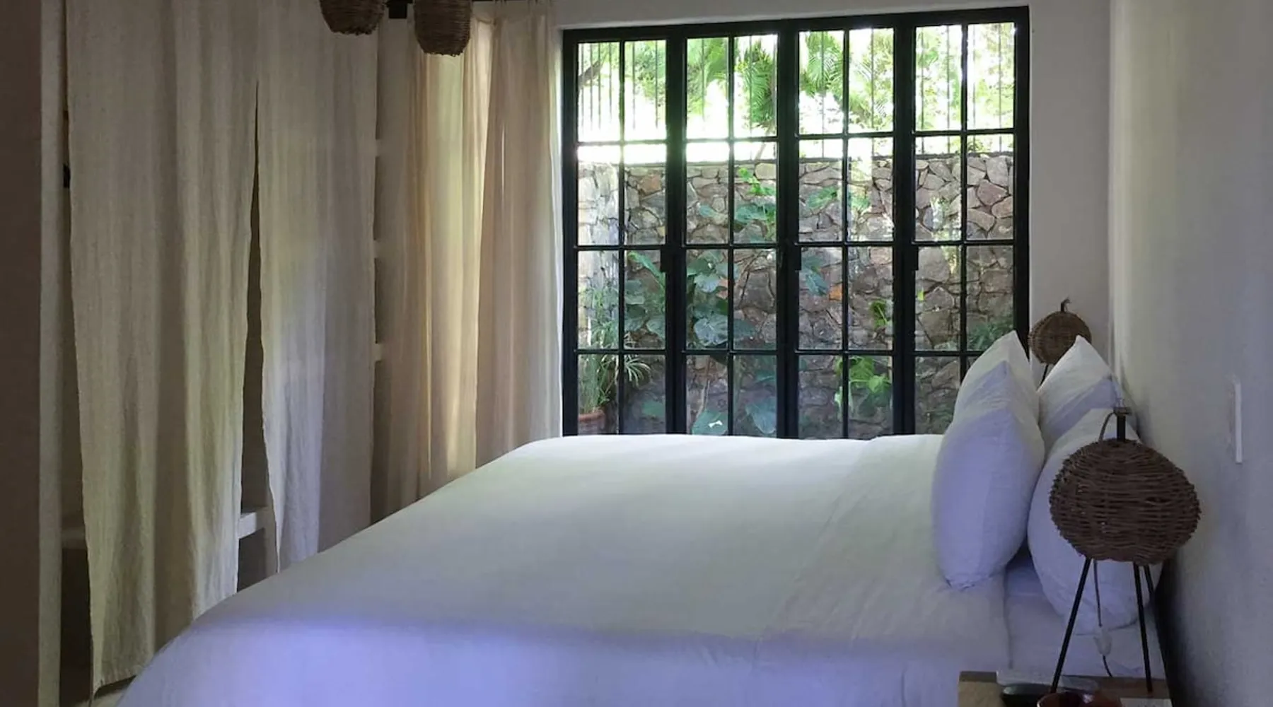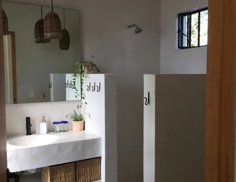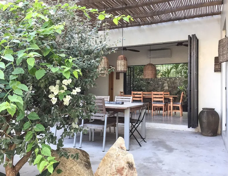 Estate comprising a main house for 6 and a bungalow for 2 both with access to main garden, & pool. 4 bedrooms total, each with private bath, two fully equipped kitchens, dining room, lounge, gardens, terraces, 6.5 by 16.5 ft pool with outdoor shower, garage with golf cart charging option and reliable internet. Included cleanings during your stay! (Mostly) quiet neighbourhood but on a side road that can be noisy. 6 minutes walk to the central square, another minute to the main beach. The space With its interweaving indoor and outdoor spaces, the design of the house combines traditional mediterranean architecture with american and tropical buildings. Every room opens to two opposing sides allowing a breeze to go through. Almost all rooms have access to outdoor space, be it a garden, a terrace, or at least a balcony. All downstairs rooms open to outdoor spaces on both sides. The bungalow is one open space with an indoor garden and a private outdoor space. Guest access Both houses, gardens, and pool are your's alone in their entirety. No space at all is shared with anyone else. There‘s a service room adjacent to the kitchen that we‘d ask you not to enter, all other spaces are open for you. Other things to note Quiet use only — PLEASE NOTE The house is sited in a usually quiet residential area, and we live in another house on the premise ourselves. Please refrain from loud partying at all times, and respect sleeping hours after 10 o’clock in the evening. Please understand that even shouting and very loud talking by the pool or on the terraces may make it hard for all around to sleep. ——— NOROVIRUS: You may have come across reports of the 2024 Norovirus outbreak in Sayulita. There has been such an outbreak, mainly in February. It appears to be receding for some time now. We assembled a small list of simple hygiene recommendations, most of which are recommendable in Mexico at any given moment. Following them, we ourselves live here and none of us got sick. The same applies to the last groups of guests we had. Understandably, those who write about on public web sites. it are mainly those who got sick and are angry. I don’t mean to accuse them of being careless—accidents happen. What I do mean to say is that Sayulita life is possible without falling ill. We are happy to provide said hygiene guide to potential guests and all others alike, just ask. ——— Amenities (in addition to those on the airbnb list): — beach towels — coffee makers, both french presses and proper moka pots (Italian stovetop) — dish washer — USB power outlets, two on each night stand and more. Just ask. SERVICED LAUNDRY ONLY: The washers are not accessible to our guests directly (due to repeated incidents of damage by guests). We are happy to wash, dry and fold your laundry for you between 10 am and 2 pm except Sundays, free of charge. Wifi Strong and reliable internet access, with some 50 Mbps downstream, 25 Mbps upstream on average (see test results in image section). Even on power outage, access persists for about an hour due to no-break power supply for router and LAN. Cleaning Service We offer free of charge cleaning about every second day at an hour of your convenience (roughly between 10am and 3pm). (On rare occasions, this may not be possible due to sickness or some other severe cause—we’re not a hotel with a big staff). This is not mandatory. If you prefer us not coming in, we will provide a cleaning kit, new towels and bed sheets etc. from the outside. There is one exception: To water the plants on the upper terraces and rear gardens, our gardener will have to come through once a day. He will however never come unannounced. Garage Doors lock, fits cars up to 16.4 ft long, 9.8 wide, and 6,5 high (or a little bit more). Water For drinkable water, we have a filtered water tap (dedicated faucet) in the kitchen. Ice cubes in the fridge are equally filtered (the fridge has its own water filter). Beds — Duvets instead of blankets (and really there hasn’t been anyone yet who didn’t prefer those over a woollen blanket with a sheet). Choose between a king size single duvet for two or two individual duvets each. — We can split one of the three double beds into two single beds if you prefer that, same goes for the bed in the smaller house. Just let us know. Kids Children are most welcome. We provide two high chairs and two pack’n’play beds, also some beach toys. If you have any special needs beyond that, feel free to ask. (Mind that stairs and pool are unsecured as of now—securing the pool all around would be a mayor alteration and hindersome to most usual pool activities, and as most parents don’t see a need for it, we decided we would leave it as is.) Power Sometimes in summertime (and of late, if rarely, also in winter), village- or part-village wide power outages happen. The rarely last very long and seldom happen over night but they do happen. Sometimes they are related to hurricanes, sometimes not. They can be a nuisance particularly at sleeping hours when it is very warm and both air conditioning and fans seize to work. If it happens, it usually helps a bit that each bedroom has windows on opposing sides, wich so open provides some air flow. Not an option during hurricanes though. We provide a sheet explaining what (else) to do in case of an outage (and/or hurricane). We also provide a no break technology to keep the internet running for some time in the case of shorter outages. Please understand that we are (so far) unable to help with emergency power generators as they are quite expensive and would necessitate higher rents. Pool Salted water, not heated and in shadow most of the time, so in winter, it can be a bit cold. Insects The house is surrounded by gardens, smaller and larger ones, and sited in tropical jungle, not in a city. If we don’t either pave or poison everything, sometimes some critters come in (ants mainly, also other insects and beetles, but they come f