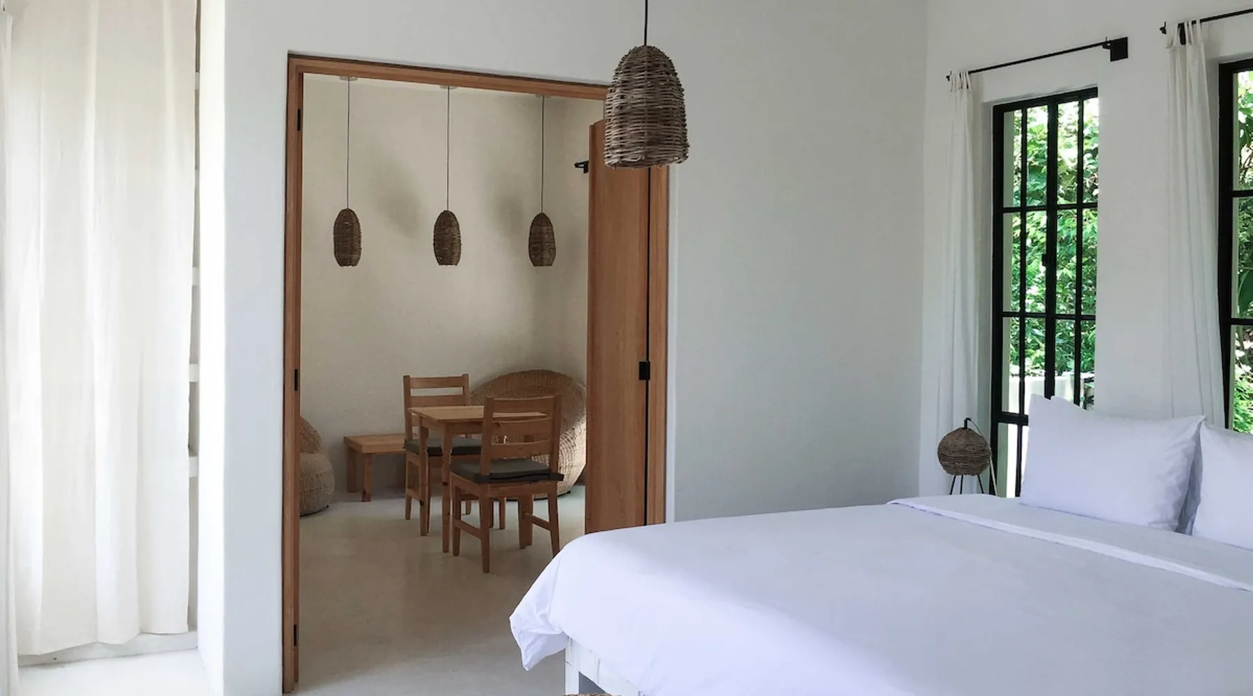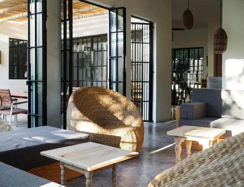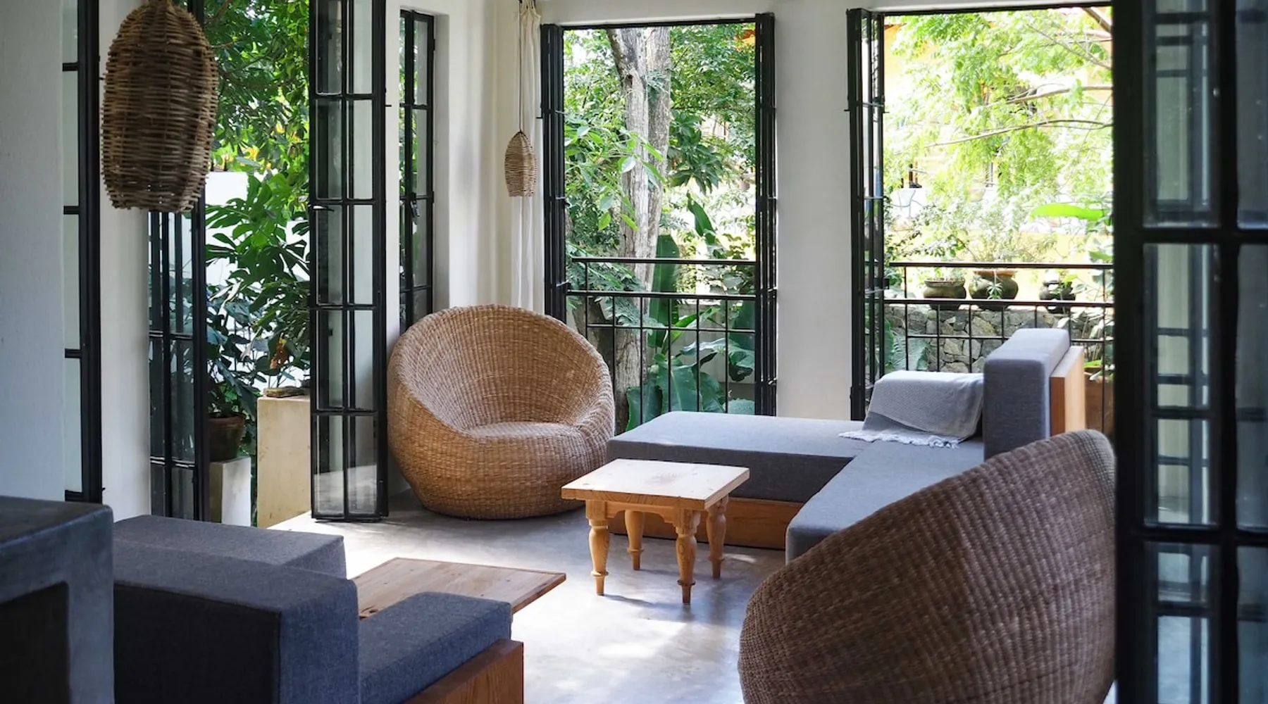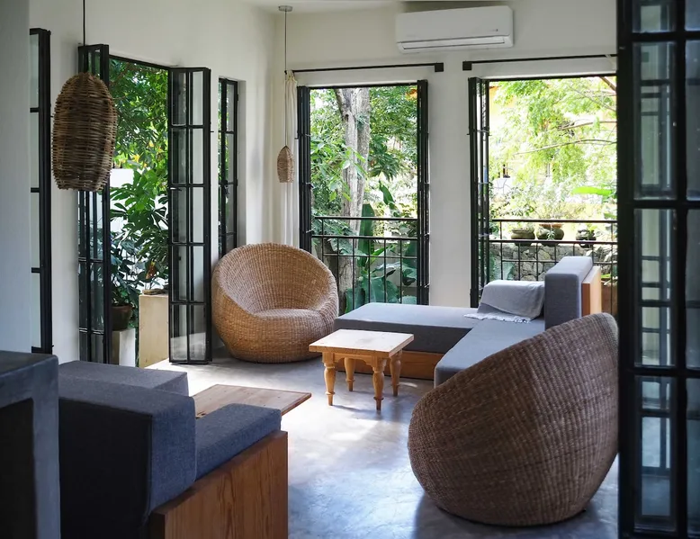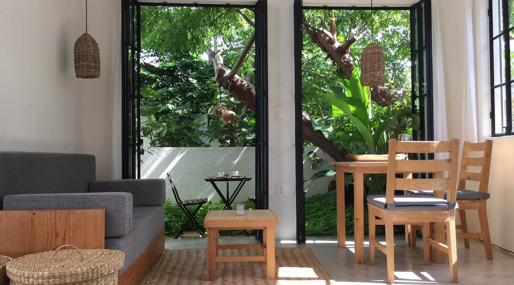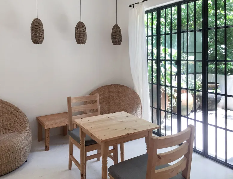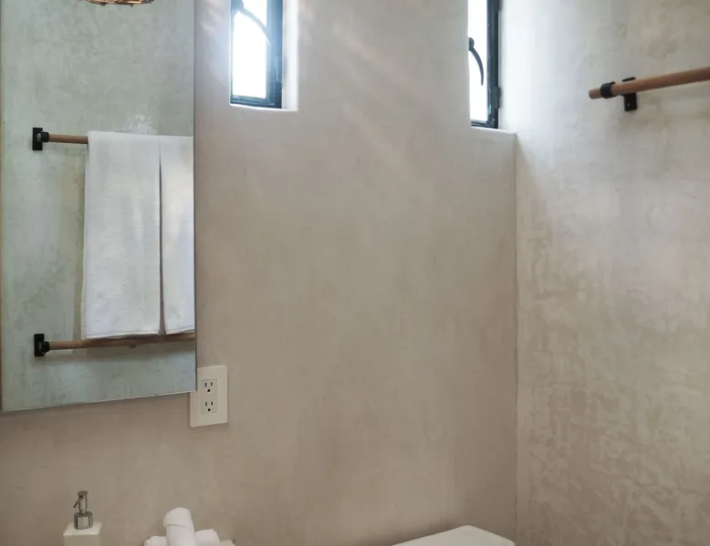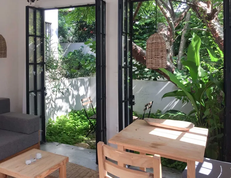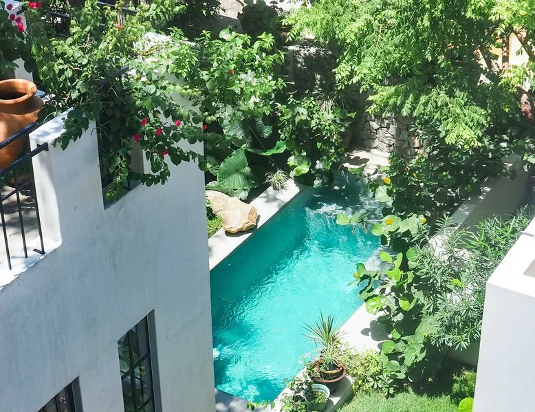 Estate comprising a main house for 6 and a bungalow for 2 both with access to main garden, & pool. 4 bedrooms total, each with private bath, two fully equipped kitchens, dining room, lounge, gardens, terraces, 6.5 by 16.5 ft pool with outdoor shower, garage with golf cart charging option and reliable internet. Included cleanings during your stay! (Mostly) quiet neighbourhood but on a side road that can be noisy. 6 minutes walk to the central square, another minute to the main beach. The space With its interweaving indoor and outdoor spaces, the design of the house combines traditional mediterranean architecture with american and tropical buildings. Every room opens to two opposing sides allowing a breeze to go through. Almost all rooms have access to outdoor space, be it a garden, a terrace, or at least a balcony. All downstairs rooms open to outdoor spaces on both sides. The bungalow is one open space with an indoor garden and a private outdoor space. Guest access Both houses, gardens, and pool are your's alone in their entirety. No space at all is shared with anyone else. There‘s a service room adjacent to the kitchen that we‘d ask you not to enter, all other spaces are open for you. Other things to note Quiet use only — PLEASE NOTE The house is sited in a usually quiet residential area, and we live in another house on the premise ourselves. Please refrain from loud partying at all times, and respect sleeping hours after 10 o’clock in the evening. Please understand that even shouting and very loud talking by the pool or on the terraces may make it hard for all around to sleep. ——— NOROVIRUS: You may have come across reports of the 2024 Norovirus outbreak in Sayulita. There has been such an outbreak, mainly in February. It appears to be receding for some time now. We assembled a small list of simple hygiene recommendations, most of which are recommendable in Mexico at any given moment. Following them, we ourselves live here and none of us got sick. The same applies to the last groups of guests we had. Understandably, those who write about on public web sites. it are mainly those who got sick and are angry. I don’t mean to accuse them of being careless—accidents happen. What I do mean to say is that Sayulita life is possible without falling ill. We are happy to provide said hygiene guide to potential guests and all others alike, just ask. ——— Amenities (in addition to those on the airbnb list): — beach towels — coffee makers, both french presses and proper moka pots (Italian stovetop) — dish washer — USB power outlets, two on each night stand and more. Just ask. SERVICED LAUNDRY ONLY: The washers are not accessible to our guests directly (due to repeated incidents of damage by guests). We are happy to wash, dry and fold your laundry for you between 10 am and 2 pm except Sundays, free of charge. Wifi Strong and reliable internet access, with some 50 Mbps downstream, 25 Mbps upstream on average (see test results in image section). Even on power outage, access persists for about an hour due to no-break power supply for router and LAN. Cleaning Service We offer free of charge cleaning about every second day at an hour of your convenience (roughly between 10am and 3pm). (On rare occasions, this may not be possible due to sickness or some other severe cause—we’re not a hotel with a big staff). This is not mandatory. If you prefer us not coming in, we will provide a cleaning kit, new towels and bed sheets etc. from the outside. There is one exception: To water the plants on the upper terraces and rear gardens, our gardener will have to come through once a day. He will however never come unannounced. Garage Doors lock, fits cars up to 16.4 ft long, 9.8 wide, and 6,5 high (or a little bit more). Water For drinkable water, we have a filtered water tap (dedicated faucet) in the kitchen. Ice cubes in the fridge are equally filtered (the fridge has its own water filter). Beds — Duvets instead of blankets (and really there hasn’t been anyone yet who didn’t prefer those over a woollen blanket with a sheet). Choose between a king size single duvet for two or two individual duvets each. — We can split one of the three double beds into two single beds if you prefer that, same goes for the bed in the smaller house. Just let us know. Kids Children are most welcome. We provide two high chairs and two pack’n’play beds, also some beach toys. If you have any special needs beyond that, feel free to ask. (Mind that stairs and pool are unsecured as of now—securing the pool all around would be a mayor alteration and hindersome to most usual pool activities, and as most parents don’t see a need for it, we decided we would leave it as is.) Power Sometimes in summertime (and of late, if rarely, also in winter), village- or part-village wide power outages happen. The rarely last very long and seldom happen over night but they do happen. Sometimes they are related to hurricanes, sometimes not. They can be a nuisance particularly at sleeping hours when it is very warm and both air conditioning and fans seize to work. If it happens, it usually helps a bit that each bedroom has windows on opposing sides, wich so open provides some air flow. Not an option during hurricanes though. We provide a sheet explaining what (else) to do in case of an outage (and/or hurricane). We also provide a no break technology to keep the internet running for some time in the case of shorter outages. Please understand that we are (so far) unable to help with emergency power generators as they are quite expensive and would necessitate higher rents. Pool Salted water, not heated and in shadow most of the time, so in winter, it can be a bit cold. Insects The house is surrounded by gardens, smaller and larger ones, and sited in tropical jungle, not in a city. If we don’t either pave or poison everything, sometimes some critters come in (ants mainly, also other insects and beetles, but they come f