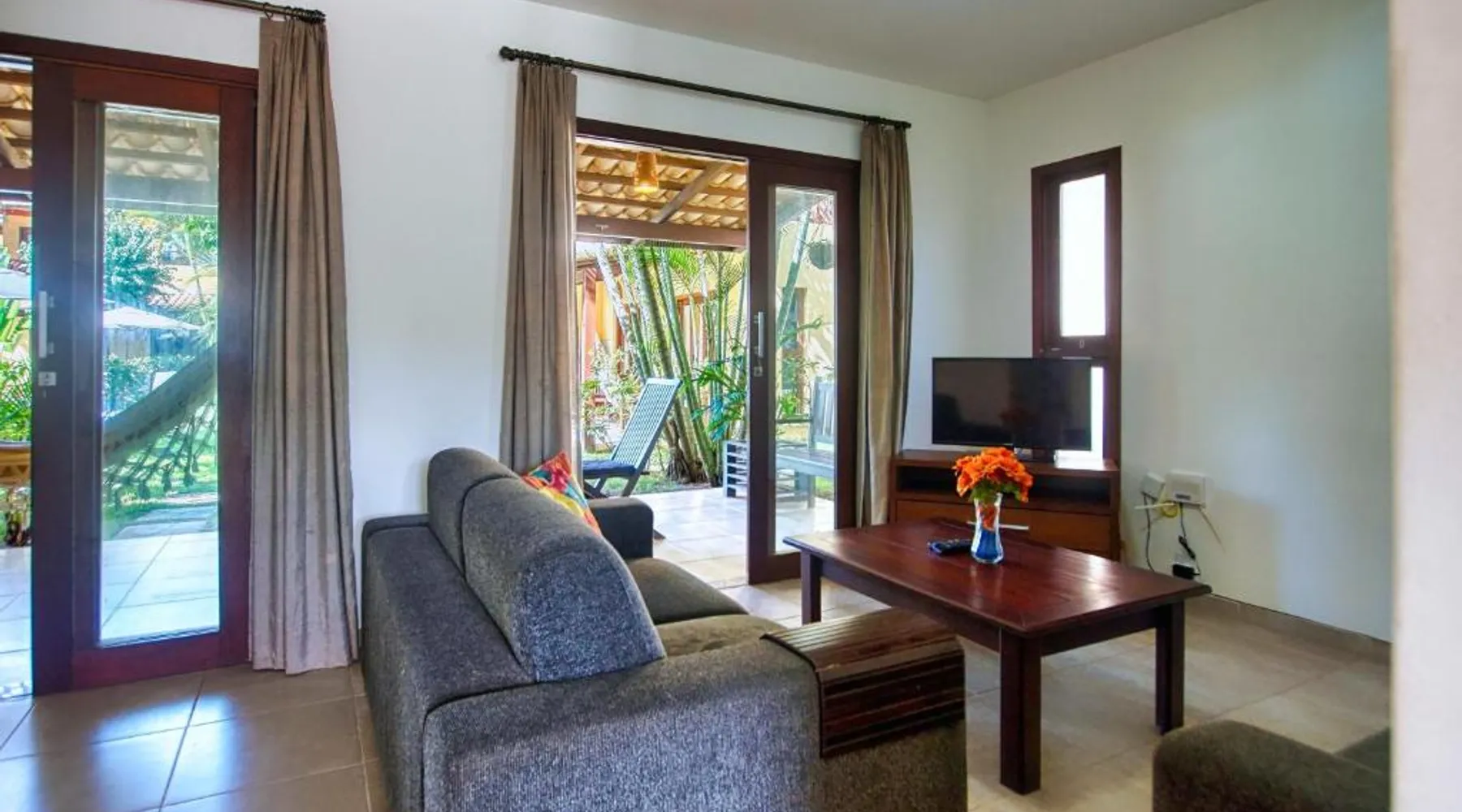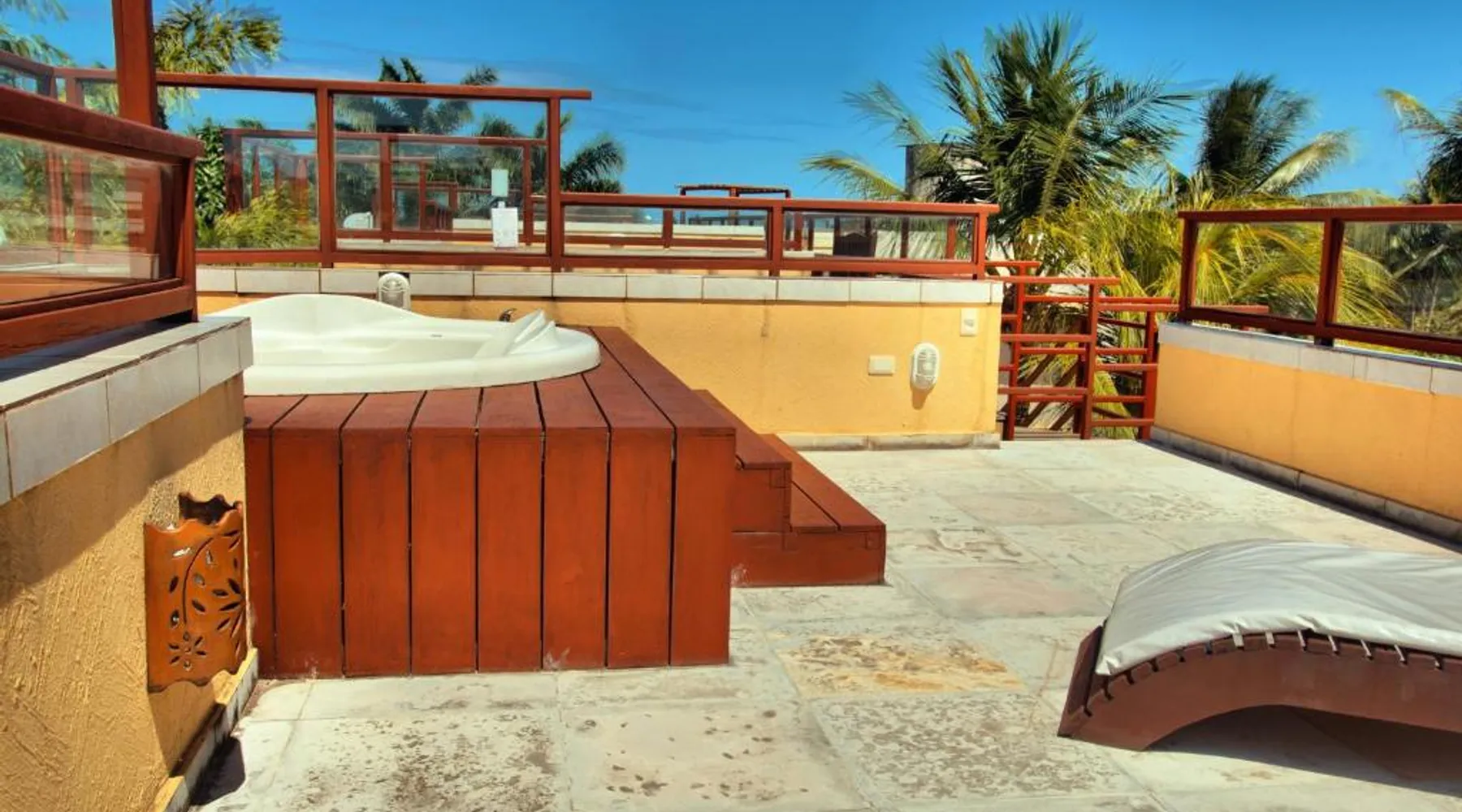 Elegant Holiday Home in Pipa Beach: Unidades Vilas Triplex no Pipa Beleza offers a comfortable holiday home experience in Pipa Beach, Brazil. Guests enjoy a sun terrace, lush garden, and a year-round outdoor swimming pool. Free WiFi is available throughout the property. Modern Amenities and Comfort: The property features a hot tub, solarium, and outdoor seating area. Additional amenities include air-conditioning, a terrace, balcony, and a fully equipped kitchen with a dining area. Free on-site parking is provided for convenience. Nearby Attractions: Amor Beach is a 5-minute walk away, while Chapadao lies 1312 feet from the property. The Ecological Sanctuary is 2.1 mi distant, offering scenic views and diverse wildlife. São Gonçalo do Amarante International Airport is 58 mi from the holiday home. The hot tub and spa bath are the special features of this holiday home. Boasting a private entrance, this spacious holiday home also comes with 1 living room, 3 separate bedrooms and 2 bathrooms with a walk-in shower. In the well-fitted kitchen, guests will find a stovetop, a refrigerator, kitchenware and an oven. Featuring a terrace with garden views, this holiday home also features air conditioning and a flat-screen TV with cable channels. The unit has 4 beds.