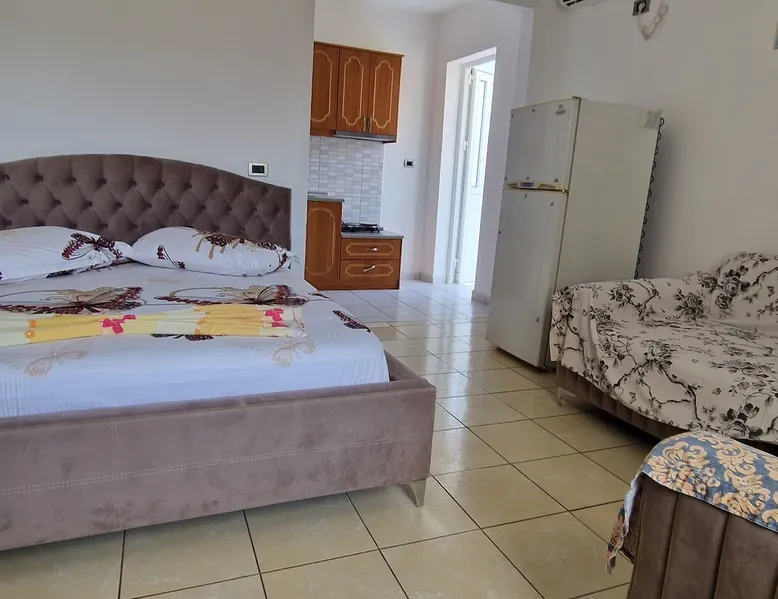 Welcome to our charming holiday home nestled in the heart of Ksamil, just a stone's throw away from some of the most stunning beaches the area has to offer. This cozy and beautifully furnished home provides the perfect retreat for beach enthusiasts and sun-seekers, allowing you to easily access the nearby pristine shores. You'll enjoy breathtaking sunsets, crystal-clear waters, and the convenience of exploring the local attractions, making your stay a delightful and memorable coastal escape. Other things to note Please note that this specific room has a double bed and a corner sofa bed. The corner sofa bed can fit 2 small children or 1 adult. Which is why we have the maximum number of guest set as 4, but this room will not fit 4 adults. We are able to include an additional fold-out bed if required to be able to accommodate 4 adults, however please specify this when booking so we can ensure the fold-out bed is available on your required dates.