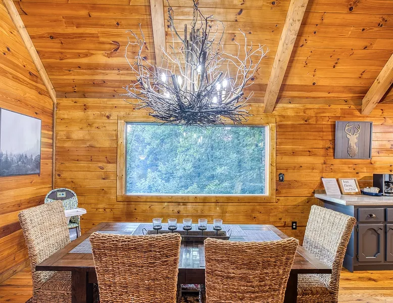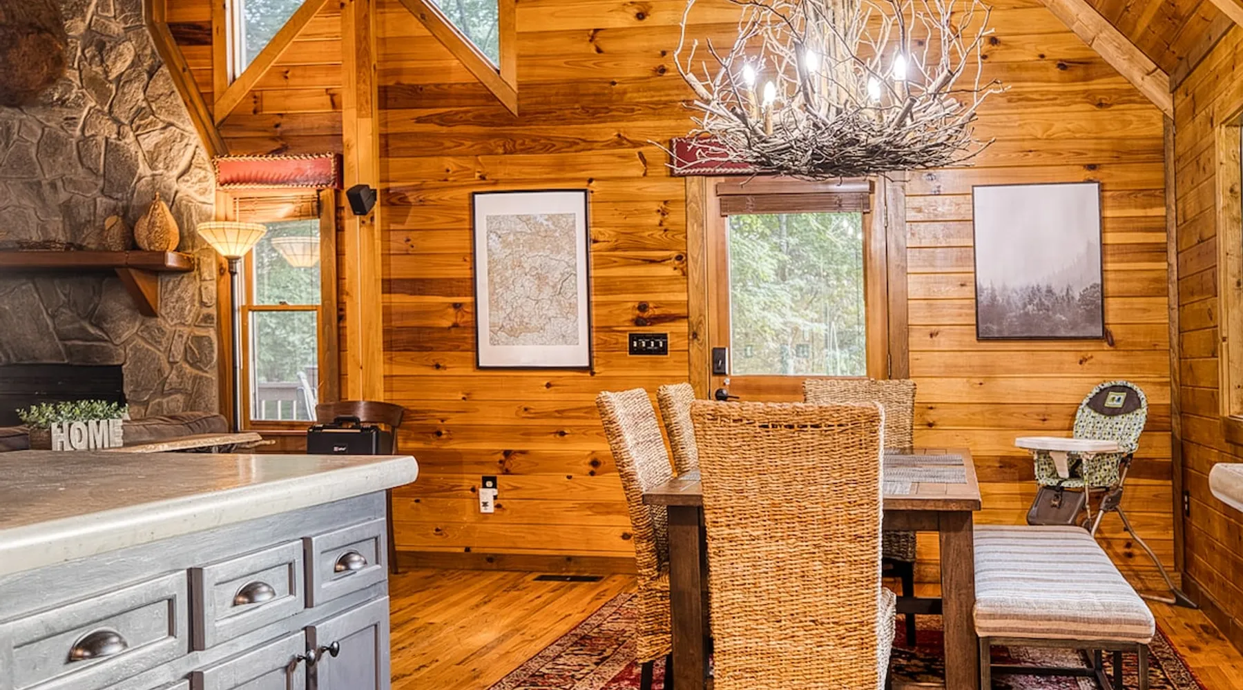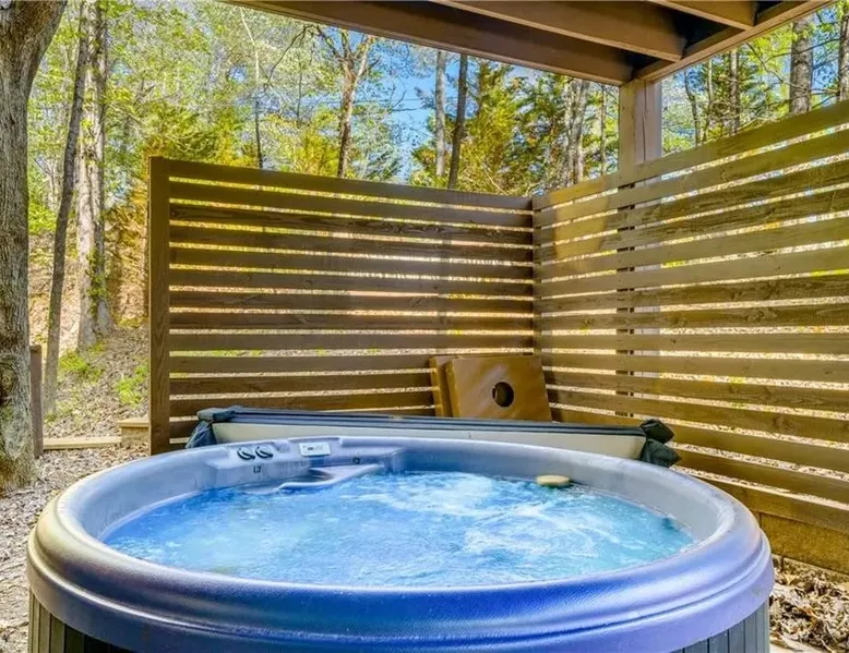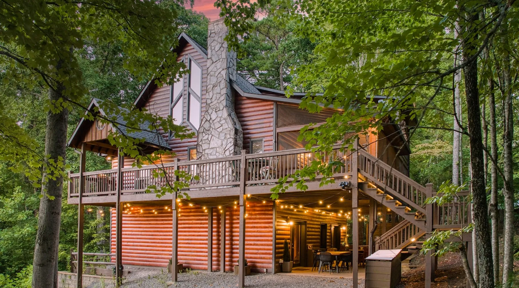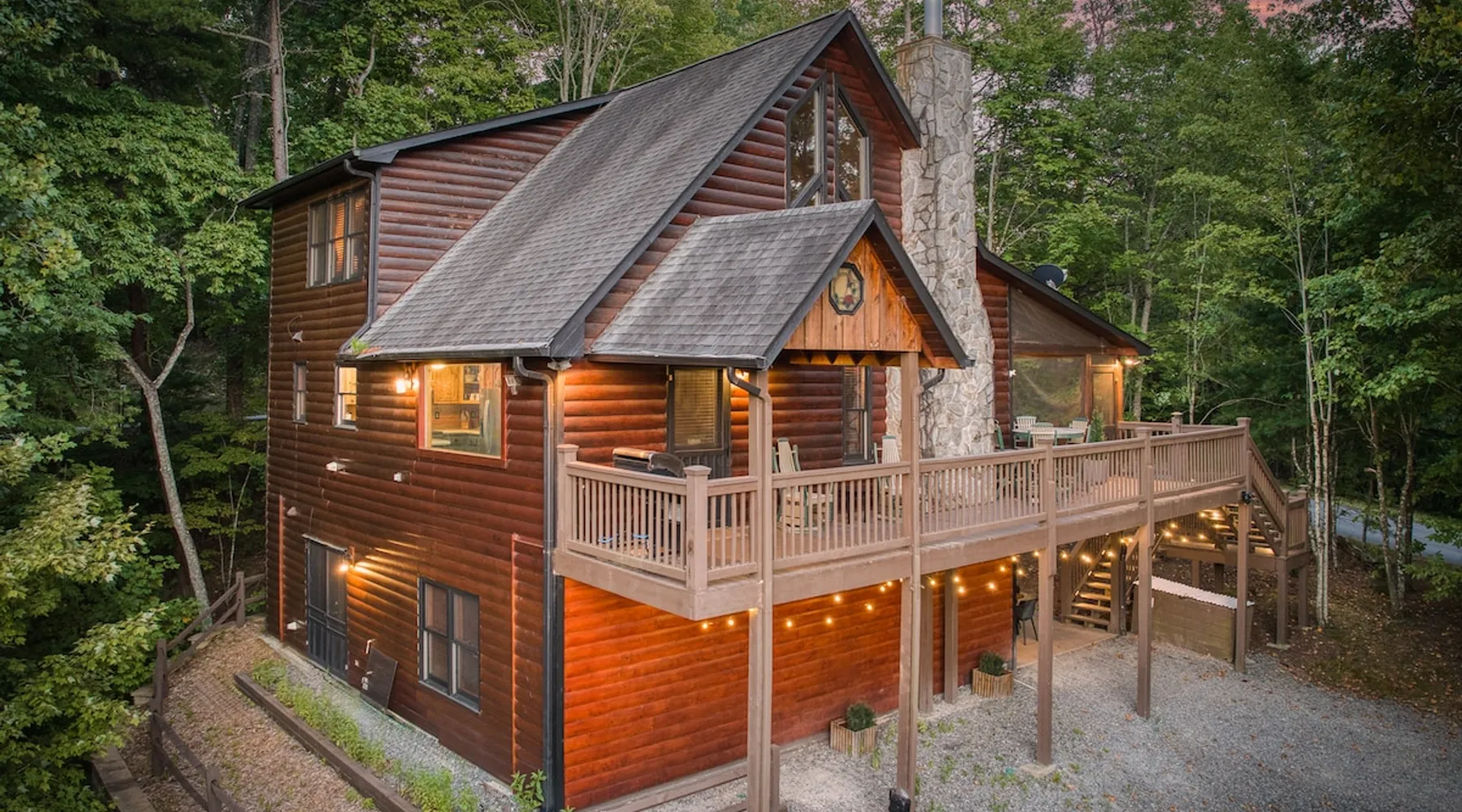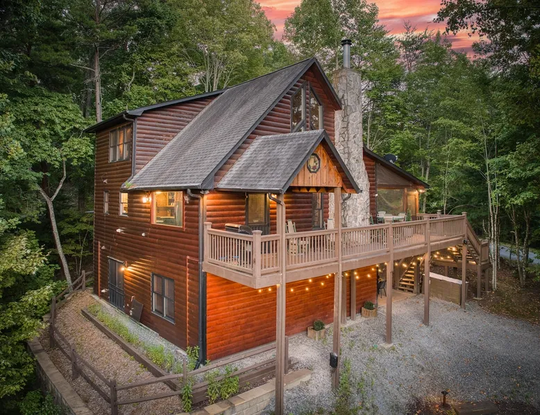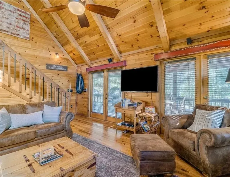 Unwind at Merlot Chateau, a stunning log cabin just minutes from downtown Blue Ridge! This 3-bedroom + loft, 3-bath getaway sleeps 10 and features soaring ceilings, rich hardwood floors, and knotty pine charm. Relax by the stone gas fireplace, soak in the hot tub, or enjoy sunset views from the spacious deck. With Roku TVs, WiFi, a pool table, a cozy fire pit, and plenty of parking, this North Georgia retreat has everything your family needs for a peaceful and memorable mountain escape. The space Features • 4 Bed/3 Bathroom Chalet - Sleeps 10 • Outdoor Hot Tub (Updated in 2025) • Game Room w/ Pool Table, Bar, and Shuffleboard • 2 Gas Fireplaces, Fire Pit • Large Deck for entertaining • High Speed Wi-Fi and Roku Smart TVs • Parking for 5 vehicles • 20 Minutes from Blue Ridge Welcome to Merlot Chateau, a beautifully updated 4-bedroom, 3-bath chalet that sleeps 10 and offers the ultimate blend of rustic charm and modern luxury—just 20 minutes from the heart of Blue Ridge, GA. 🌲 A Peaceful Escape, Perfect for Gathering Tucked away in the serene woods with breathtaking mountain views, this spacious retreat is ideal for families or groups seeking both adventure and relaxation. The large open living area features vaulted ceilings, cozy gas fireplaces, and plenty of natural light. Whether you're enjoying a morning coffee on the deck or stargazing by the fire pit, you’ll find peace in every corner. 🛌 Thoughtful Sleeping Arrangements • Main Level: King bedroom with full bath • Upstairs: Queen bedroom + loft with 2 twin beds & shared bath • Downstairs: Queen bedroom with private bath + twin bunk beds in the game room 🎯 Entertainment for Everyone Your group will love the downstairs game room featuring a pool table and a built-in bar—a perfect spot to unwind after a day of hiking or exploring. Step outside to soak in the brand-new 2025 hot tub, or gather around the outdoor fire pit to share stories under the stars. 📺 Modern Amenities Include: • Roku Smart TVs & High-Speed Wi-Fi • 2 Gas Fireplaces & Fire Pit • Hot Tub (Updated in 2025) • Game Room w/ Pool Table and bar • Spacious Deck for Dining & Lounging • Parking for up to 5 Vehicles 🎒 Explore the Best of Blue Ridge Just 20 minutes from vibrant downtown Blue Ridge, you’ll have easy access to dining, shopping, the Scenic Railway, hiking trails, waterfalls, and more. Whether you're chasing adventure or sipping wine with mountain views, Merlot Chateau puts it all within reach. ✨ Book Your Blue Ridge Getaway Today From family reunions to mountain getaways with friends, Merlot Chateau offers a welcoming space to reconnect, relax, and make unforgettable memories. Come see why our guests return year after year. Guest access You will have the entire Chalet to yourself during your stay! Other things to note Weather Related: The weather in Georgia can be unpredictable. We appreciate if all guest be aware of any weather impacts to their stay. We are not responsible for maintaining the conditions of roads, decks, and driveways in the event of snow, ice, rain, etc. Noise: Quiet time after 10pm. Noise can carry very far in the mountains so please enjoy our cabin but please keep outside noise to a reasonable level. Gas Heater: The downstairs bedroom has a in-wall gas heater that can be used for those colder winter nights. This is to be used by adults only and should not be operated by children or anyone unfamiliar with a gas heater.