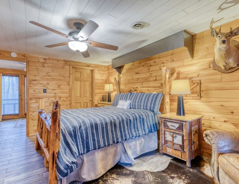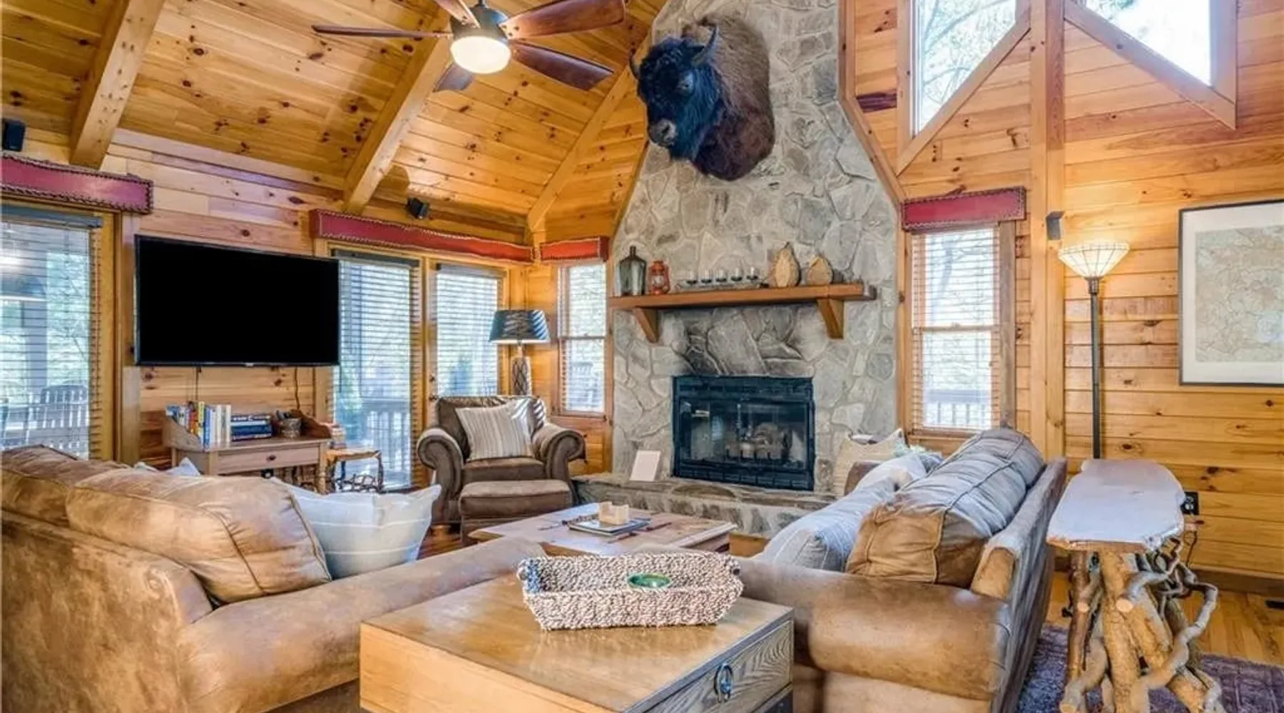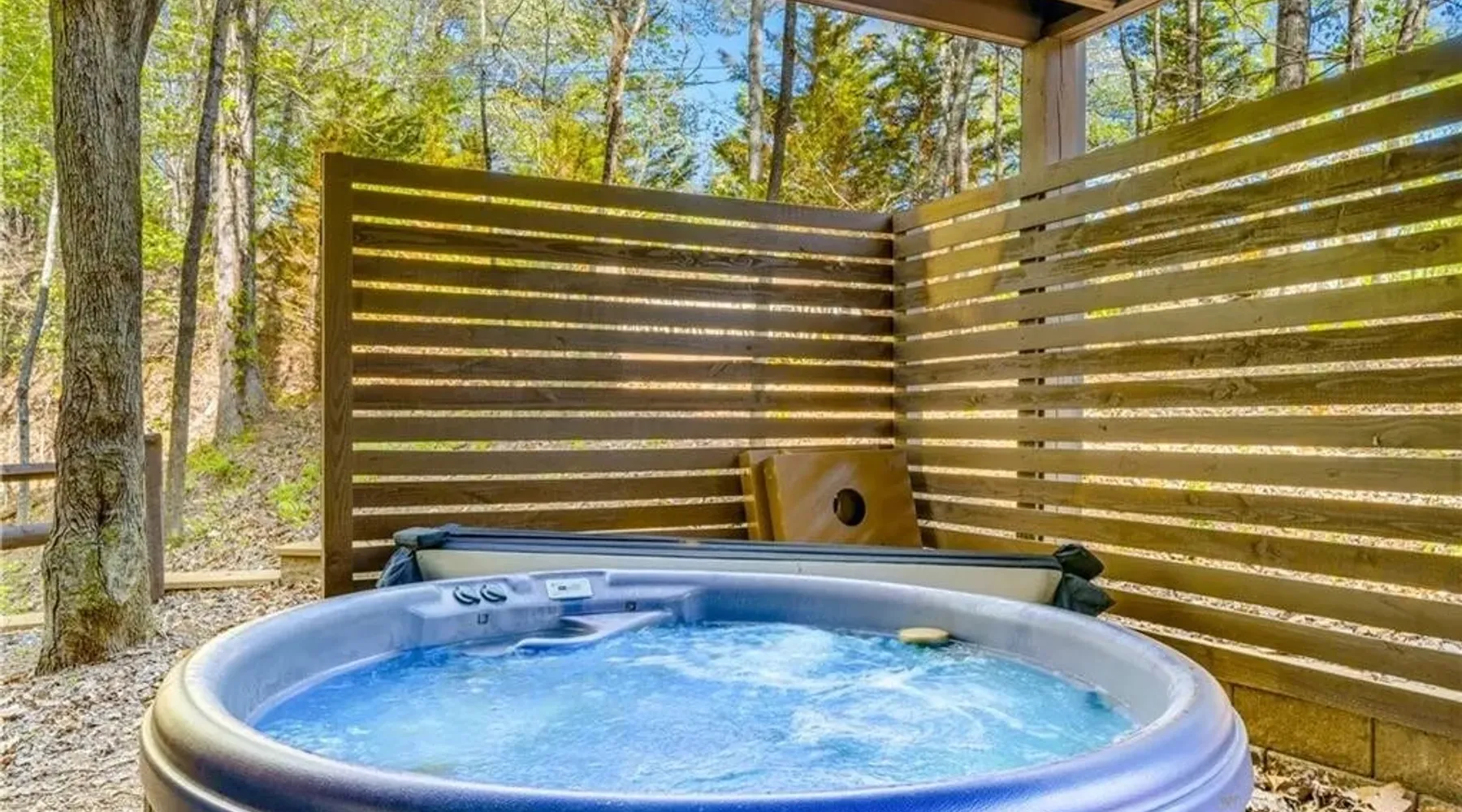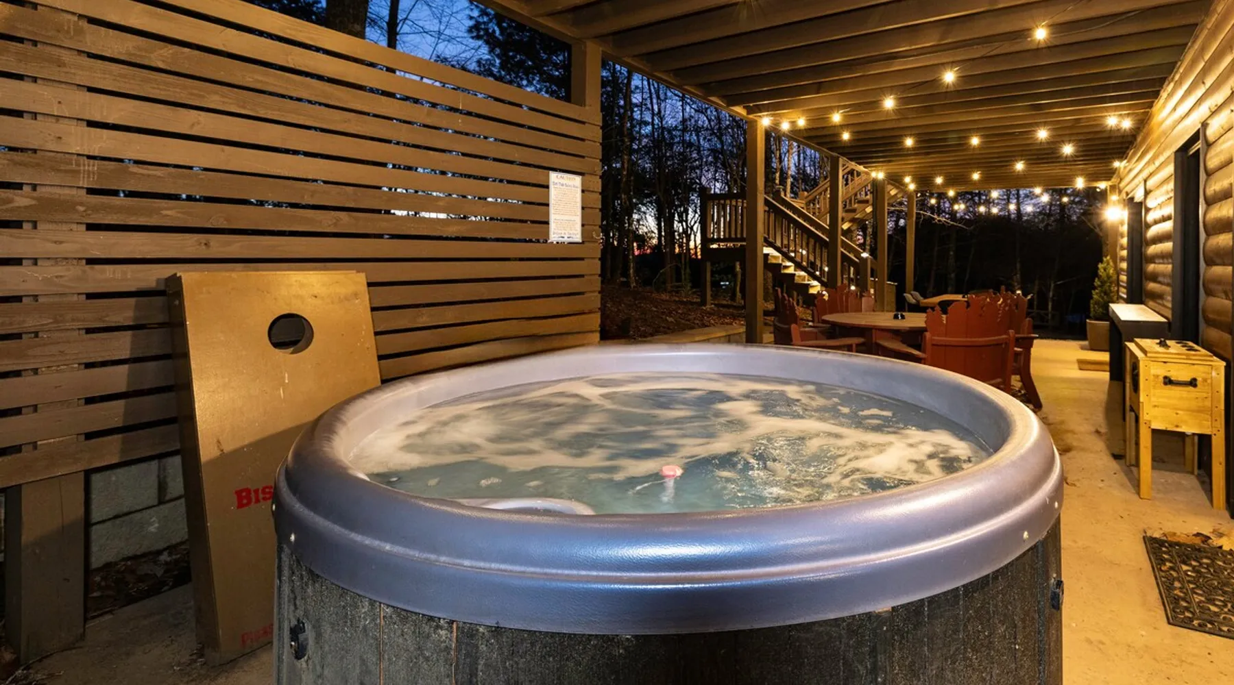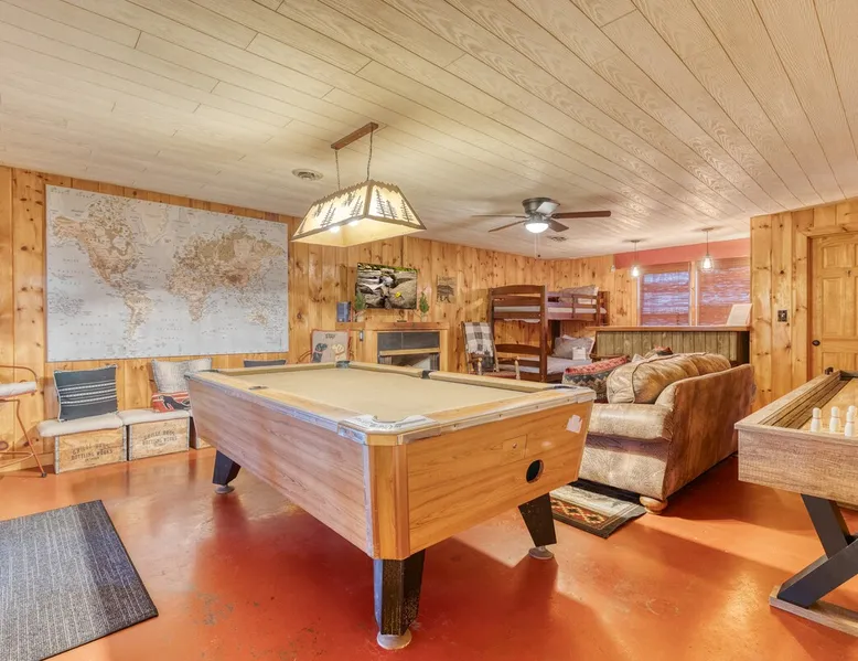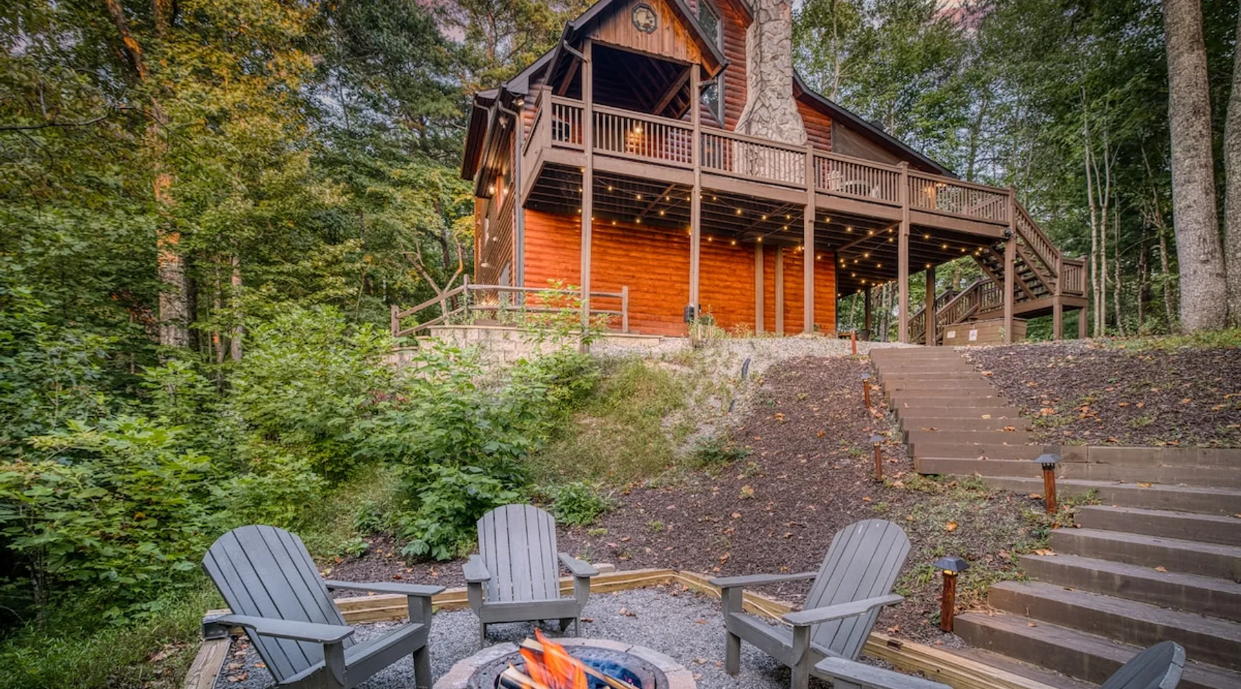 Unwind at Merlot Chateau, a stunning log cabin just minutes from downtown Blue Ridge! This 3-bedroom + loft, 3-bath getaway sleeps 10 and features soaring ceilings, rich hardwood floors, and knotty pine charm. Relax by the stone gas fireplace, soak in the hot tub, or enjoy sunset views from the spacious deck. With Roku TVs, WiFi, a pool table, a cozy fire pit, and plenty of parking, this North Georgia retreat has everything your family needs for a peaceful and memorable mountain escape. The space Features • 4 Bed/3 Bathroom Chalet - Sleeps 10 • Outdoor Hot Tub (Updated in 2025) • Game Room w/ Pool Table, Bar, and Shuffleboard • 2 Gas Fireplaces, Fire Pit • Large Deck for entertaining • High Speed Wi-Fi and Roku Smart TVs • Parking for 5 vehicles • 20 Minutes from Blue Ridge Welcome to Merlot Chateau, a beautifully updated 4-bedroom, 3-bath chalet that sleeps 10 and offers the ultimate blend of rustic charm and modern luxury—just 20 minutes from the heart of Blue Ridge, GA. 🌲 A Peaceful Escape, Perfect for Gathering Tucked away in the serene woods with breathtaking mountain views, this spacious retreat is ideal for families or groups seeking both adventure and relaxation. The large open living area features vaulted ceilings, cozy gas fireplaces, and plenty of natural light. Whether you're enjoying a morning coffee on the deck or stargazing by the fire pit, you’ll find peace in every corner. 🛌 Thoughtful Sleeping Arrangements • Main Level: King bedroom with full bath • Upstairs: Queen bedroom + loft with 2 twin beds & shared bath • Downstairs: Queen bedroom with private bath + twin bunk beds in the game room 🎯 Entertainment for Everyone Your group will love the downstairs game room featuring a pool table and a built-in bar—a perfect spot to unwind after a day of hiking or exploring. Step outside to soak in the brand-new 2025 hot tub, or gather around the outdoor fire pit to share stories under the stars. 📺 Modern Amenities Include: • Roku Smart TVs & High-Speed Wi-Fi • 2 Gas Fireplaces & Fire Pit • Hot Tub (Updated in 2025) • Game Room w/ Pool Table and bar • Spacious Deck for Dining & Lounging • Parking for up to 5 Vehicles 🎒 Explore the Best of Blue Ridge Just 20 minutes from vibrant downtown Blue Ridge, you’ll have easy access to dining, shopping, the Scenic Railway, hiking trails, waterfalls, and more. Whether you're chasing adventure or sipping wine with mountain views, Merlot Chateau puts it all within reach. ✨ Book Your Blue Ridge Getaway Today From family reunions to mountain getaways with friends, Merlot Chateau offers a welcoming space to reconnect, relax, and make unforgettable memories. Come see why our guests return year after year. Guest access You will have the entire Chalet to yourself during your stay! Other things to note Weather Related: The weather in Georgia can be unpredictable. We appreciate if all guest be aware of any weather impacts to their stay. We are not responsible for maintaining the conditions of roads, decks, and driveways in the event of snow, ice, rain, etc. Noise: Quiet time after 10pm. Noise can carry very far in the mountains so please enjoy our cabin but please keep outside noise to a reasonable level. Gas Heater: The downstairs bedroom has a in-wall gas heater that can be used for those colder winter nights. This is to be used by adults only and should not be operated by children or anyone unfamiliar with a gas heater.