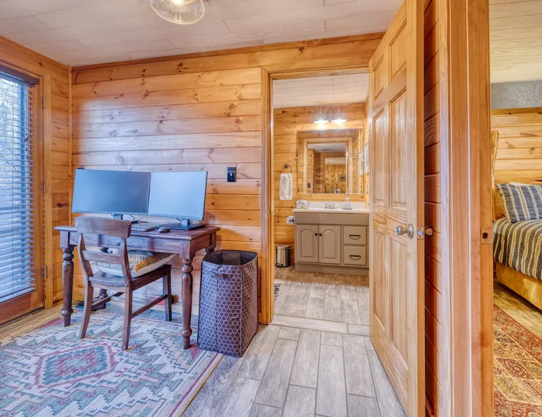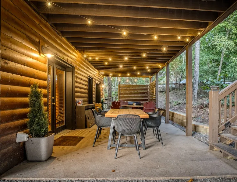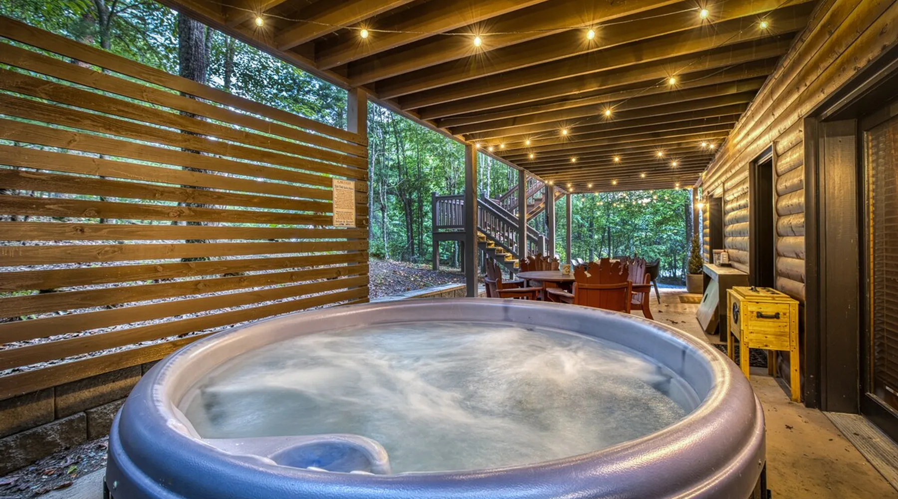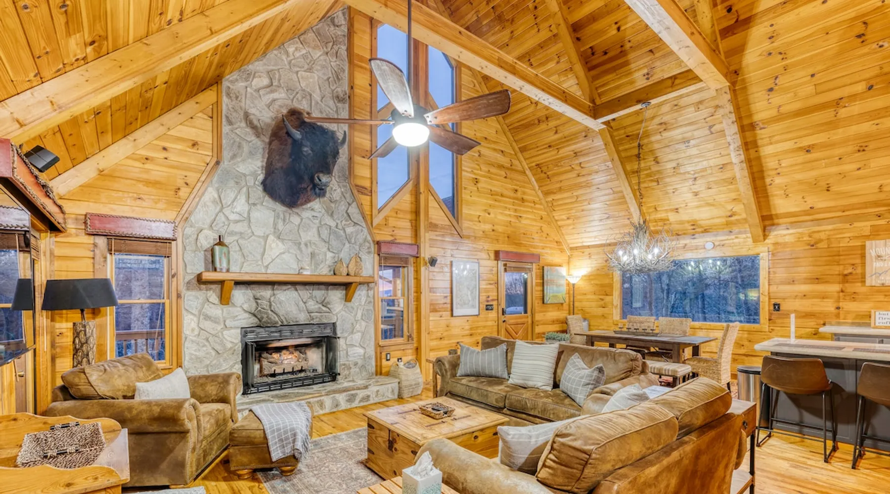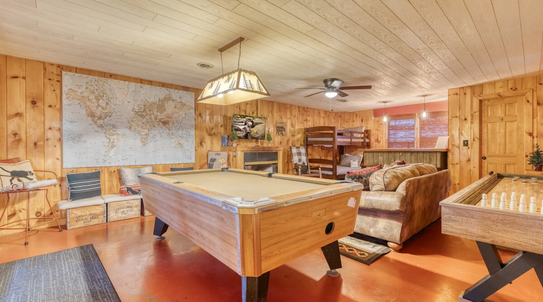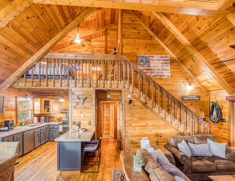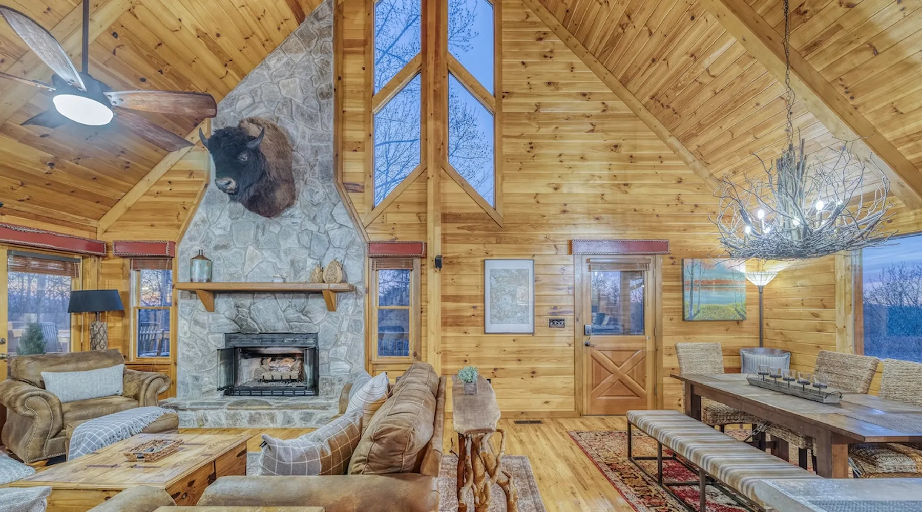 Unwind at Merlot Chateau, a stunning log cabin just minutes from downtown Blue Ridge! This 3-bedroom + loft, 3-bath getaway sleeps 10 and features soaring ceilings, rich hardwood floors, and knotty pine charm. Relax by the stone gas fireplace, soak in the hot tub, or enjoy sunset views from the spacious deck. With Roku TVs, WiFi, a pool table, a cozy fire pit, and plenty of parking, this North Georgia retreat has everything your family needs for a peaceful and memorable mountain escape. The space Features • 4 Bed/3 Bathroom Chalet - Sleeps 10 • Outdoor Hot Tub (Updated in 2025) • Game Room w/ Pool Table, Bar, and Shuffleboard • 2 Gas Fireplaces, Fire Pit • Large Deck for entertaining • High Speed Wi-Fi and Roku Smart TVs • Parking for 5 vehicles • 20 Minutes from Blue Ridge Welcome to Merlot Chateau, a beautifully updated 4-bedroom, 3-bath chalet that sleeps 10 and offers the ultimate blend of rustic charm and modern luxury—just 20 minutes from the heart of Blue Ridge, GA. 🌲 A Peaceful Escape, Perfect for Gathering Tucked away in the serene woods with breathtaking mountain views, this spacious retreat is ideal for families or groups seeking both adventure and relaxation. The large open living area features vaulted ceilings, cozy gas fireplaces, and plenty of natural light. Whether you're enjoying a morning coffee on the deck or stargazing by the fire pit, you’ll find peace in every corner. 🛌 Thoughtful Sleeping Arrangements • Main Level: King bedroom with full bath • Upstairs: Queen bedroom + loft with 2 twin beds & shared bath • Downstairs: Queen bedroom with private bath + twin bunk beds in the game room 🎯 Entertainment for Everyone Your group will love the downstairs game room featuring a pool table and a built-in bar—a perfect spot to unwind after a day of hiking or exploring. Step outside to soak in the brand-new 2025 hot tub, or gather around the outdoor fire pit to share stories under the stars. 📺 Modern Amenities Include: • Roku Smart TVs & High-Speed Wi-Fi • 2 Gas Fireplaces & Fire Pit • Hot Tub (Updated in 2025) • Game Room w/ Pool Table and bar • Spacious Deck for Dining & Lounging • Parking for up to 5 Vehicles 🎒 Explore the Best of Blue Ridge Just 20 minutes from vibrant downtown Blue Ridge, you’ll have easy access to dining, shopping, the Scenic Railway, hiking trails, waterfalls, and more. Whether you're chasing adventure or sipping wine with mountain views, Merlot Chateau puts it all within reach. ✨ Book Your Blue Ridge Getaway Today From family reunions to mountain getaways with friends, Merlot Chateau offers a welcoming space to reconnect, relax, and make unforgettable memories. Come see why our guests return year after year. Guest access You will have the entire Chalet to yourself during your stay! Other things to note Weather Related: The weather in Georgia can be unpredictable. We appreciate if all guest be aware of any weather impacts to their stay. We are not responsible for maintaining the conditions of roads, decks, and driveways in the event of snow, ice, rain, etc. Noise: Quiet time after 10pm. Noise can carry very far in the mountains so please enjoy our cabin but please keep outside noise to a reasonable level. Gas Heater: The downstairs bedroom has a in-wall gas heater that can be used for those colder winter nights. This is to be used by adults only and should not be operated by children or anyone unfamiliar with a gas heater.