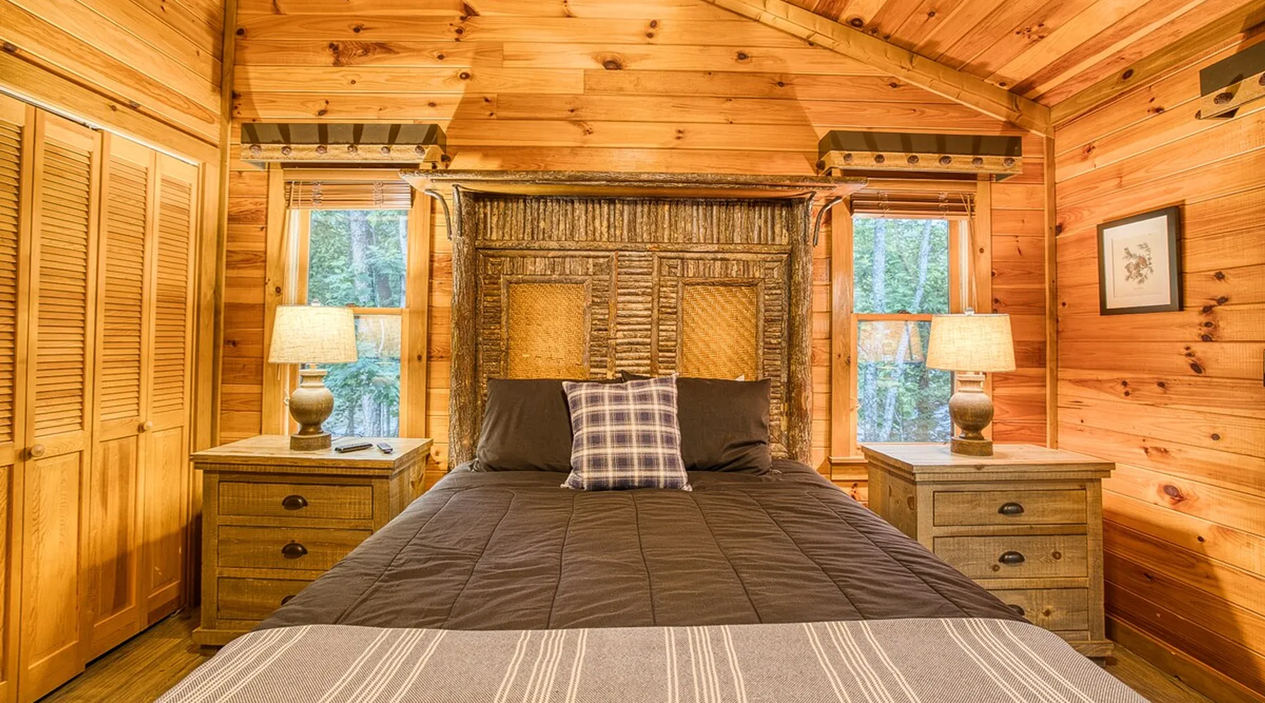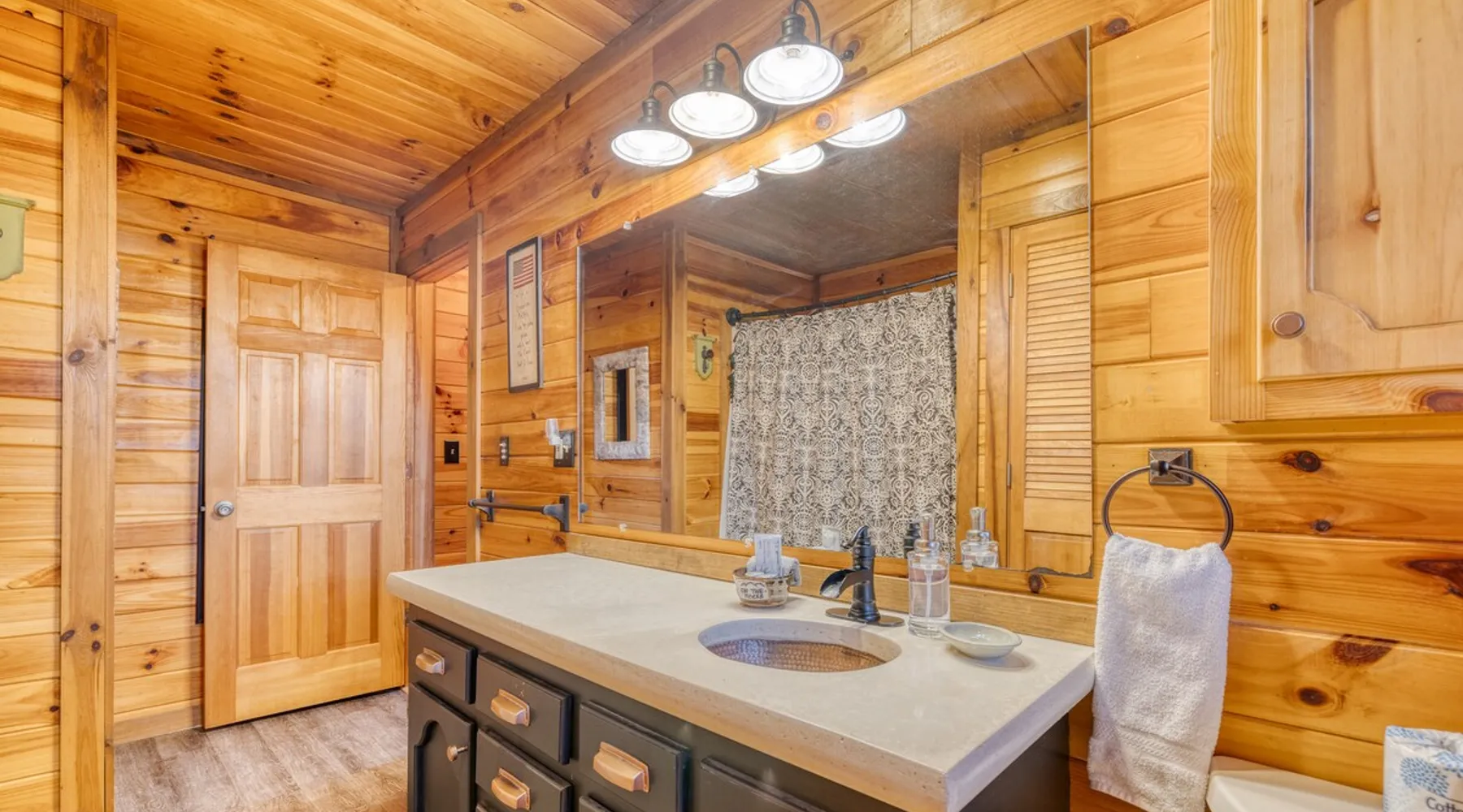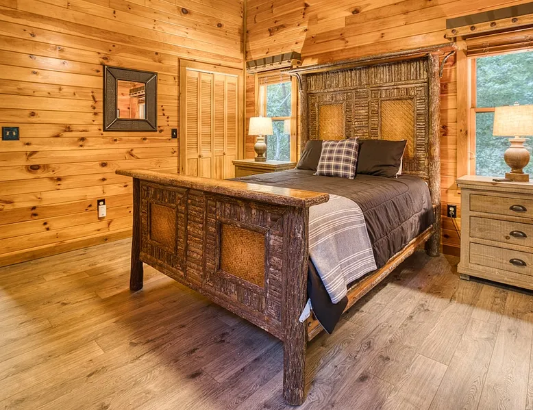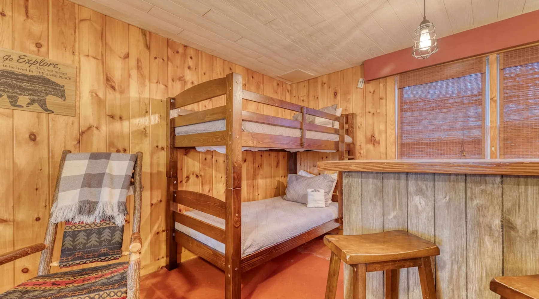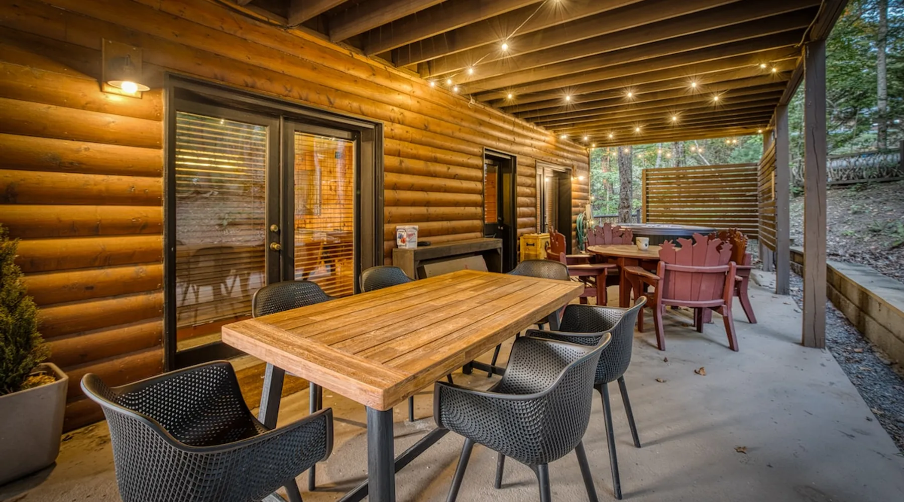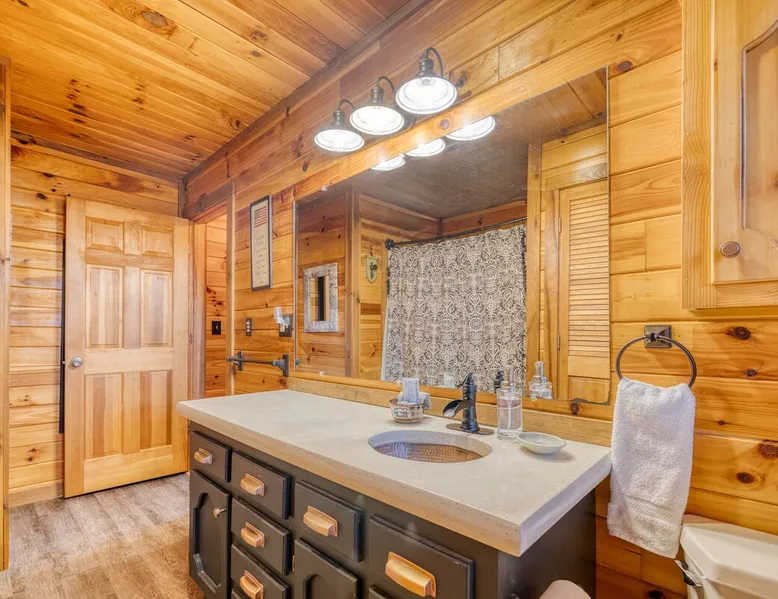 Unwind at Merlot Chateau, a stunning log cabin just minutes from downtown Blue Ridge! This 3-bedroom + loft, 3-bath getaway sleeps 10 and features soaring ceilings, rich hardwood floors, and knotty pine charm. Relax by the stone gas fireplace, soak in the hot tub, or enjoy sunset views from the spacious deck. With Roku TVs, WiFi, a pool table, a cozy fire pit, and plenty of parking, this North Georgia retreat has everything your family needs for a peaceful and memorable mountain escape. The space Features • 4 Bed/3 Bathroom Chalet - Sleeps 10 • Outdoor Hot Tub (Updated in 2025) • Game Room w/ Pool Table, Bar, and Shuffleboard • 2 Gas Fireplaces, Fire Pit • Large Deck for entertaining • High Speed Wi-Fi and Roku Smart TVs • Parking for 5 vehicles • 20 Minutes from Blue Ridge Welcome to Merlot Chateau, a beautifully updated 4-bedroom, 3-bath chalet that sleeps 10 and offers the ultimate blend of rustic charm and modern luxury—just 20 minutes from the heart of Blue Ridge, GA. 🌲 A Peaceful Escape, Perfect for Gathering Tucked away in the serene woods with breathtaking mountain views, this spacious retreat is ideal for families or groups seeking both adventure and relaxation. The large open living area features vaulted ceilings, cozy gas fireplaces, and plenty of natural light. Whether you're enjoying a morning coffee on the deck or stargazing by the fire pit, you’ll find peace in every corner. 🛌 Thoughtful Sleeping Arrangements • Main Level: King bedroom with full bath • Upstairs: Queen bedroom + loft with 2 twin beds & shared bath • Downstairs: Queen bedroom with private bath + twin bunk beds in the game room 🎯 Entertainment for Everyone Your group will love the downstairs game room featuring a pool table and a built-in bar—a perfect spot to unwind after a day of hiking or exploring. Step outside to soak in the brand-new 2025 hot tub, or gather around the outdoor fire pit to share stories under the stars. 📺 Modern Amenities Include: • Roku Smart TVs & High-Speed Wi-Fi • 2 Gas Fireplaces & Fire Pit • Hot Tub (Updated in 2025) • Game Room w/ Pool Table and bar • Spacious Deck for Dining & Lounging • Parking for up to 5 Vehicles 🎒 Explore the Best of Blue Ridge Just 20 minutes from vibrant downtown Blue Ridge, you’ll have easy access to dining, shopping, the Scenic Railway, hiking trails, waterfalls, and more. Whether you're chasing adventure or sipping wine with mountain views, Merlot Chateau puts it all within reach. ✨ Book Your Blue Ridge Getaway Today From family reunions to mountain getaways with friends, Merlot Chateau offers a welcoming space to reconnect, relax, and make unforgettable memories. Come see why our guests return year after year. Guest access You will have the entire Chalet to yourself during your stay! Other things to note Weather Related: The weather in Georgia can be unpredictable. We appreciate if all guest be aware of any weather impacts to their stay. We are not responsible for maintaining the conditions of roads, decks, and driveways in the event of snow, ice, rain, etc. Noise: Quiet time after 10pm. Noise can carry very far in the mountains so please enjoy our cabin but please keep outside noise to a reasonable level. Gas Heater: The downstairs bedroom has a in-wall gas heater that can be used for those colder winter nights. This is to be used by adults only and should not be operated by children or anyone unfamiliar with a gas heater.