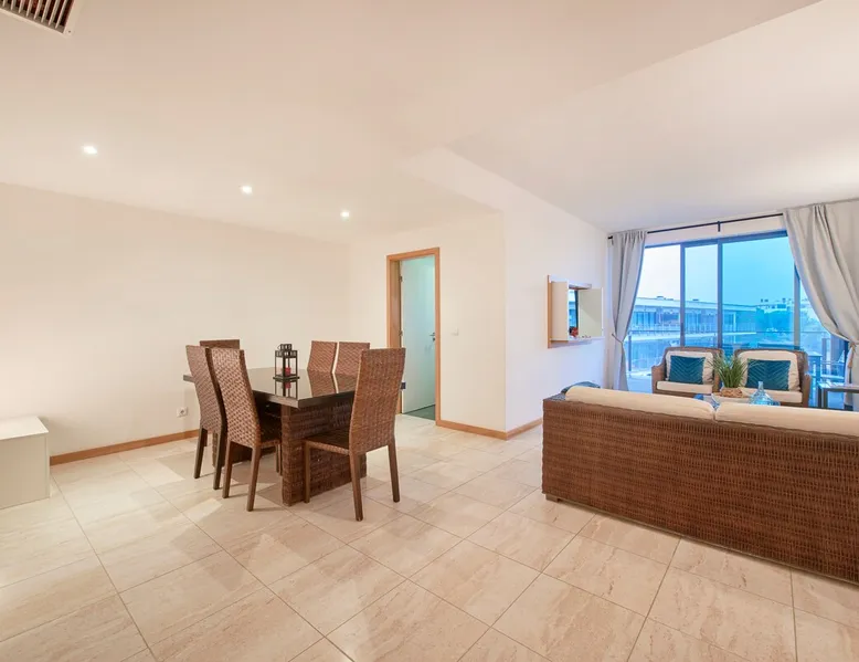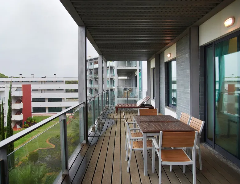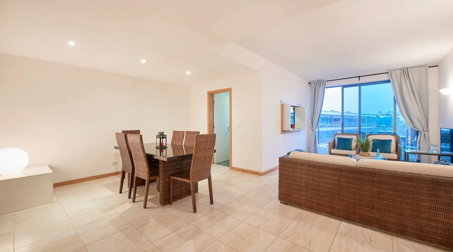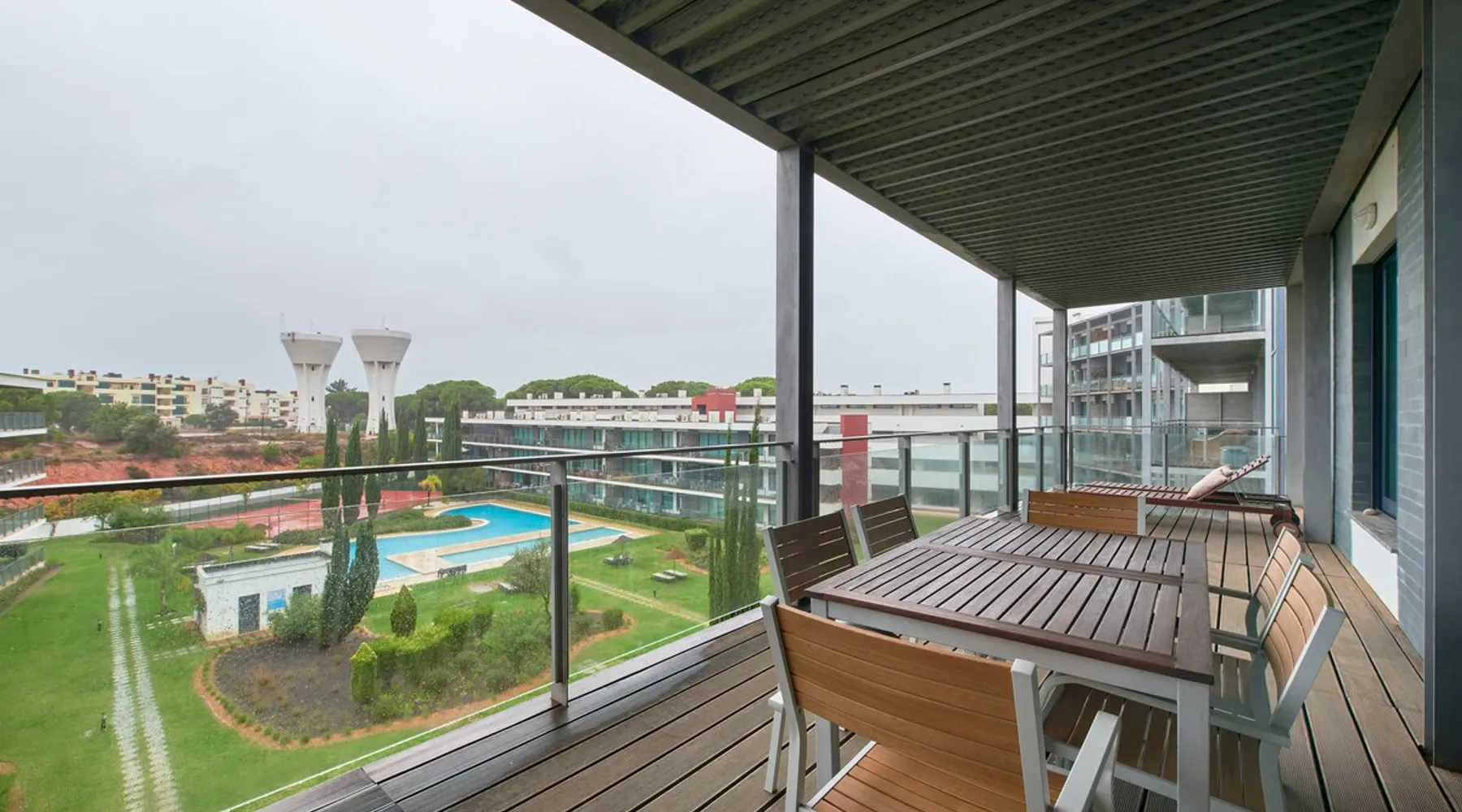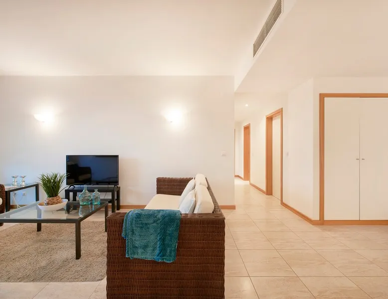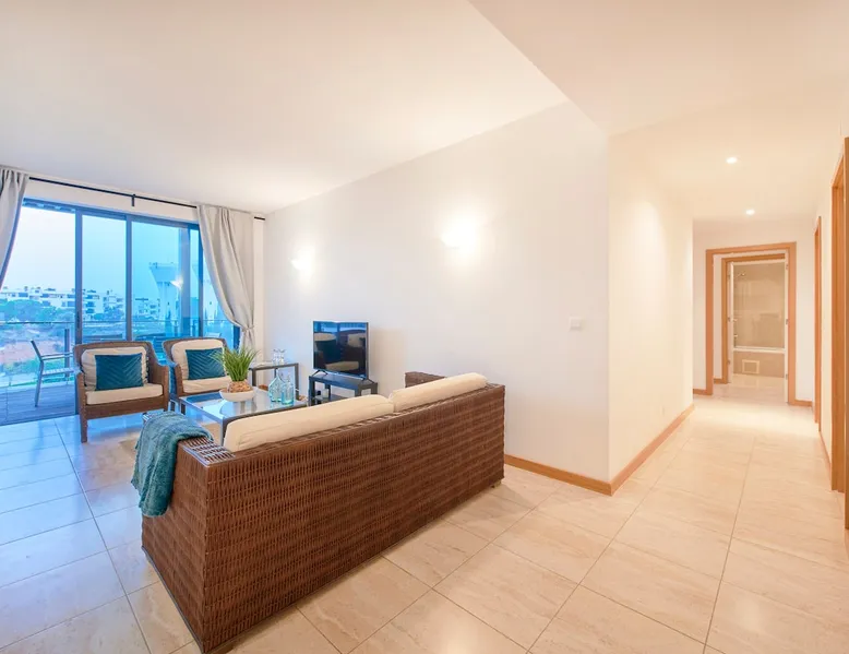 Fantastic apartment located in the Residence Golf Club in Vilamoura 4 km from the beach (Praia da Falésia), 4 km from the marina and 1 km from the supermarket and where the best golf courses are located. The accommodation consists of two bedrooms, one of them en-suite, a living and dining room (including a sofa bed), an equipped kitchen and a toilet. There are two extra beds that can be used. To mention the terrace with more than 30m2 where you can enjoy unforgettable moments with family or friends!! . Registration Details Exempt
