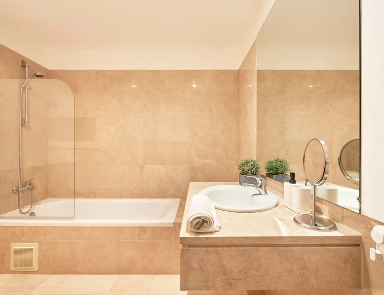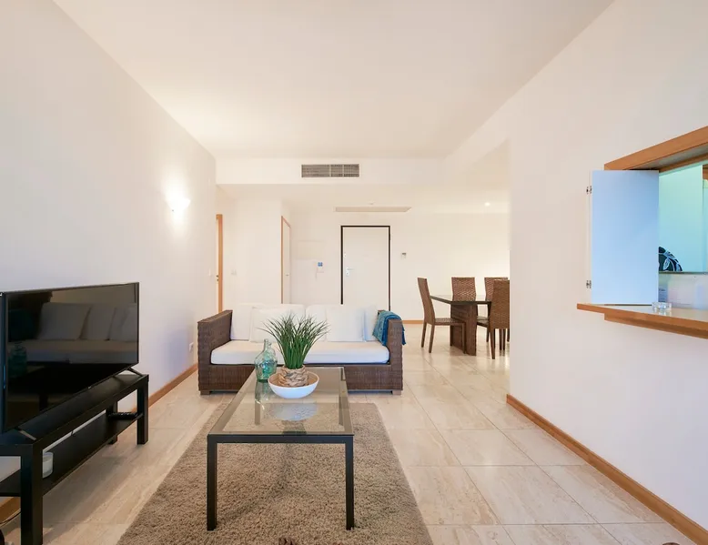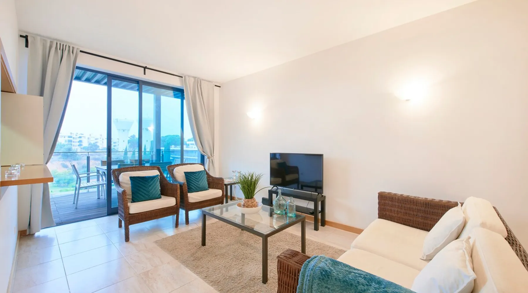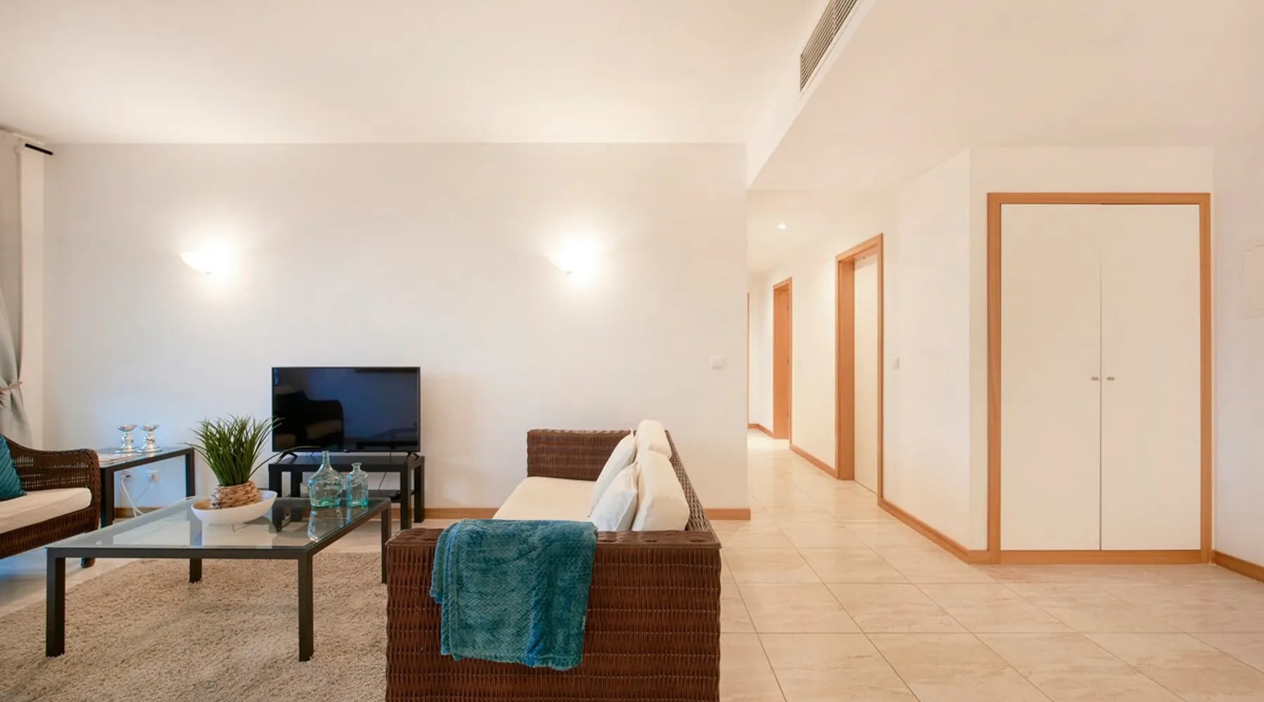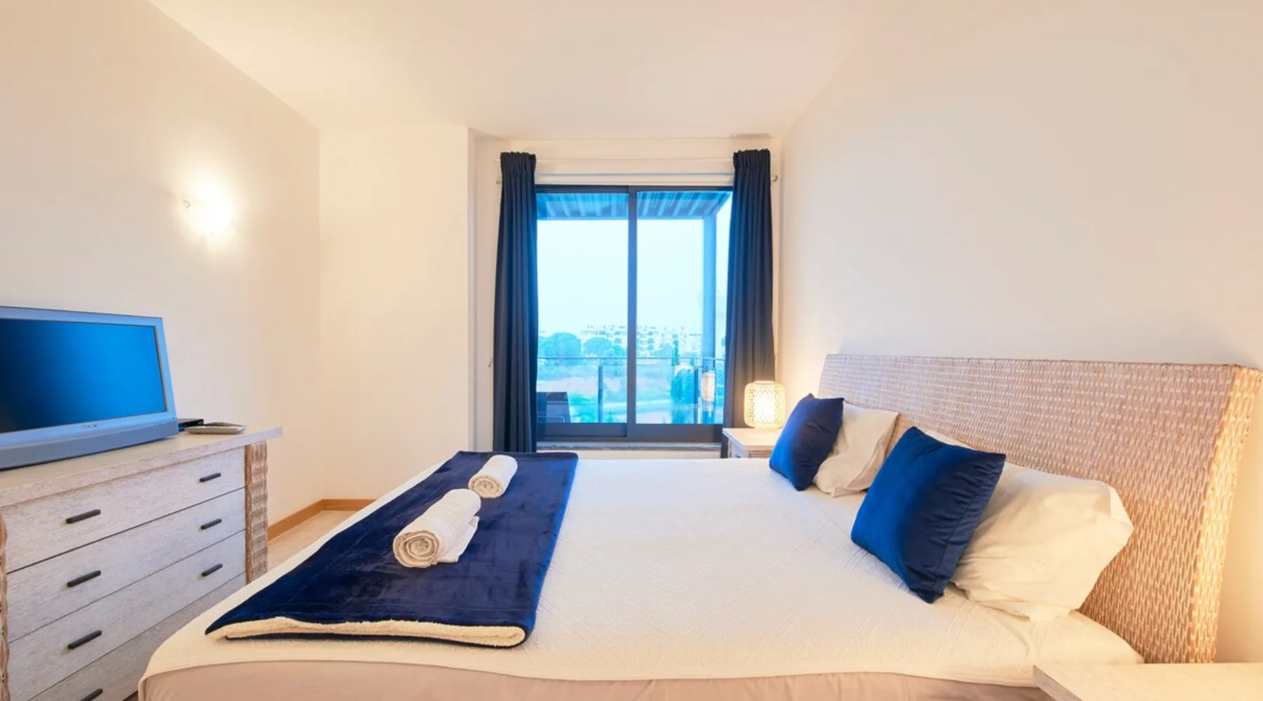 Fantastic apartment located in the Residence Golf Club in Vilamoura 4 km from the beach (Praia da Falésia), 4 km from the marina and 1 km from the supermarket and where the best golf courses are located. The accommodation consists of two bedrooms, one of them en-suite, a living and dining room (including a sofa bed), an equipped kitchen and a toilet. There are two extra beds that can be used. To mention the terrace with more than 30m2 where you can enjoy unforgettable moments with family or friends!! . Registration Details Exempt