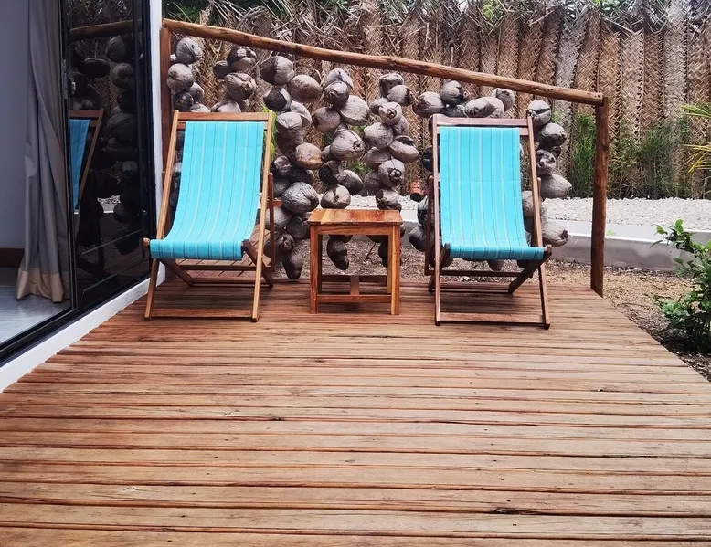 If you're looking for the perfect place to relax and unwind in comfort, then look no further than Casa Blanco. This is newly built modern accommodation with stylish private bathrooms, generous storage spaces, modern kitchens and Starlink Wi-Fi! Yes, it truly is a tropical oasis in paradise. The space We are located a few minutes walk from beautiful Tofo beach, behind the primary dune. You also have stunning views of the sunset across the marshes, which you can enjoy from the comfort of your private terrace. It is a 20 minute walk along the quiet beach (or a 5 minute drive) to Tofo market and the bustling centre of town, with all its barracas, restaurants, bars and shops. Here you can find a range of foods from all over the world, as well as gifts for all the family. Alternatively, you can learn to surf in Tofo bay (which is perfect for beginners, Tofinho is for the more advanced surfers) or go diving at the famous local reefs in search of whale sharks, mantas, turtles or Humpback Whales (in winter). Kite surfing, Horse riding or Quad biking are also available with our local contacts. Guest access Guests have access to the entire Villa and to the braai / barbecue area, as well as various garden and relaxation spots.