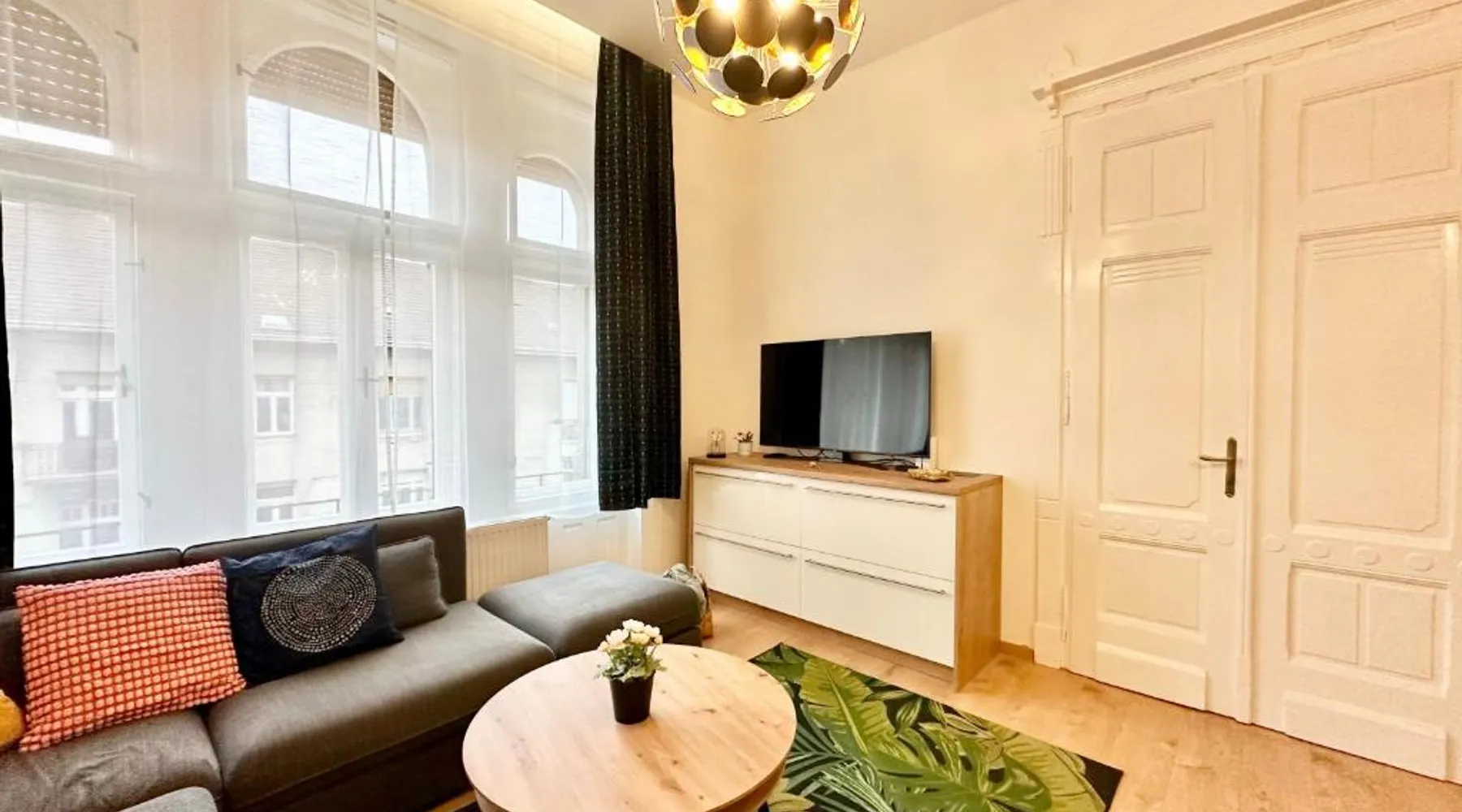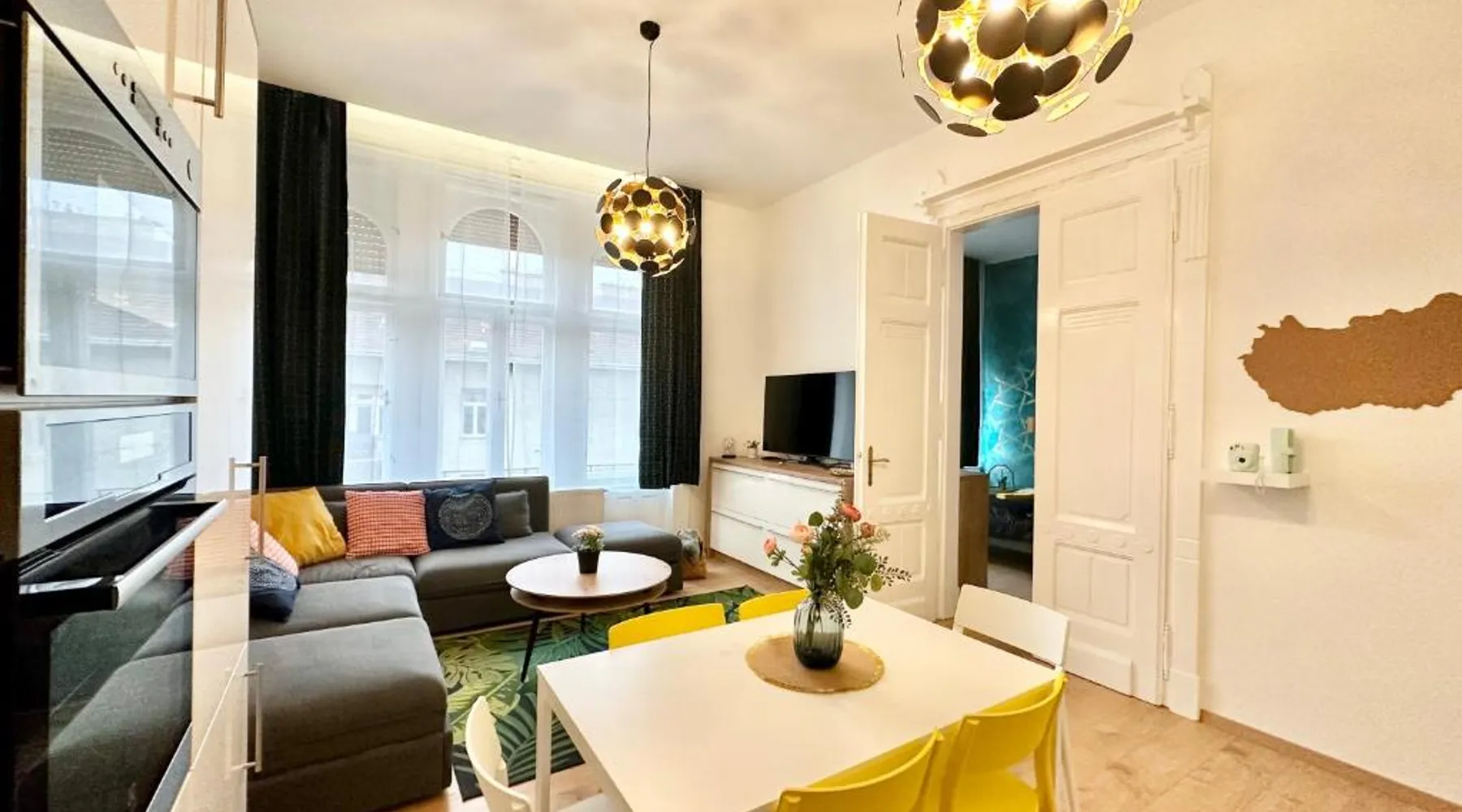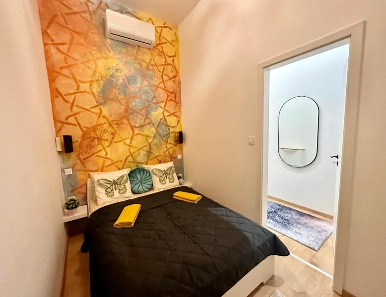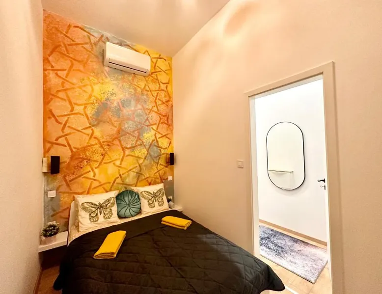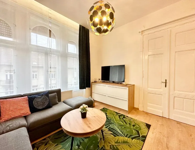 Spacious and Modern: Bakáts House II freeparking II 8ppl offers a spacious, recently renovated apartment in Budapest city center. The property features three bedrooms and two bathrooms, a fully equipped kitchen, and a comfortable living room. Essential Facilities: Guests enjoy free WiFi, air-conditioning, and a elevator. The apartment includes a washing machine, dishwasher, microwave, and TV. Private off-site parking is available at no extra cost. Prime Location: Located less than 0.6 mi from the Hungarian National Museum and 1.1 mi from Dohany Street Synagogue, the apartment is 7.5 mi from Budapest Ferenc Liszt International Airport. Nearby attractions include Blaha Lujza Square and Gellért Hill. Guest Satisfaction: Highly rated for its convenient location, room cleanliness, and nearby options for food and drinks. The fully equipped kitchen has a stovetop, a dishwasher, kitchenware and an oven. The spacious apartment features air conditioning, a washing machine, a private entrance, a coffee machine and a flat-screen TV. The unit has 5 beds.