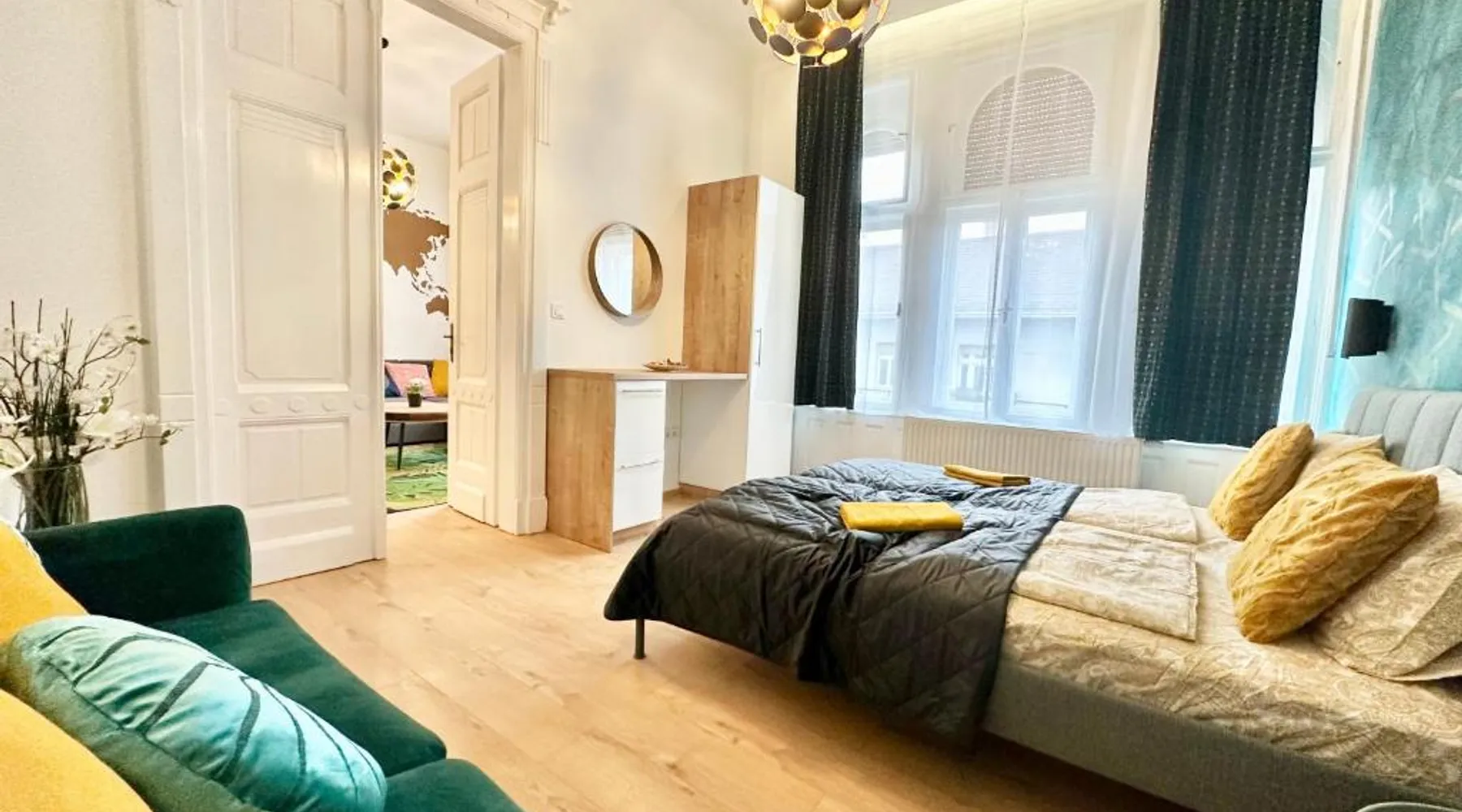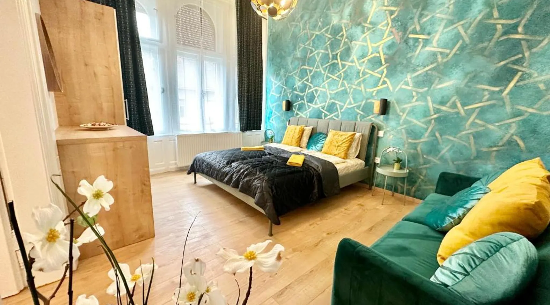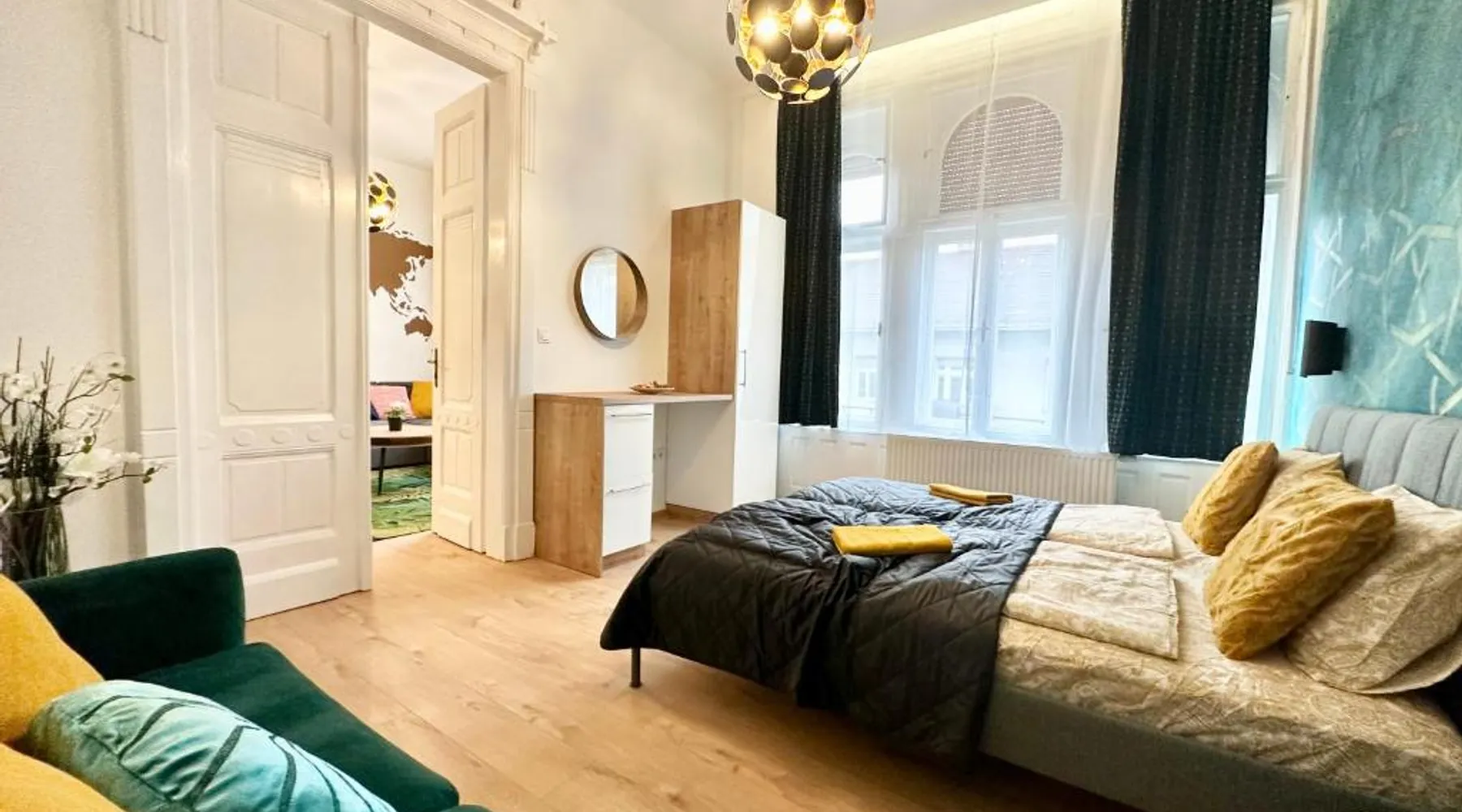 Spacious and Modern: Bakáts House II freeparking II 8ppl offers a spacious, recently renovated apartment in Budapest city center. The property features three bedrooms and two bathrooms, a fully equipped kitchen, and a comfortable living room. Essential Facilities: Guests enjoy free WiFi, air-conditioning, and a elevator. The apartment includes a washing machine, dishwasher, microwave, and TV. Private off-site parking is available at no extra cost. Prime Location: Located less than 0.6 mi from the Hungarian National Museum and 1.1 mi from Dohany Street Synagogue, the apartment is 7.5 mi from Budapest Ferenc Liszt International Airport. Nearby attractions include Blaha Lujza Square and Gellért Hill. Guest Satisfaction: Highly rated for its convenient location, room cleanliness, and nearby options for food and drinks. The fully equipped kitchen has a stovetop, a dishwasher, kitchenware and an oven. The spacious apartment features air conditioning, a washing machine, a private entrance, a coffee machine and a flat-screen TV. The unit has 5 beds.