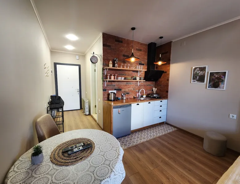 Studio with an area of 33 sq.m. is located on the 7th floor in a new building on Lermontov 12, at the intersection with Gorgiladze street. You'll have a great time in this comfortable place to stay The space The apartment has a double bed, kitchenette, bathroom and large balcony with sea and city view. The balcony has a table and chairs for a comfortable stay. The apartment has air conditioning. There is wifi, internet optics, stable. In winter, we provide a heater that heats the entire apartment very well. For your convenience, there is a washing machine, a clothes dryer. Guest access We are in a beautiful location. There are a lot of shops, cafes, restaurants, public transport stop nearby. The house is new and comfortable. Other things to note For rentals of 27 nights or less, utilities are included. When renting for 28 nights or more, very large discounts are automatically applied and guests pay for utilities. Guests pay for electricity, elevator, internet. Regarding the cost of renting, you can see everything On the airbnb website, choosing the dates you need and clicking the "book" button and the site, in the details of the reservation, you will show the exact amount and schedule of your payments, taking into account discounts for long-term rentals. The price depends on the specific dates of the reservation. We have already set base prices in airbnb depending on the season and discounts for long-term rentals, which are automatically applied. The longer the rental, the cheaper the closer to the tourist season, the more expensive. The minimum price is from the end of October to May 1, then the price rises smoothly. The maximum price is in July and August, then it goes down smoothly. The maximum discount percentage is included for rentals of 3 months or more. We have on the listing that check-in is possible after 15:00 and check-out is before 12:00, three hours minimum is necessary to clean between guests. At 12:00 the cleaner comes to prepare the apartment for the next check-in. For rentals of 27 nights or less, utilities are included. When renting for 28 nights or more, large discounts are automatically applied, while guests pay for utilities consumed according to the rates and meter readings. Utility rates at the moment: Gas: 0.57 gel per 1 cubic meter. Electricity: 0.24 gel per unit. Water: 0.55 gel per 1 cubic meter. The internet fare may vary depending on the speed you select: 40 gel per month at 20mbps 50 gel at 50 Mbps; 100 gel per month at 100 Mbps The cost of utilities depends solely on the chosen Internet speed rate and the intensity of your electricity, gas and water consumption. Our utilities are relatively small and guests pay for them to be more attentive to the property, so that when leaving the house, they do not forget to turn off electrical appliances and close the water. The main consumption in winter is for heating, in summer for air conditioning. In spring and autumn, utilities are minimal, since heating is no longer needed, and cooling is not needed yet. Consumption for utilities is different for everyone, on average, it takes from $30 to $80 per month.
