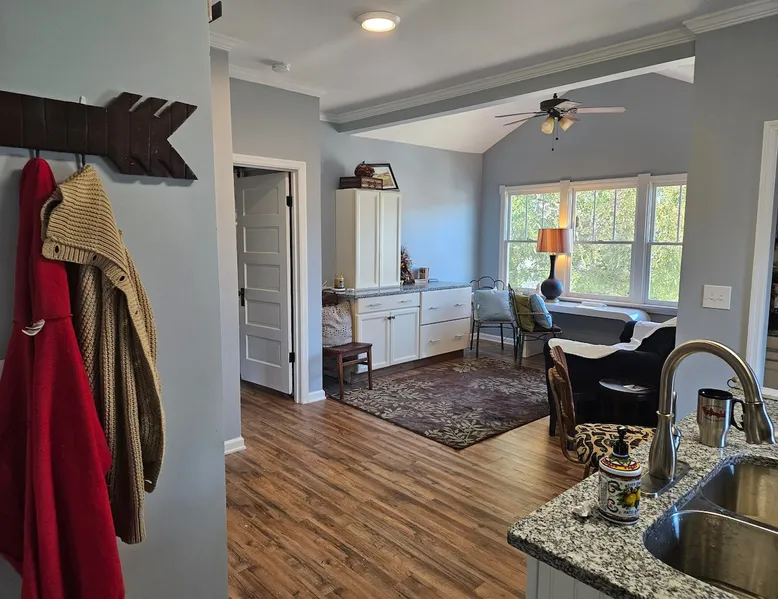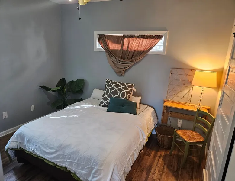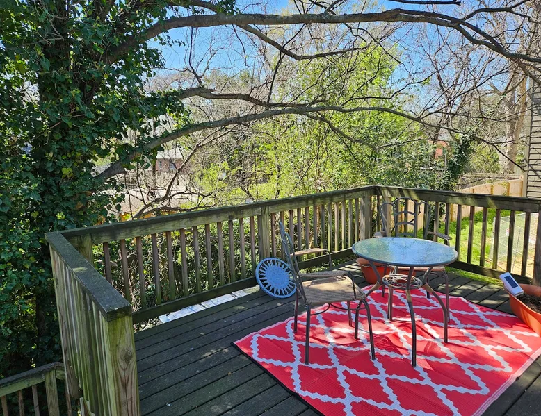 Enjoy easy access to everything from this perfectly located home base. Our family uses this space as our home away from home! No need to bring your car but there is plenty of parking next to your entrance. This space is bright and airy with tons of natural light. Huge back deck makes you feel like you are in a tree house. Bus stop is one block away and citrix electric bikes are available in 4 blocks and in Historic Oakwood. Fully stocked kitchen with full sized fridge and built-in dishwasher! The space Walk to downtown Raleigh. Transfer co food hall or just stroll through Historic Oakwood 5 blocks away. Grab a quick Bojangles biscuit and a tea if you aren't up for cooking in the mornings. Guest access There is enough space in the walk in closet for the folding cot to accommodate a child.