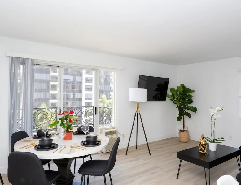 This is a beautiful private room in a fully furnished co-living 4 bedroom/2bathroom apartment. It is close distance to UCLA and has other roommates from UCLA. We are looking for a student or a young professional to share the home with. Building has a doorman, gym, courtyard. Walk to campus in 15 minutes, as well as Trader Joes, Wholefoods, Target etc. The space The private room includes.. - comfortable full size bed - desk to work or study - a TV - large sliding door closet You will be sharing a bathroom w/ 2 other roommates. Other things to note This is a co-living space, please be sure to review the full house rules section prior to booking.