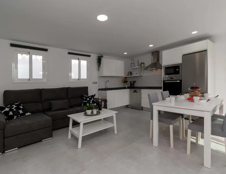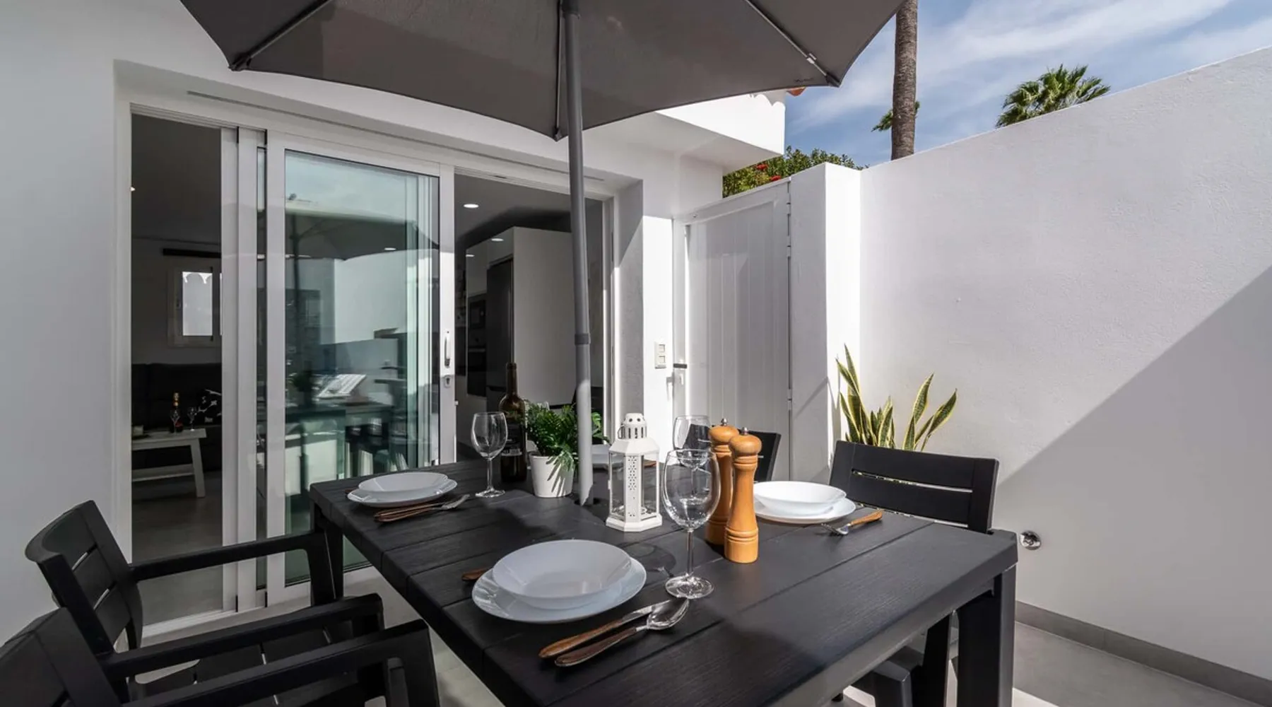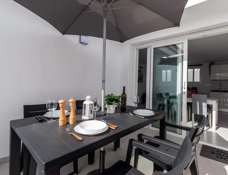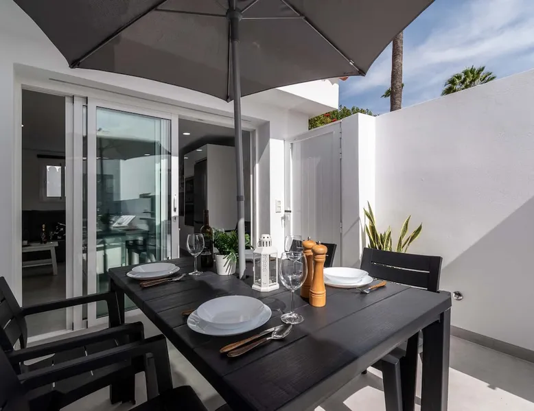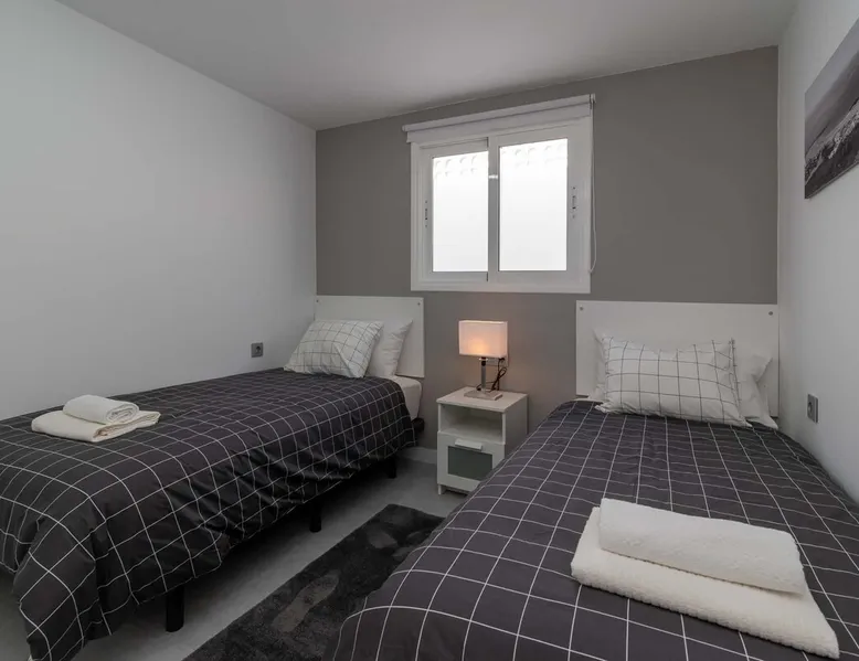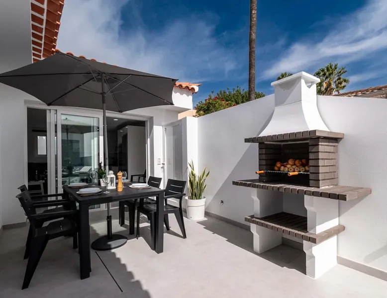This bungalow is ideal for 4 people, with a large 30 m2 terrace/patio to enjoy the outdoors. It is located in a quiet residential complex and a 10-minute drive to the nearest beach. On the terrace/patio, you can enjoy the barbecue and an outdoor shower to cool off while sunbathing on the loungers. The space This charming bungalow has a living room with a sofa for 4 people, a fully stocked kitchen, 2 bedrooms, and 2 bathrooms. One of the bathrooms is located inside the room. The second bedroom has 2 single beds with the option of joining them so that they can be used by a couple. Both bedrooms have a SMART TV, and a small work table in the master bedroom. The bungalow has a private terrace with a barbecue, dining table, 2 hammocks, and a shower to cool off. Guest access The accommodation is for the guest's full use and he/she has the right to access the heated swimming pool, common to the community, which is a 5-minute walk away. Other things to note Events and loud music are not allowed in the accommodation, as it is located in a residential area, which is characterized by its silence and tranquility with the neighbors. Registration Details Spain - National registration number ESFCTU0000380160001446540000000000000VV-38-4-00947534